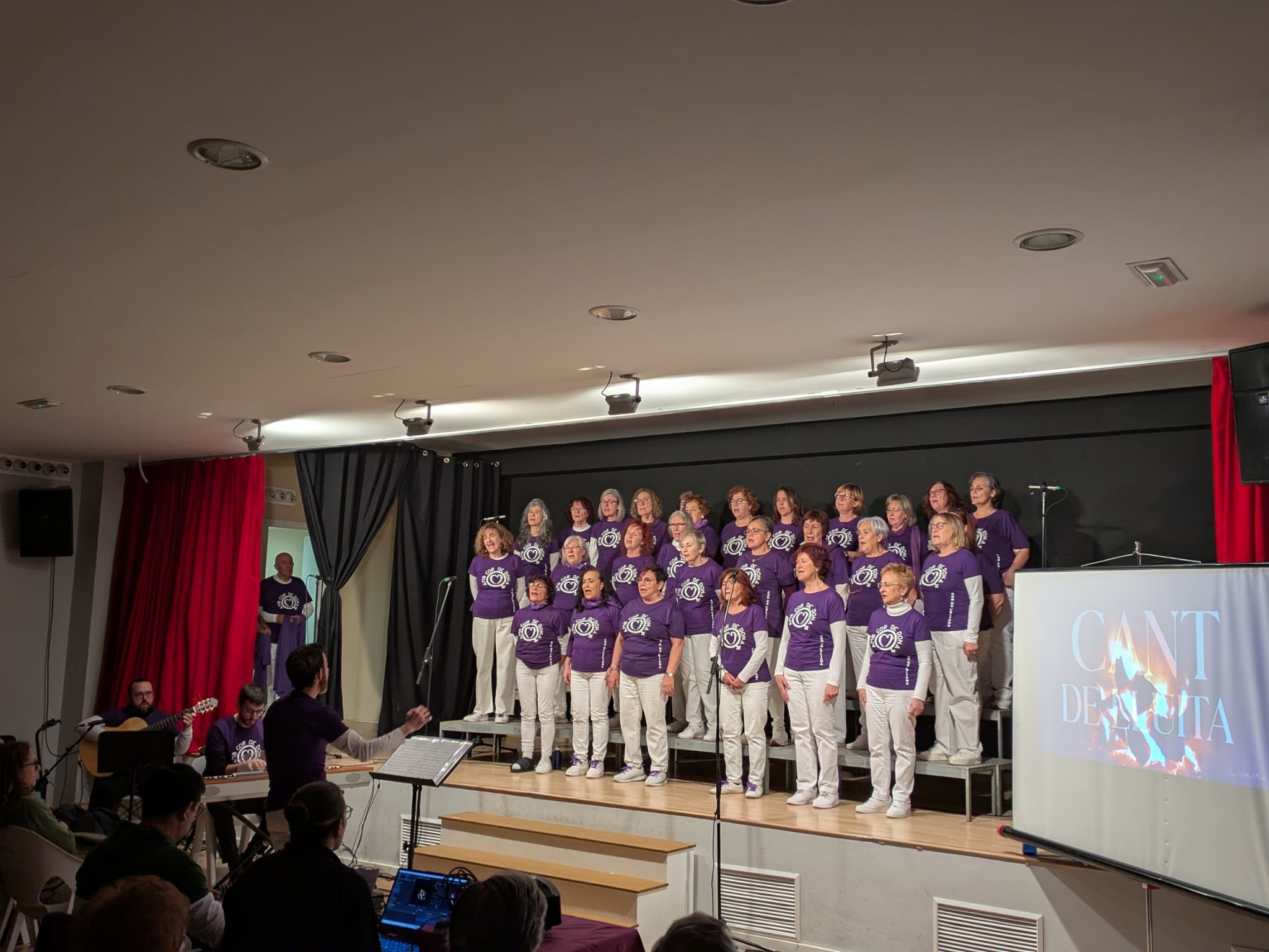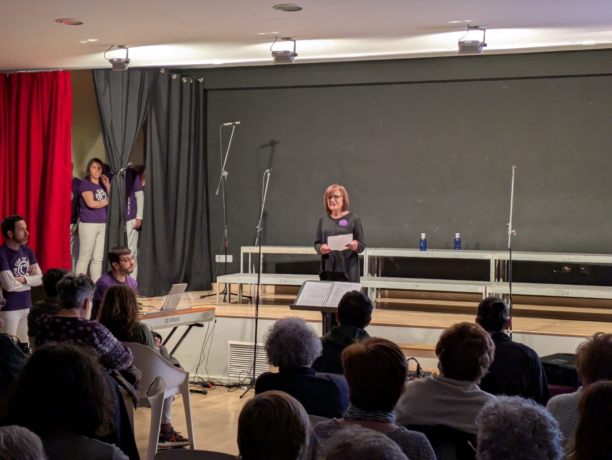 El espectáculo también presentó las intervenciones de algunos miembros del coro, que compartieron textos reivindicativos con el público, así como vídeos de artistas que han cedido sus canciones y de diferentes cantantes, músicas, actrices y periodistas que reivindicaron la importancia de las mujeres en la cultura con el lema ‘Volem més dones als escenaris’.