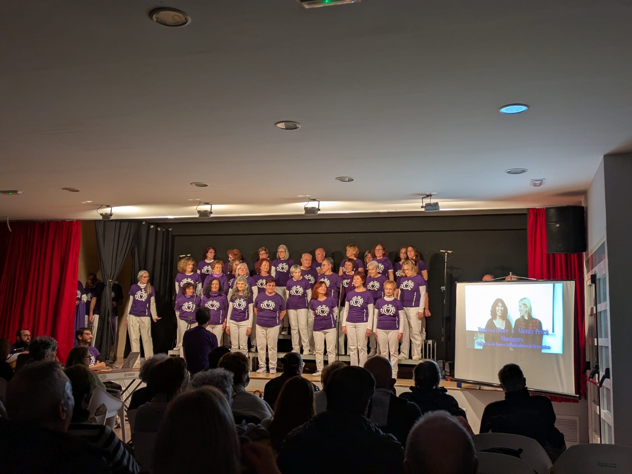 A lo largo de la actuación, los integrantes del coro llevaron a cabo un despliegue de talento y fuerza sobre el escenario que entusiasmó a los asistentes y que sirvió para trasladar el apoyo unánime al movimiento feminista frente al patriarcado. Además, el concierto contó con la colaboración especial de la cantante de Riba-roja de Túria Aitana Ferrer, quien interpretó con ellos dos canciones: ‘Alma de blues’, de Presuntos Implicados, y su tema ‘Teua’.