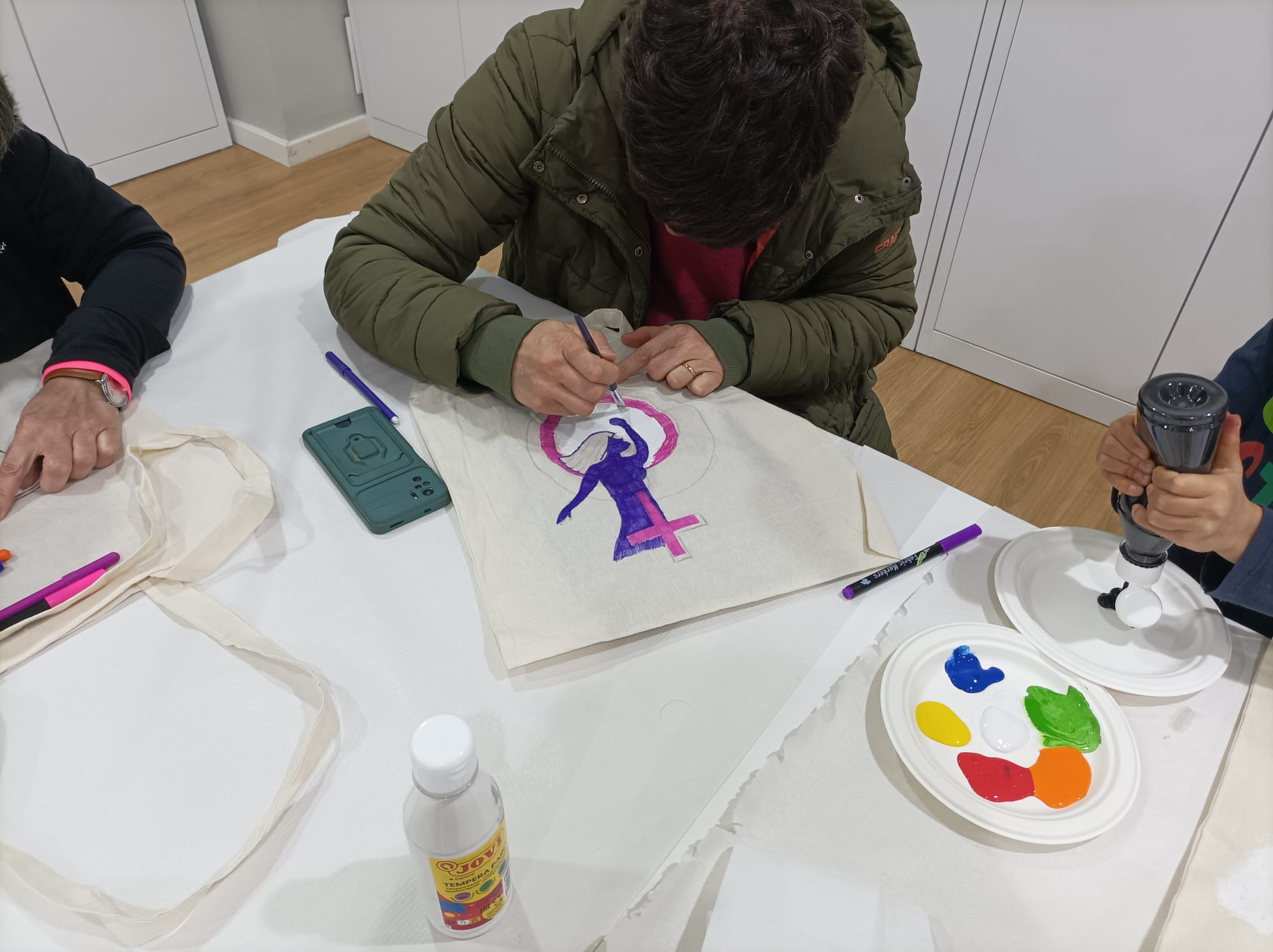 El sábado por la mañana, tuvo lugar en la Casa de la Cultura la segunda y última sesión del taller de personalización de bolsas de tela por y para la igualdad. Esta iniciativa, en marcada en el programa de actos por el 8M, Día Internacional de la Mujer, contó con la participación en total de unas 50 personas de todas las edades, que expresaron con sus diseños su compromiso en materia de derechos y libertades de las mujeres.