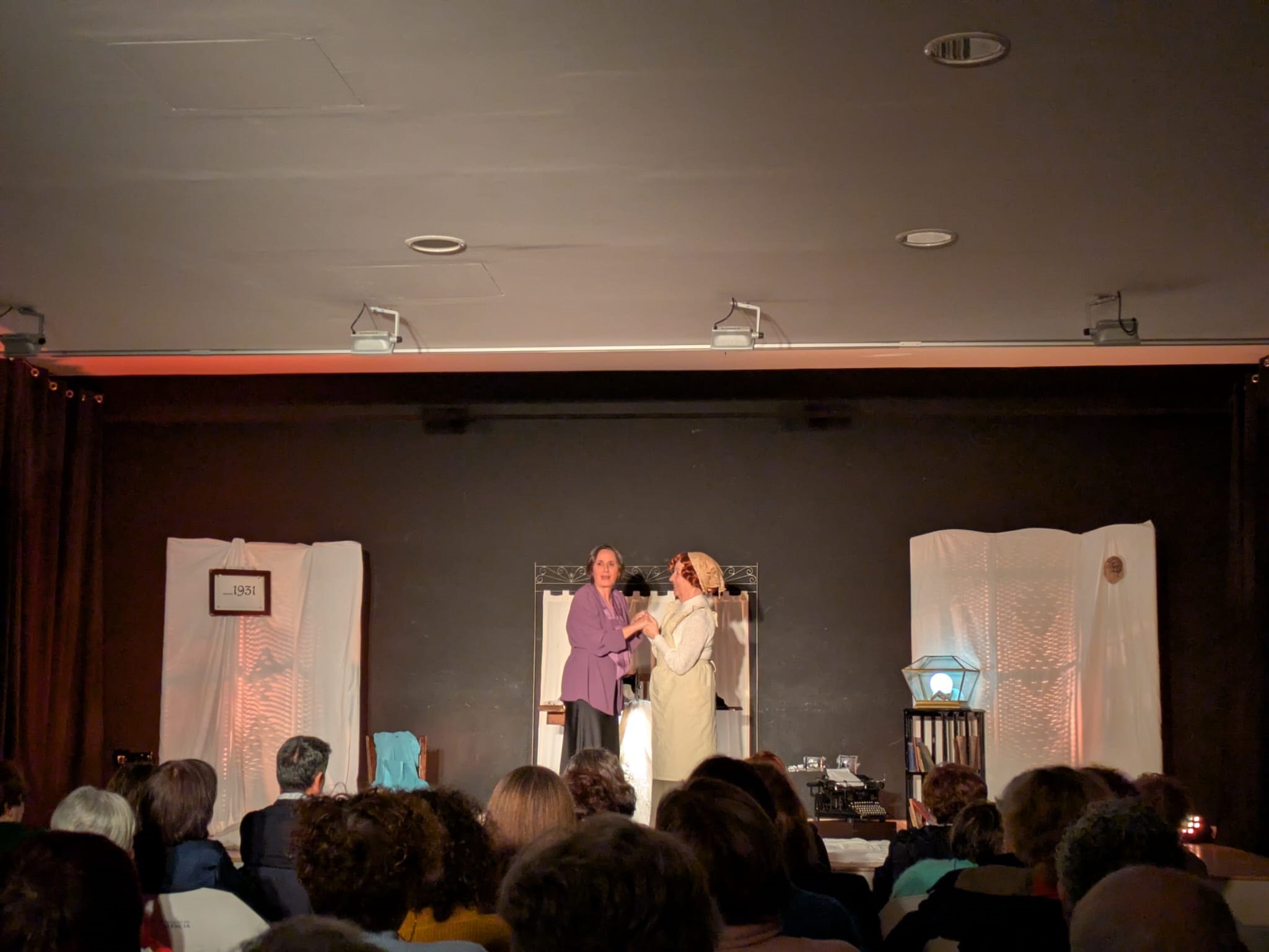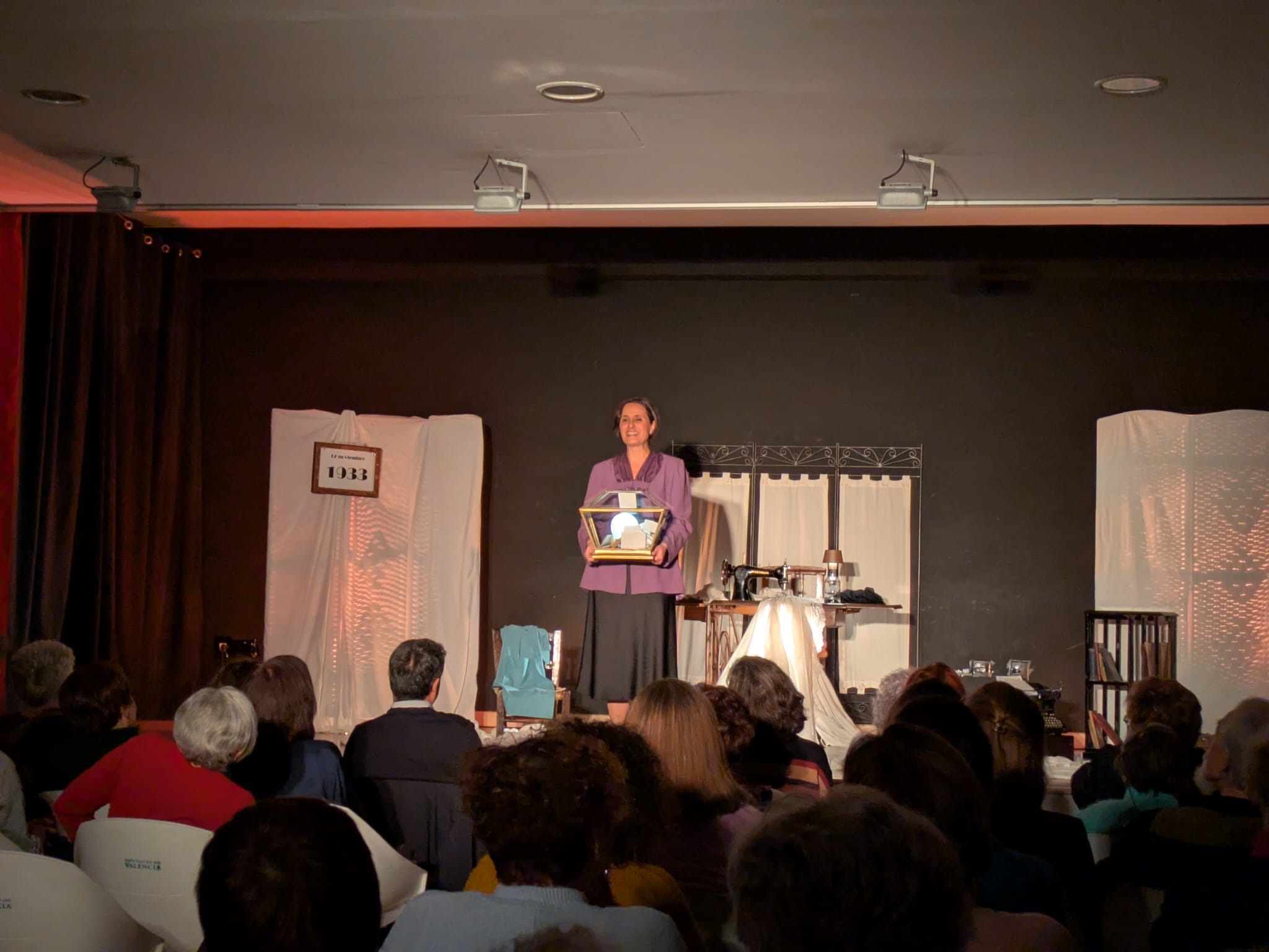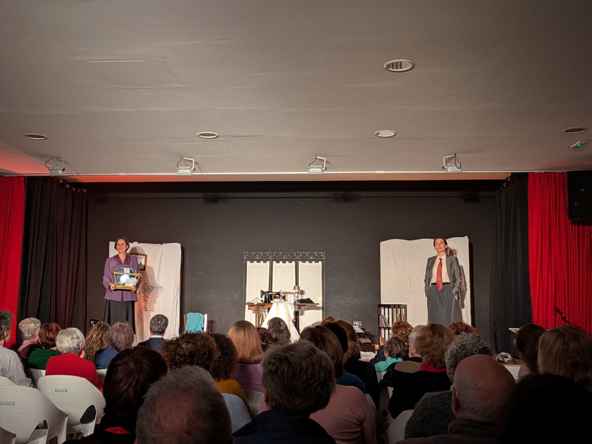 La función, que llegó como preestreno a Olocau, ofreció un montaje innovador en el que el espacio escénico era la memoria de Campoamor, que ella revisita para reencontrarse con sus raíces. Un viaje en el tiempo que mostró la situación de las mujeres en cada época, así como el camino que Campoamor recorrió para forjar su identidad y conseguir un cambio social en un contexto en el que los derechos y los deberes se regían por un sistema patriarcal. Así, a través de las extraordinarias interpretaciones de Pilar Rochina (Clara Campoamor), Antonia Bueno (madre) y Arantzazu Pastor (Victoria Kent) los y las asistentes pudieron conocer mejor la vida de una figura imprescindible en un día tan señalado como el de ayer.