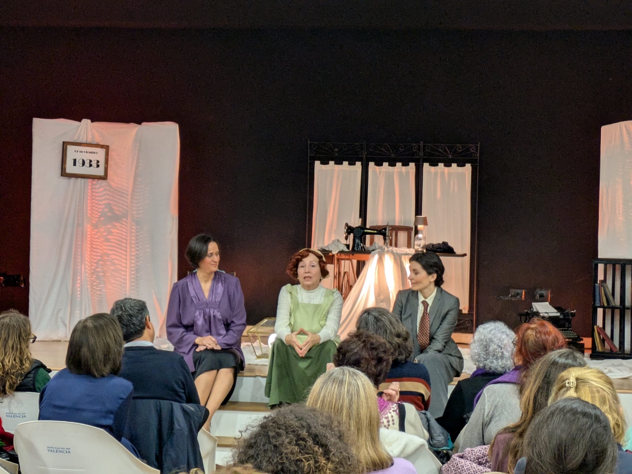 A continuación, tras la introducción realizada por la concejala de Igualdad y Mujer, dio inicio una representación que puso en valor la trayectoria de todo un referente del feminismo en España como Clara Campoamor. La obra ’Yo, Clarita: las raíces de Clara Campoamor’, dirigida por la escritora, actriz, directora, dramaturga y pedagoga Antonia Bueno (y basada en el relato homónimo escrito por Bueno que obtuvo en 2012 el Primer Premio del XI Certamen de Narrativa Breve del Ayuntamiento de Valencia), entusiasmó al público con una propuesta que plasmó las vivencias de la abogada, escritora y política madrileña desde su infancia en 1898 hasta la madurez, llegando al momento clave de la consecución del voto para las mujeres en 1931.