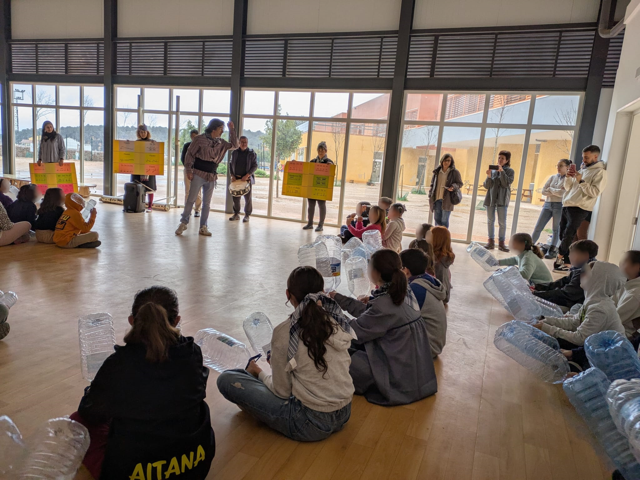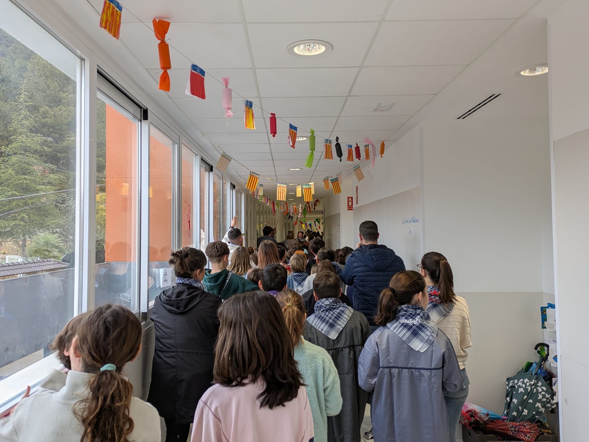 La comunidad educativa ha realizado un pasacalle por los pasillos del centro y una espectacular ‘botellà’ en el gimnasio