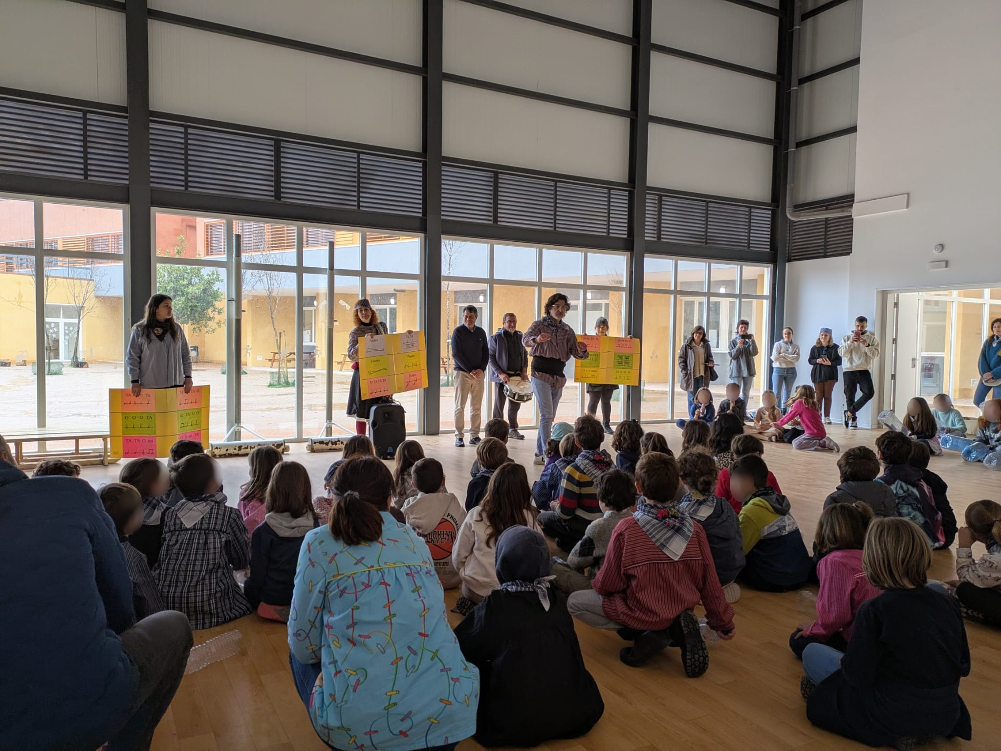 Para comenzar, la comunidad educativa ha realizado un pasacalle por los pasillos de la escuela en el que todos han bailado al son de canciones tan características de estas celebraciones como ‘Samba Brasil’ o ‘La manta al coll’. Un animado recorrido en el que no ha faltado la diversión y el buen humor y que ha concluido en el gimnasio.