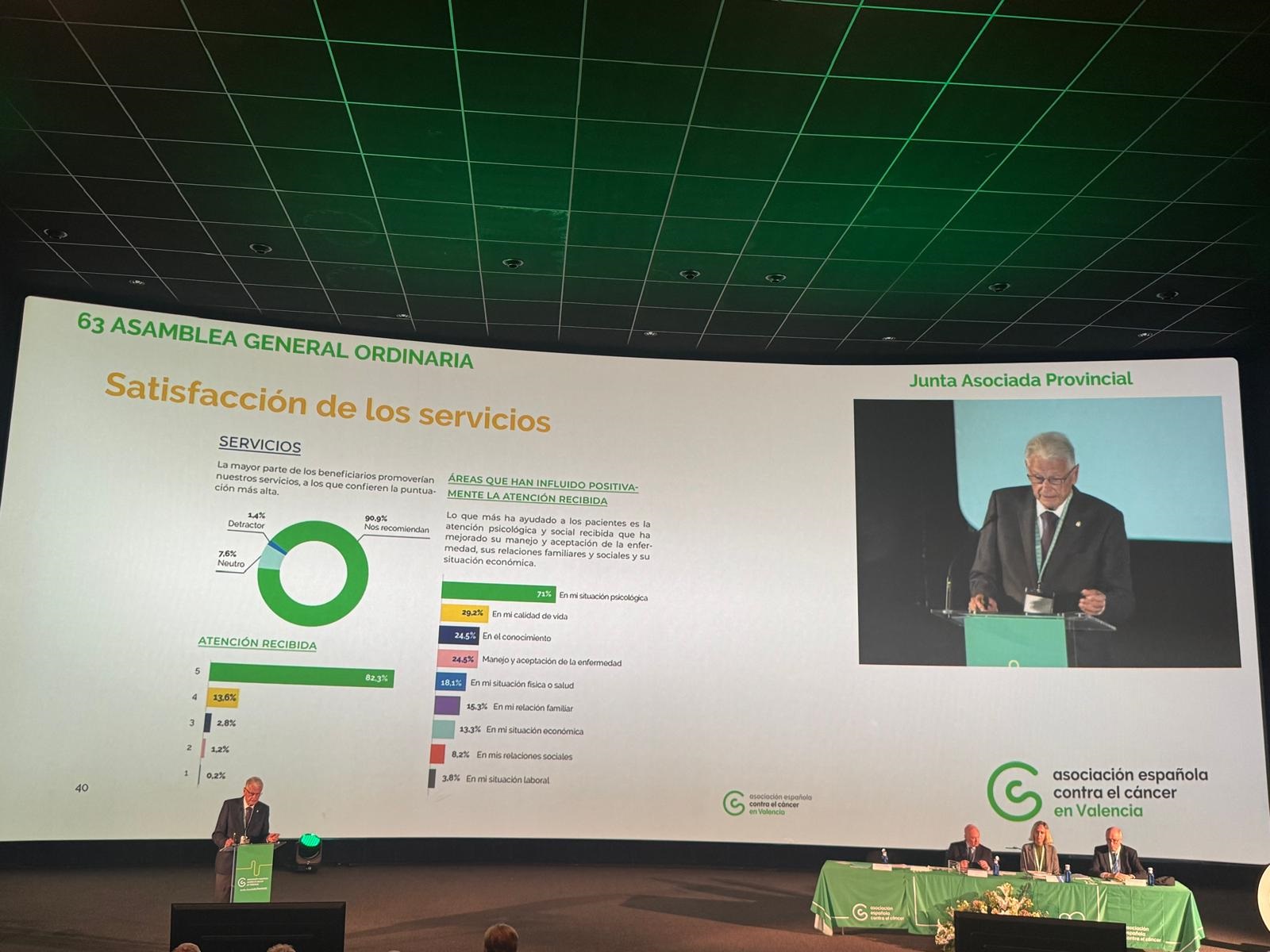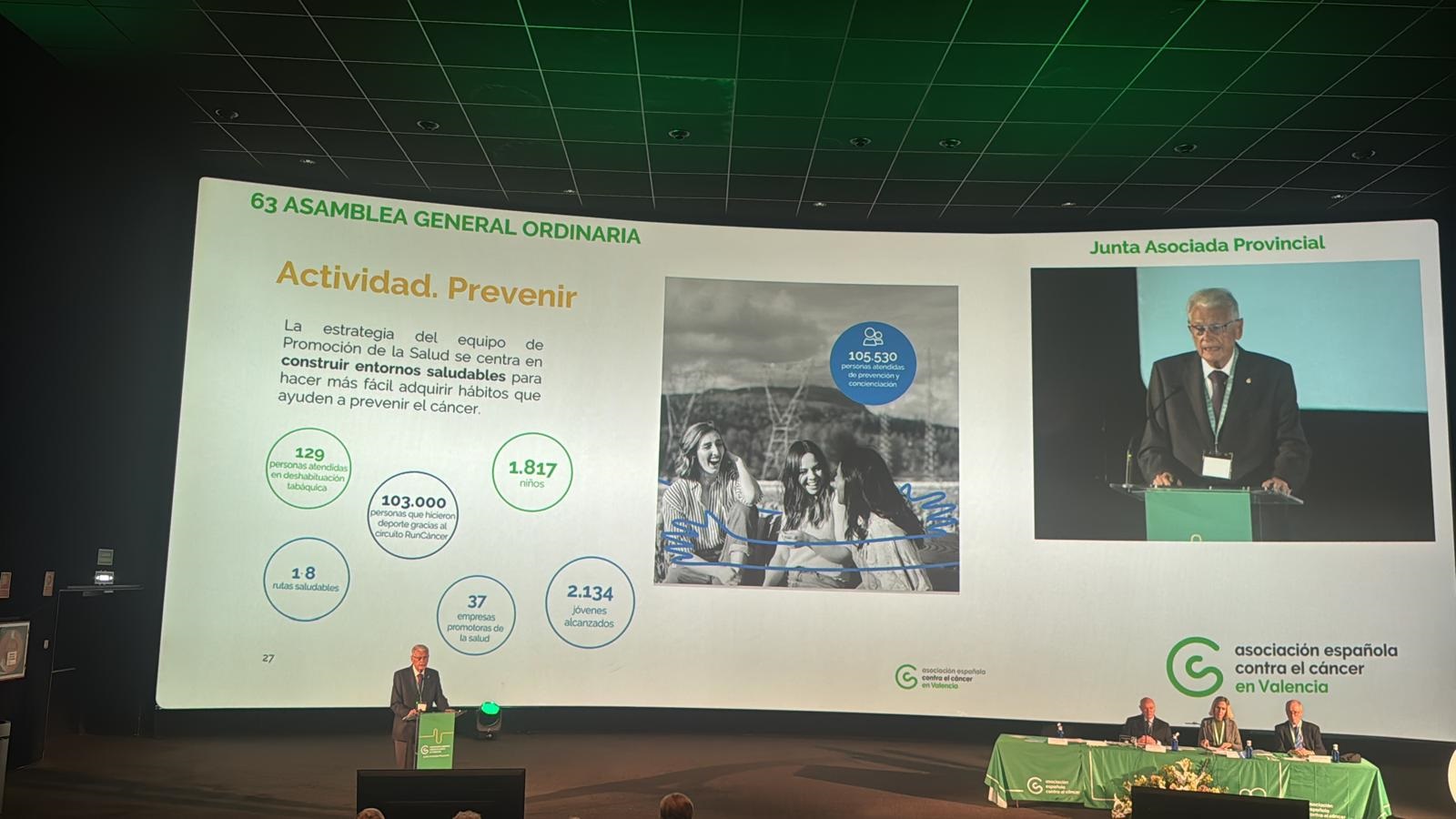 Esta mañana, la Junta Asociada Provincial de la Asociación Española Contra el Cáncer (AECC) de Valencia ha celebrado en Kinépolis su 63ª Asamblea General Ordinaria. Un acto en el que se ha hecho balance del 2024, se ha analizado la previsión para el 2025, se ha informado de las acciones llevadas a cabo y se han entregado las distinciones que reconocen la labor de las juntas locales de la provincia durante el año pasado.