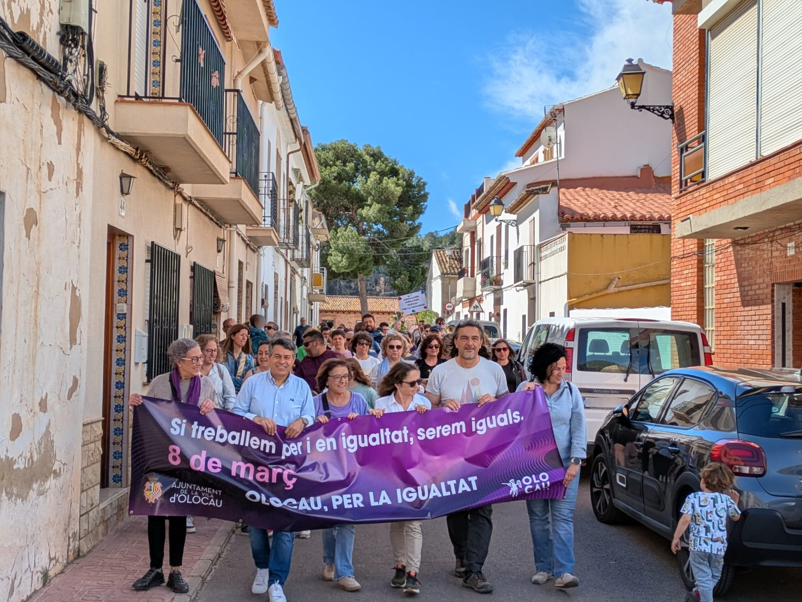Para comenzar, se ha realizado un pasacalle que ha arrancado desde la Casa de la Senyoria y que ha contado con la participación de la Banda de la Agrupación Musical ‘La Melodía’, que ha ambientado el desfile, así como de representantes del tejido asociativo (Asociación de Vecinos de Pla de Marco, Per un Olocau Viu, Asociación de Jubilados de Olocau, Asociación de Moros y Cristianos "El Cid" de Olocau y Asociación Cultural y Teatral de Olocau – ACTO), y de vecinos y vecinas que también han querido sumarse. En el cruce de la calle San Diego y la calle Mayor se ha unido la Batukada Alí-Maimó, que ha llenado de ritmo el tramo final hasta la plaza Mayor.
