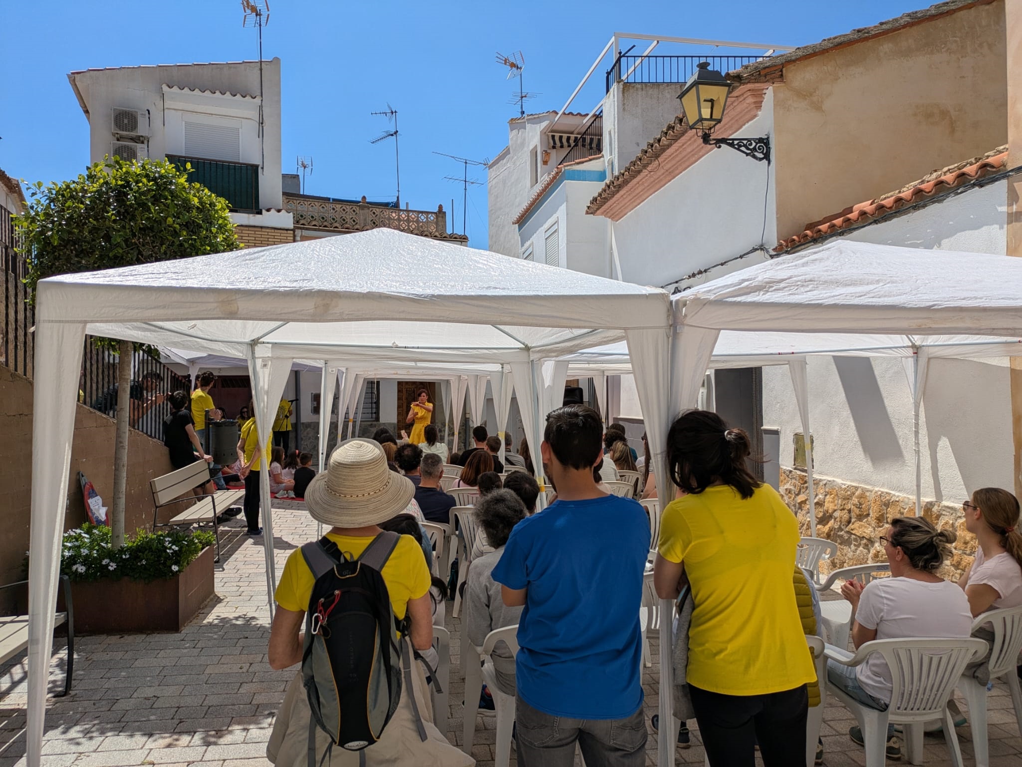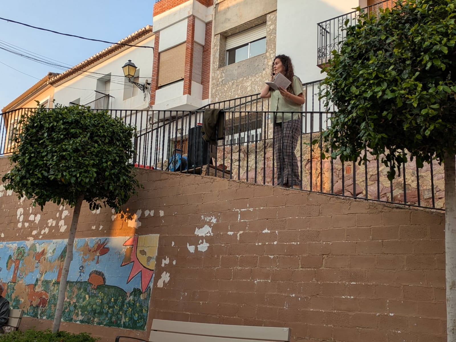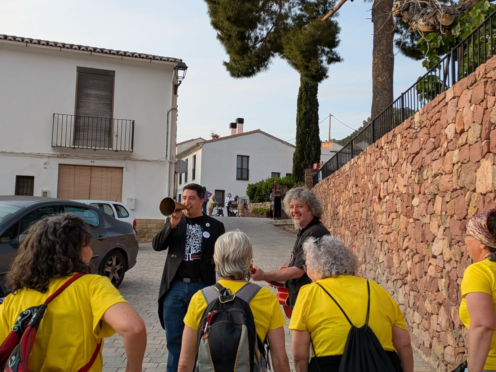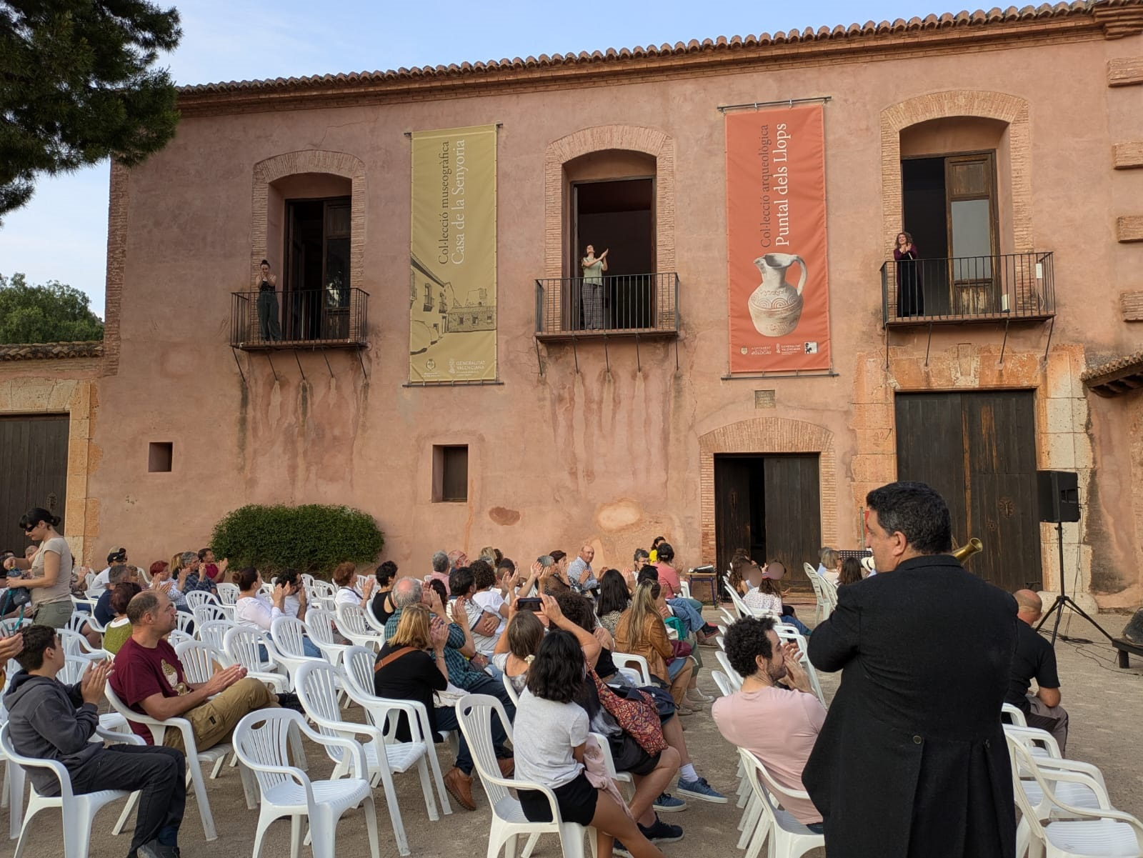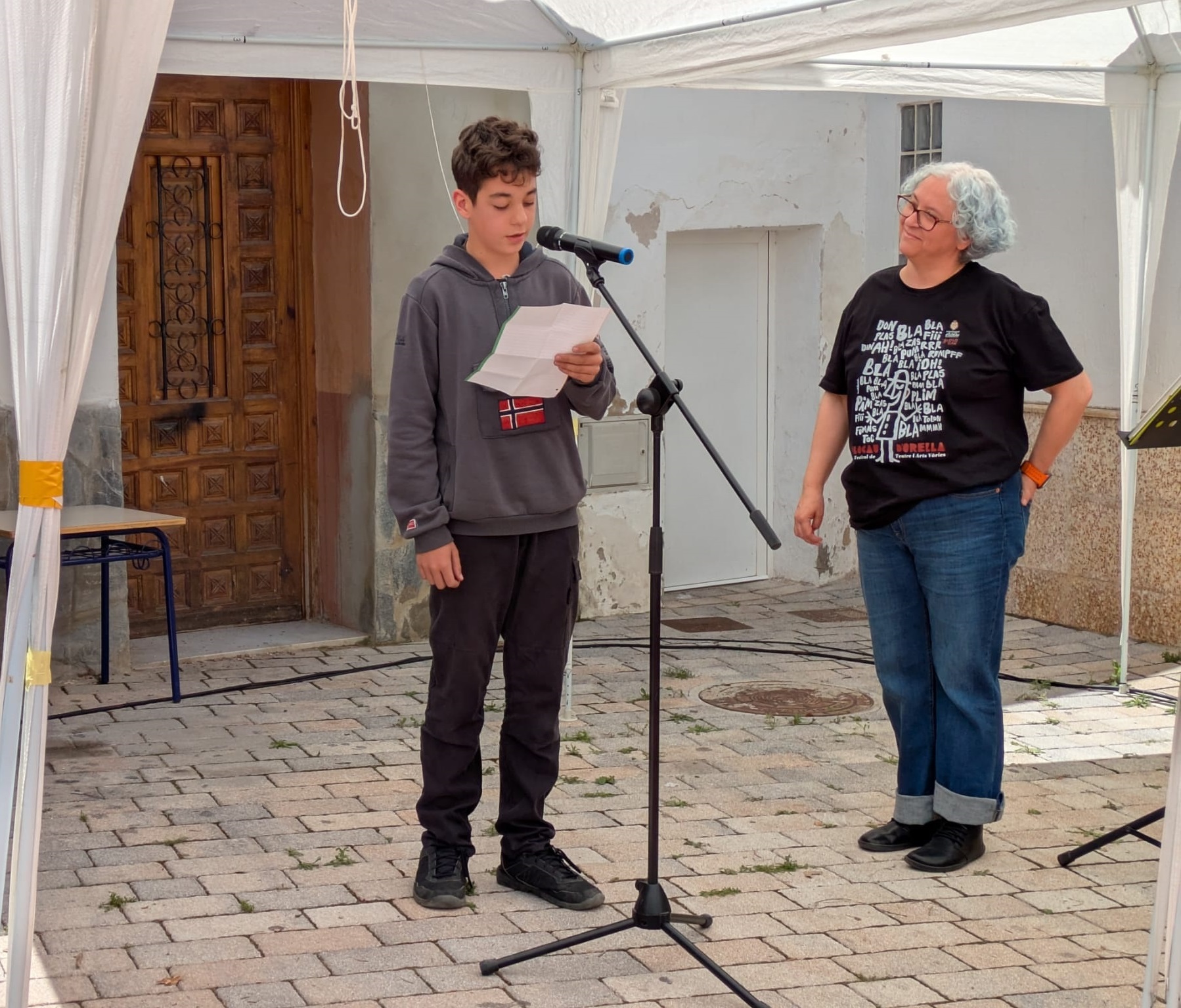 Por la tarde, arrancó desde el cruce de las calles Les Eres y Cueva Santa una nueva edición de ‘Poesia als balcons’. Este espectáculo itinerante recorrió diferentes calles de la localidad con una procesión cívica que unió a sus participantes para disfrutar de la mejor poesía recitada a viva voz. La crítica de Isabel Martín, la rebeldía de Iria Fariñas y la sensibilidad de Myriam Soteras entusiasmaron a un público entregado. Asimismo, Jesús Ge y Antonio José Iglesias (Feriafónica) se encargaron de la animación durante el recorrido con el estilo alegre y desenfadado que les caracteriza, y aprovecharon, al final del camino, para agradecer la labor de los voluntarios y voluntarias cantando con ellos la canción popular ‘Los cuatro muleros’ (interpretada por el Taller de Teatro en la inauguración del Lavadero Municipal). Como cada año, las tres poetas finalizaron sus intervenciones en los balcones de la Casa de la Senyoria para enlazar con la última cita del programa.