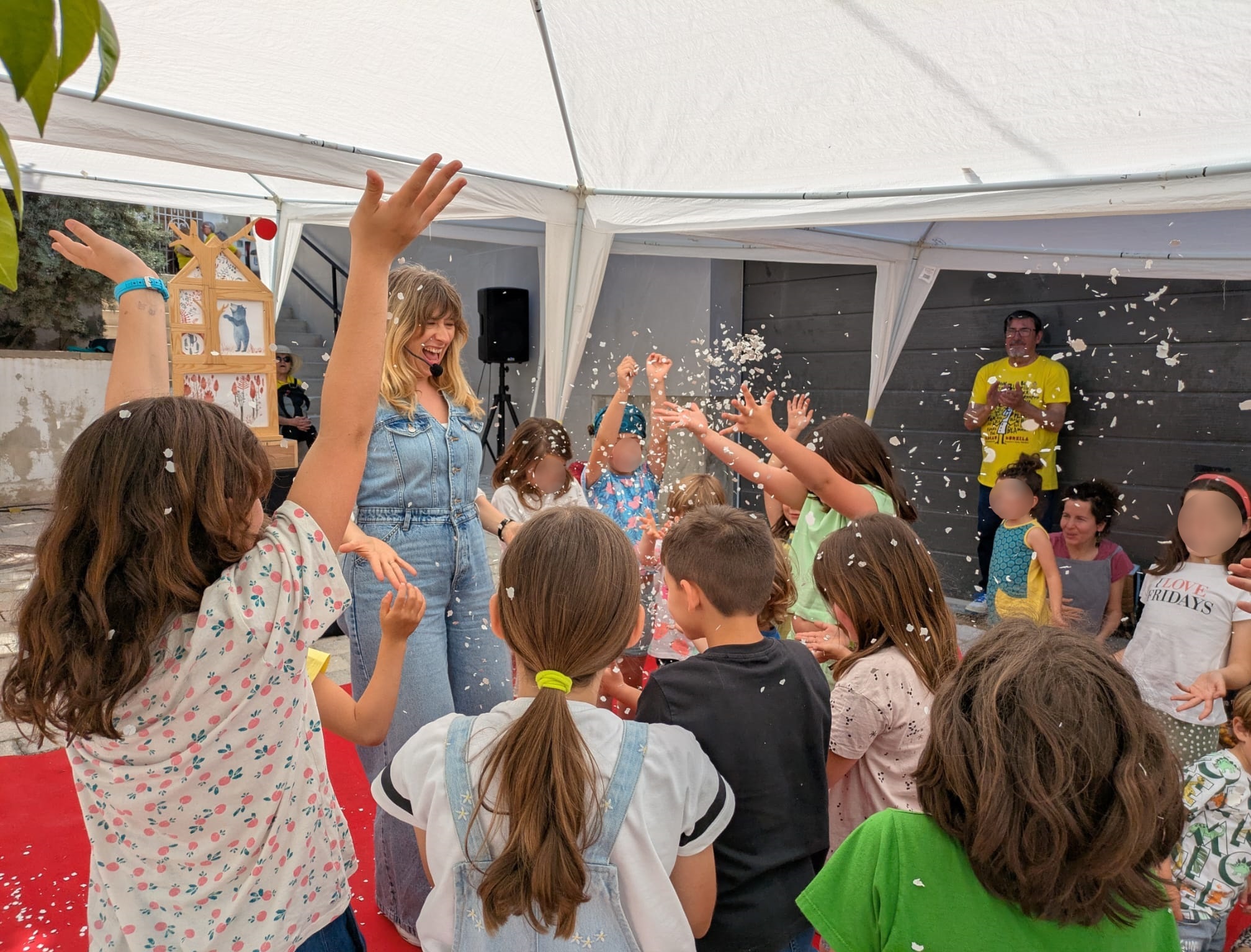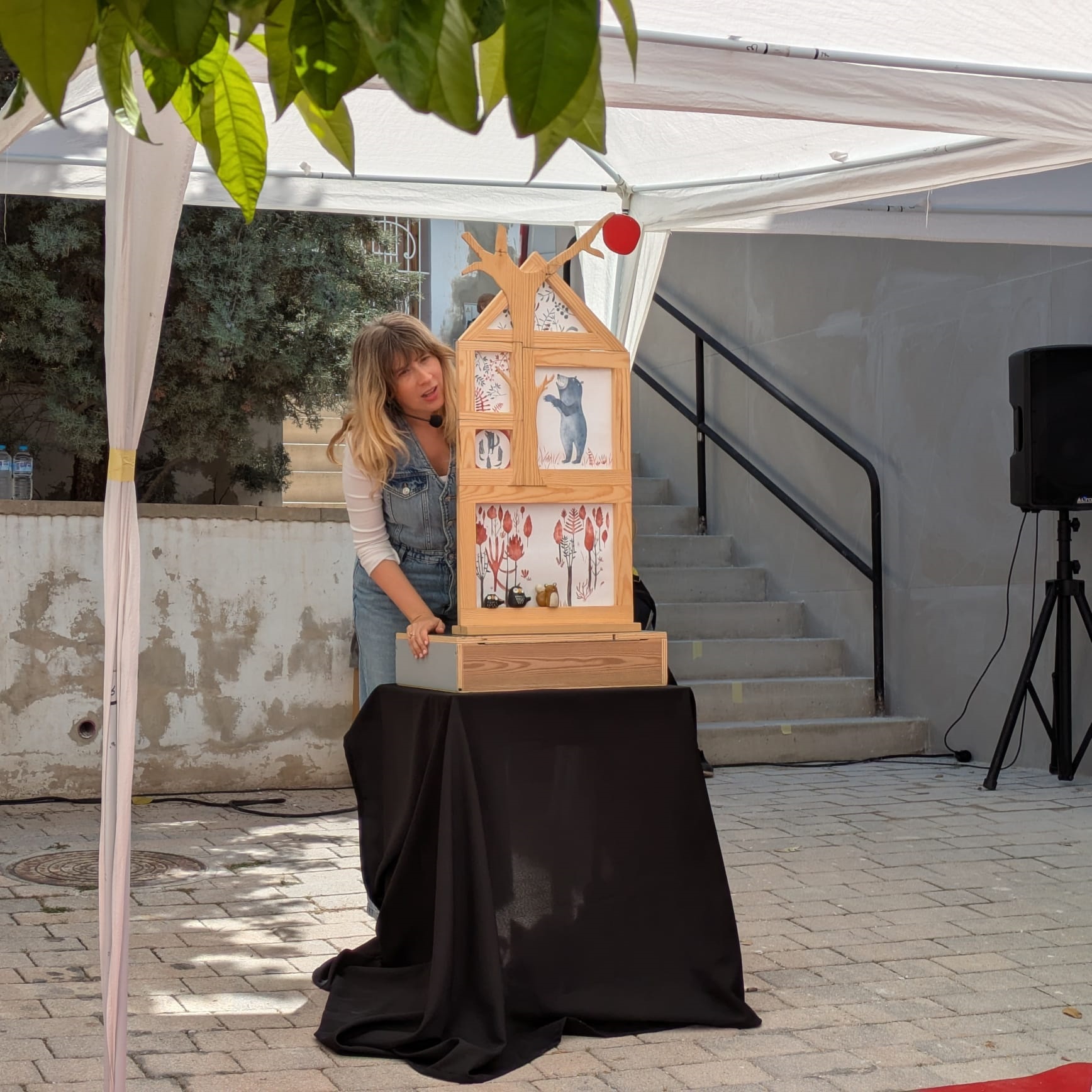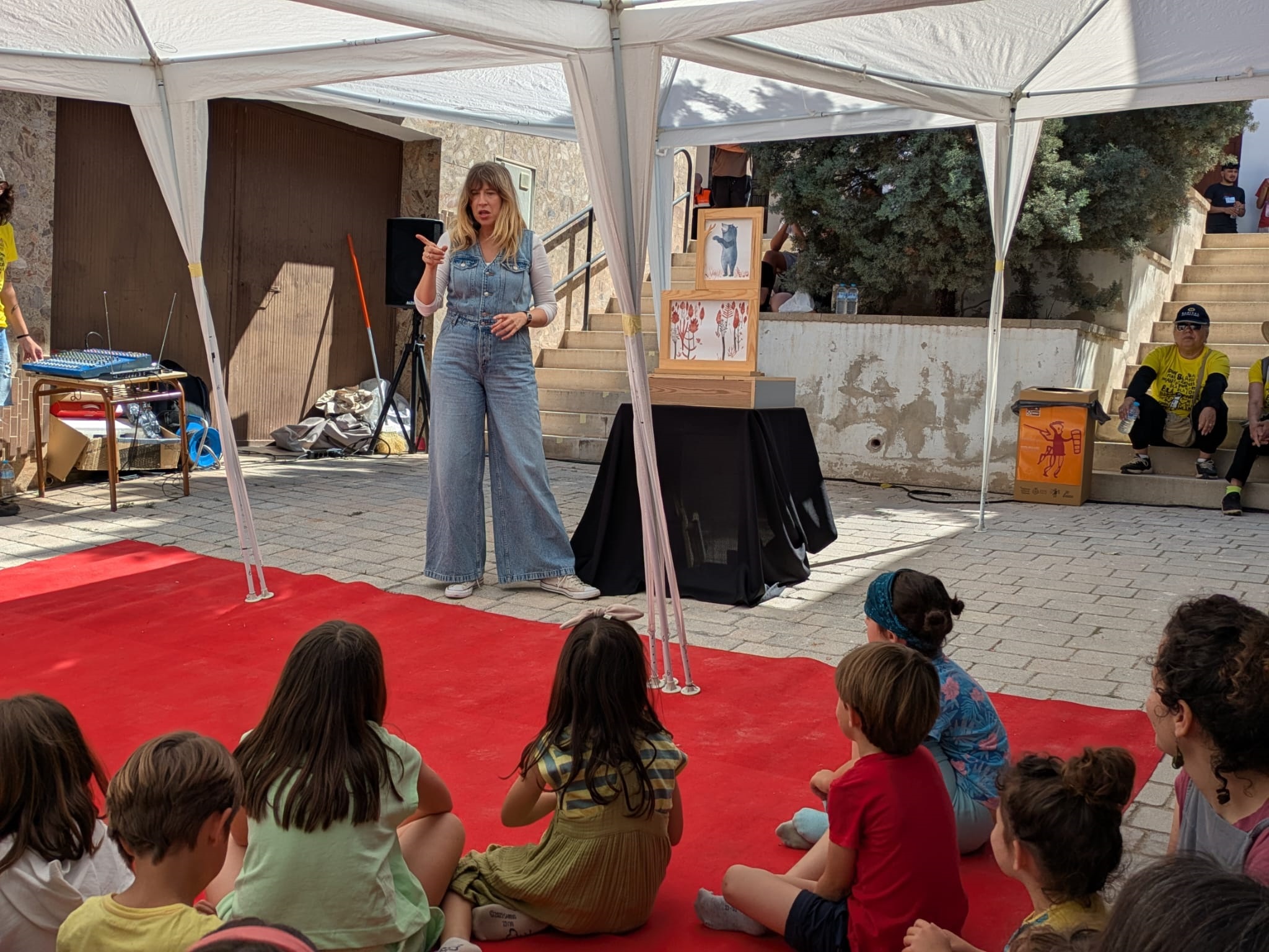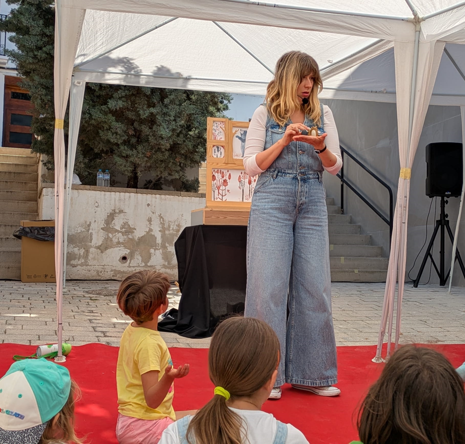 A continuación, Bardají presentó ‘La casa del vent’, una función de cuentacuentos que llenó de sonrisas la escalinata de la calle San Francisco (Espacio 3) con historias y juegos con el público que surgían a medida que se construía una casa muy especial.