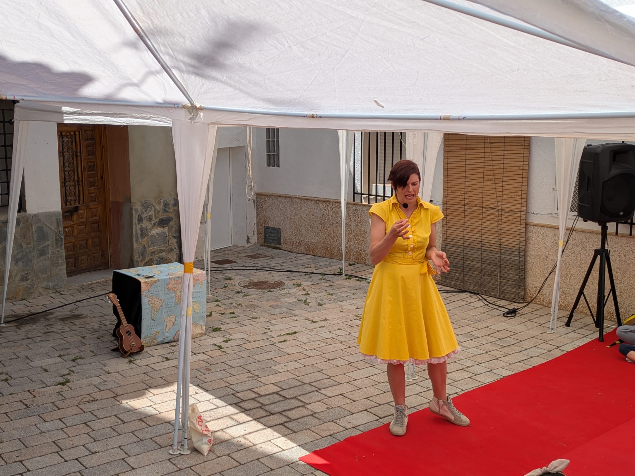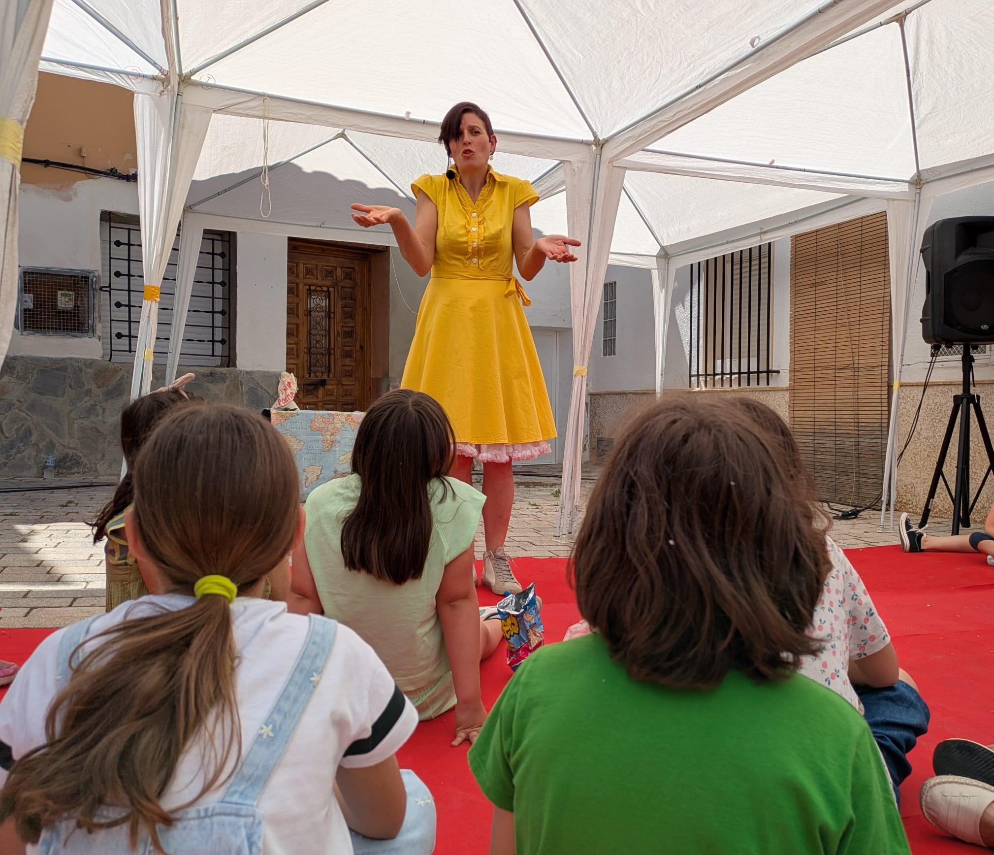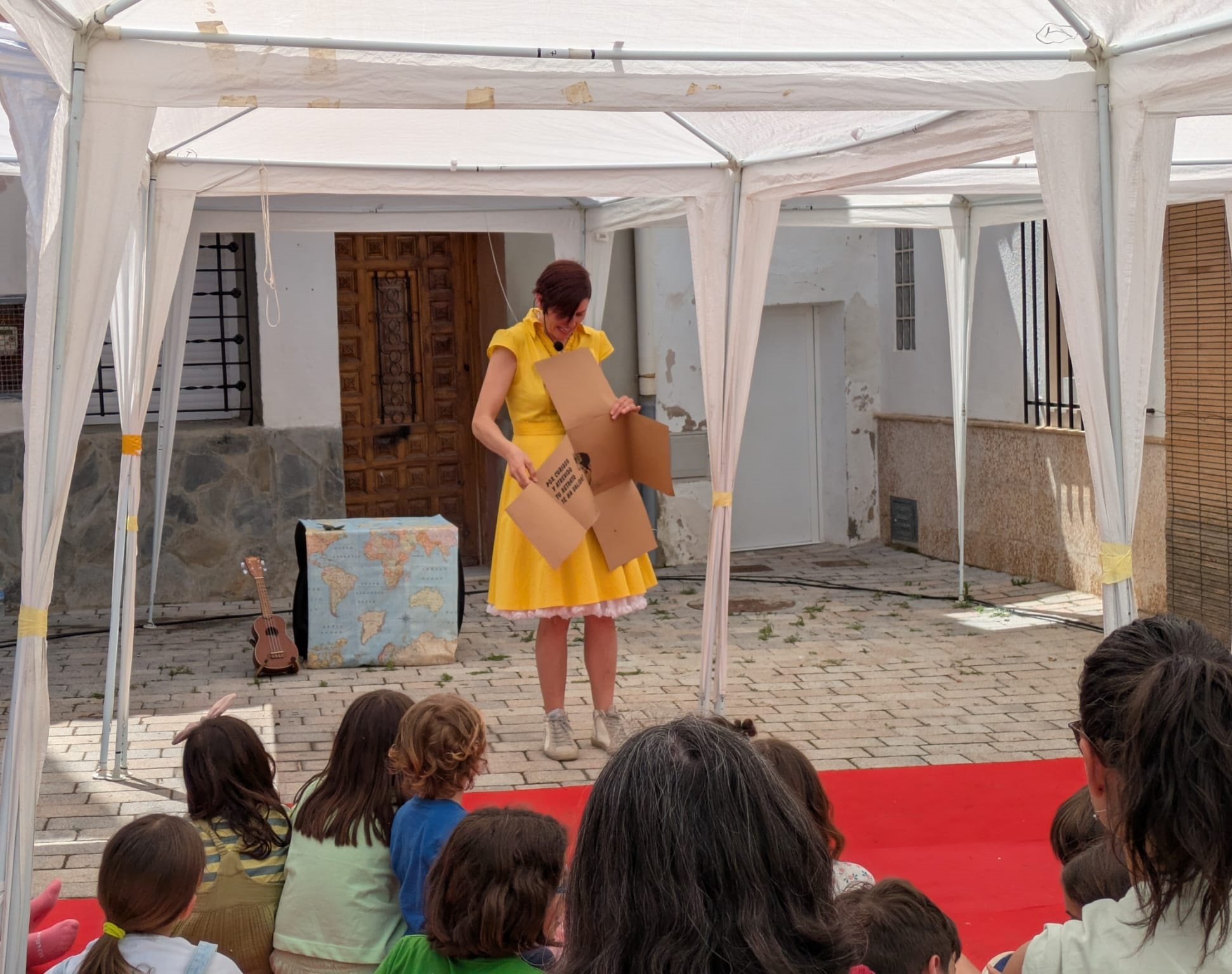 A continuación, Bardají presentó ‘La casa del vent’, una función de cuentacuentos que llenó de sonrisas la escalinata de la calle San Francisco (Espacio 3) con historias y juegos con el público que surgían a medida que se construía una casa muy especial.