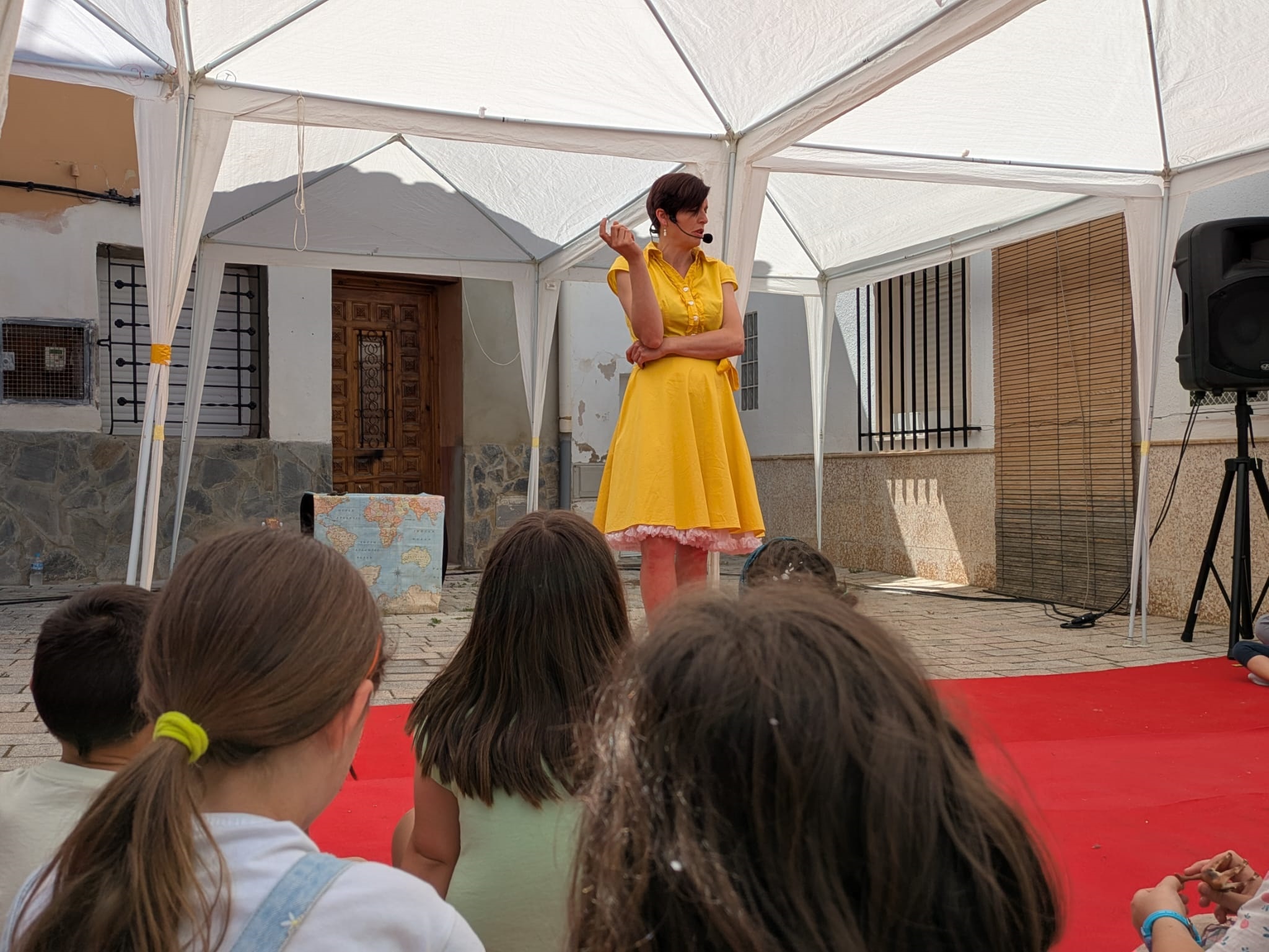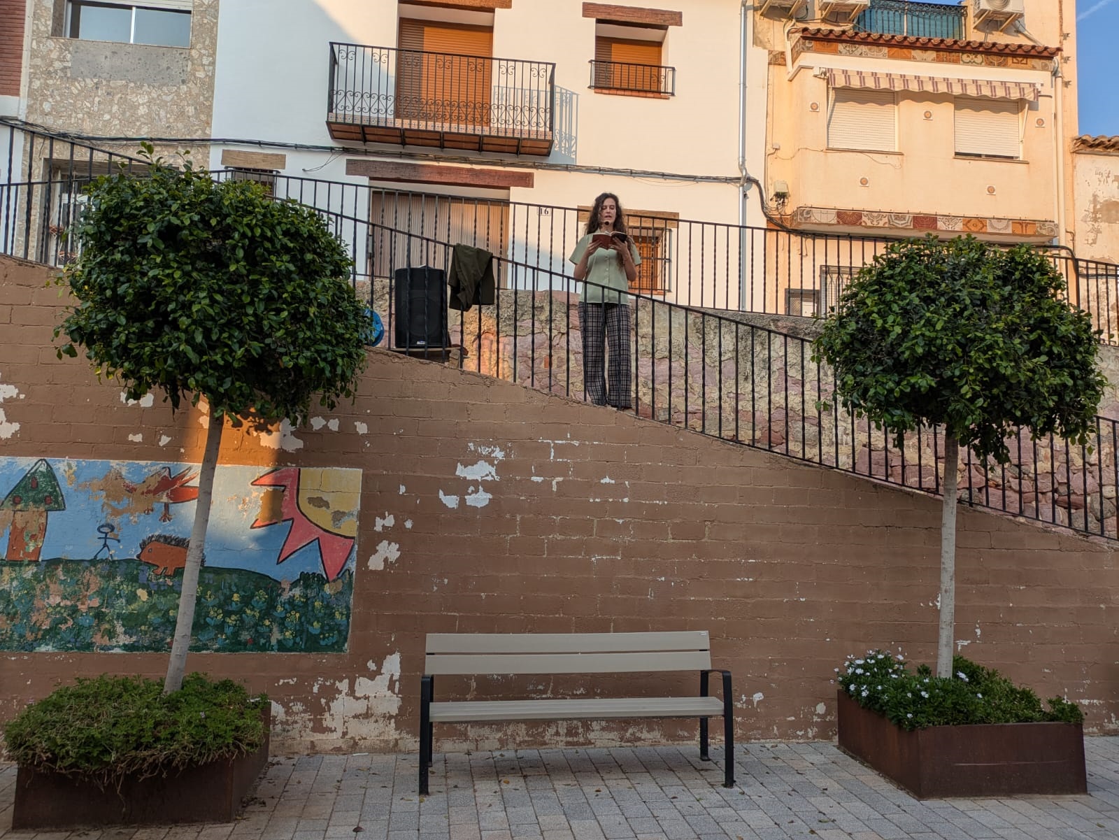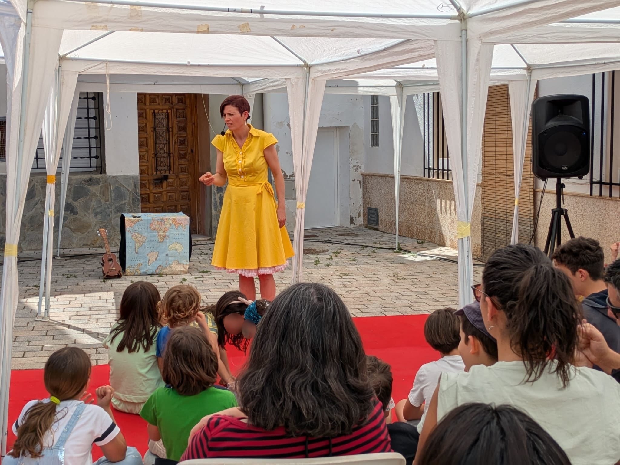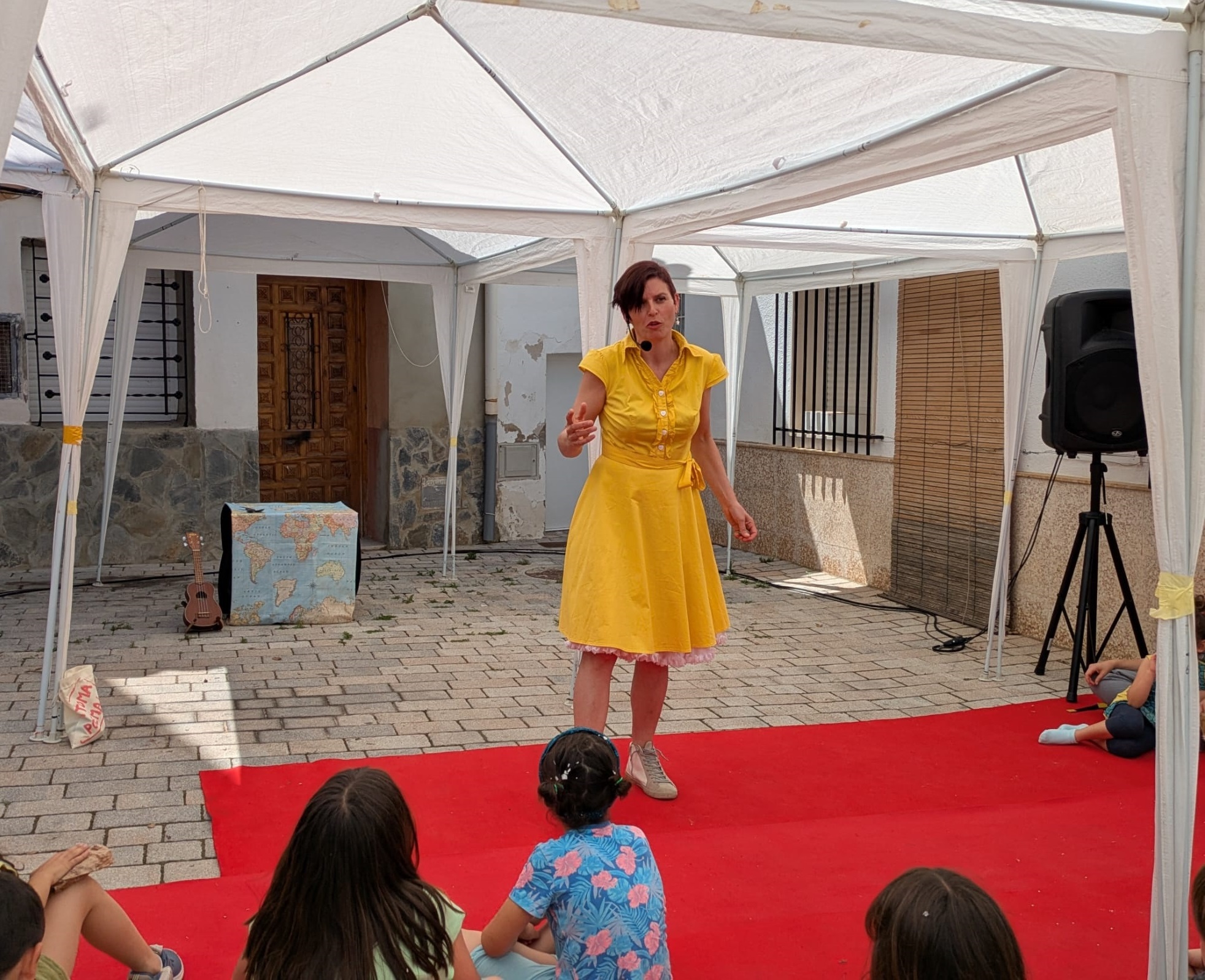 A continuación, Bardají presentó ‘La casa del vent’, una función de cuentacuentos que llenó de sonrisas la escalinata de la calle San Francisco (Espacio 3) con historias y juegos con el público que surgían a medida que se construía una casa muy especial.