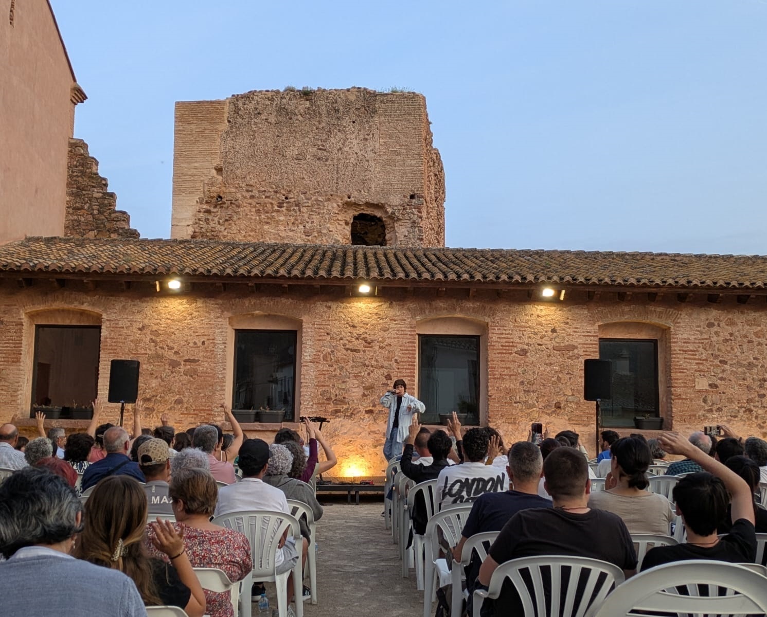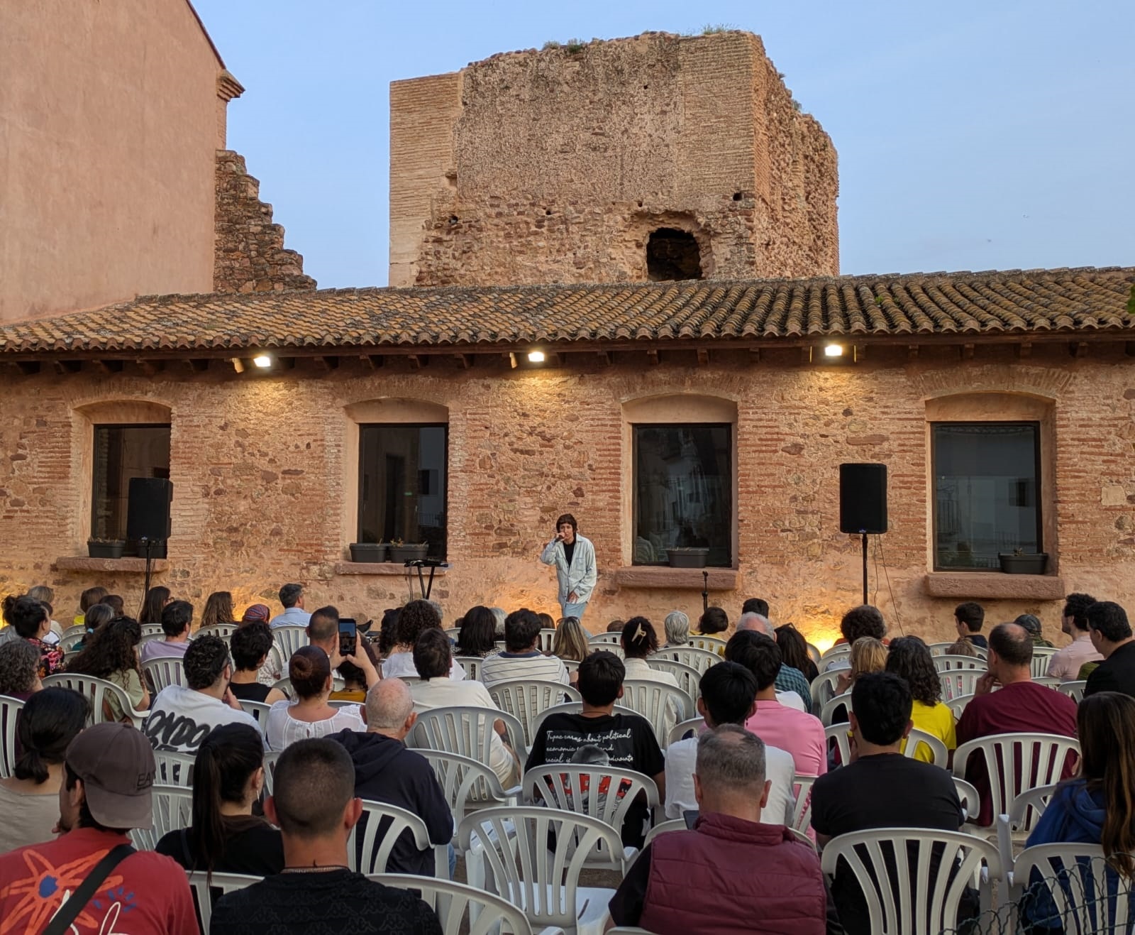 Y, como punto final, en el patio de la Casa de la Senyoria (Espacio 5), Eskarnia deleitó a los asistentes con su propuesta ‘Sola en la sala’. Un espectáculo rompedor, innovador y lleno de energía con el que la rapera y actriz malagueña creó un ambiente único mediante sus rimas y unas bases instrumentales creadas con sonidos de lo más originales. El rap sirvió como correa de transmisión para tratar temas como el amor, la igualdad, la situación social o la oposición frontal a la guerra, y para homenajear a artistas como Marifé de Triana (versionando su canción ‘La emperaora’) o Gloria Fuertes (con referencias a la poesía para adultos de la autora madrileña a través de poemas como ‘Y no sé por qué’ o ‘En las noches claras’).