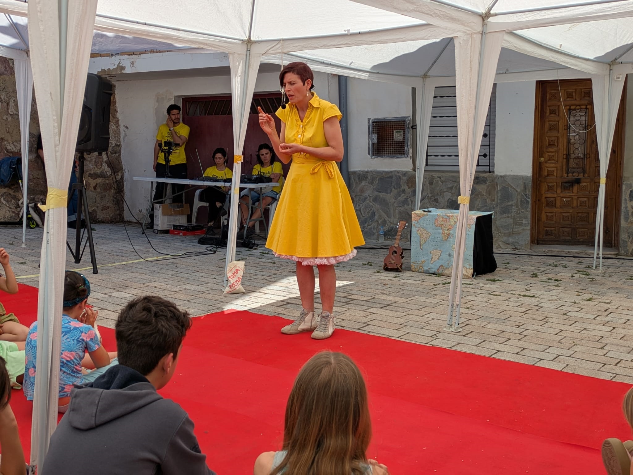 Al mediodía, llegó el momento de disfrutar de la poesía en la plaza Maestro José Lizón, de la mano de Elia Tralará y ‘¡Toma poema!’. La artista segoviana llevó la diversión y el buen humor al Espacio 4 a través del sorteo y la posterior lectura de poemas de autores como Pedro Mañas, Mar Benegas, David Hernández Sevillano o Gianni Rodari, y de la interpretación de originales canciones.