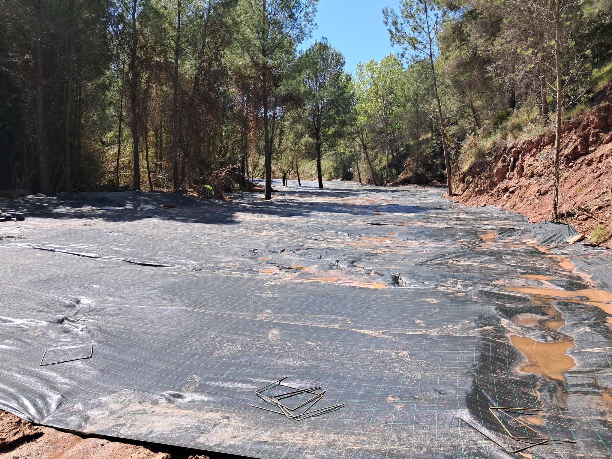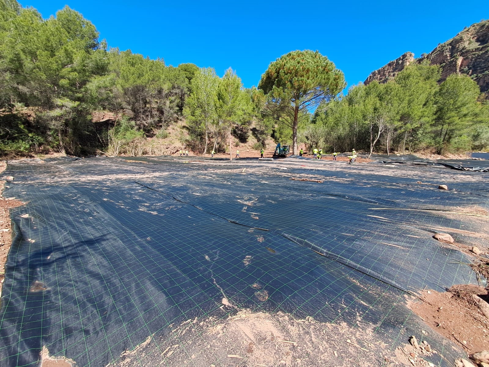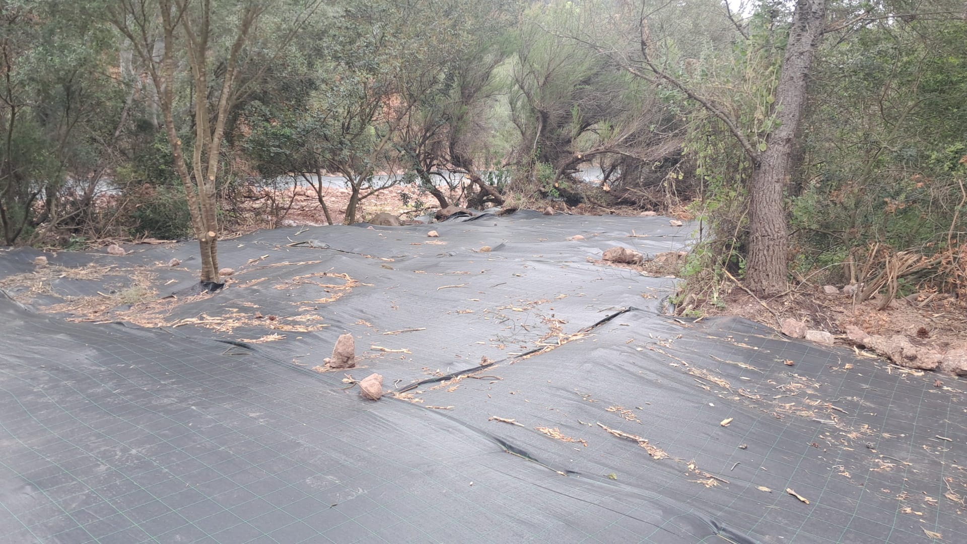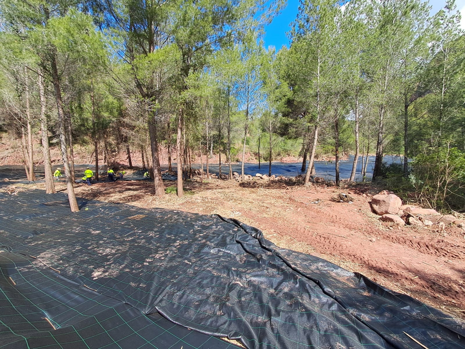 Concretamente, las labores que se han llevado a cabo se han dividido en dos fases: en primer lugar, el desbroce selectivo de la vegetación invasora en toda la superficie de ribera, y, a continuación, la colocación de malla de geotextil en la zona saneada delimitada.