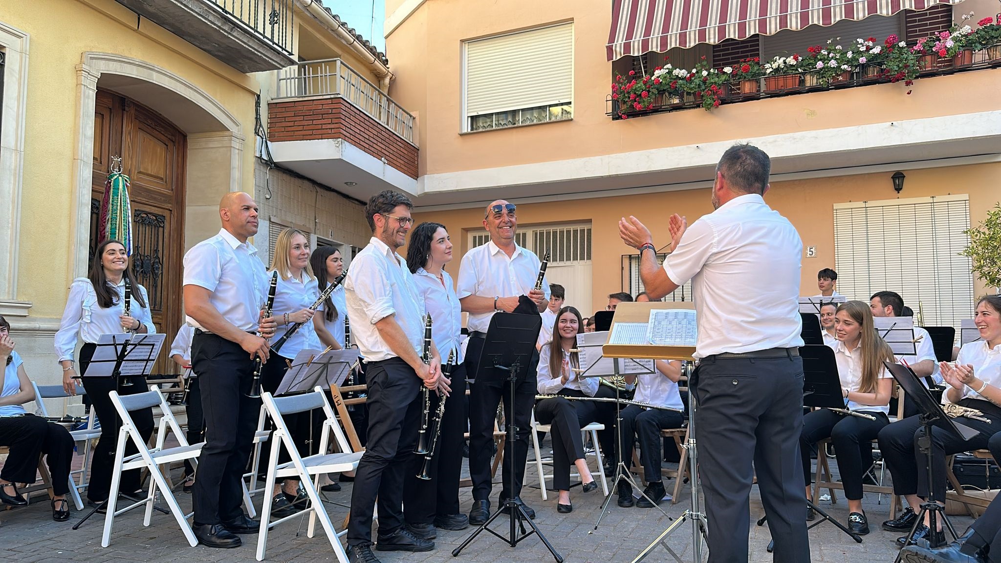 En la tarde de ayer, la plaza Mayor de Olocau acogió el segundo concierto conjunto de la Agrupació Musical 'La Melodia' y la Sociedad Artístico-Musical Santa Cecilia de Domeño tras el que tuvo lugar el pasado 25 de abril en Domeño.