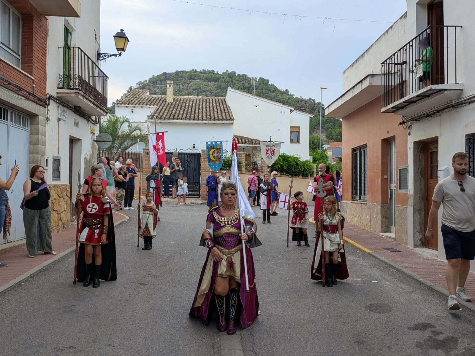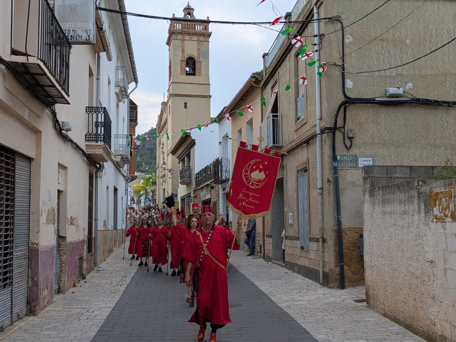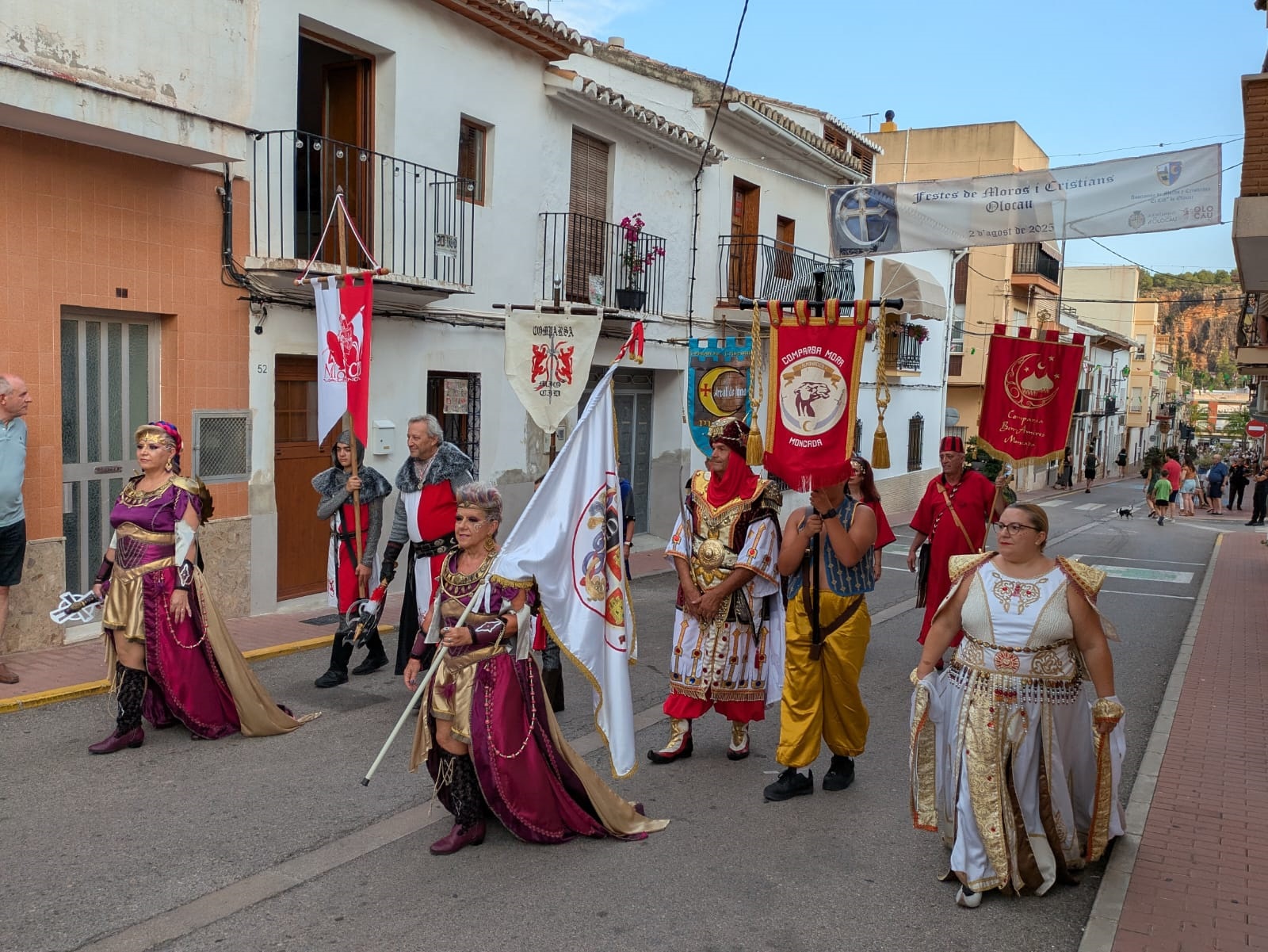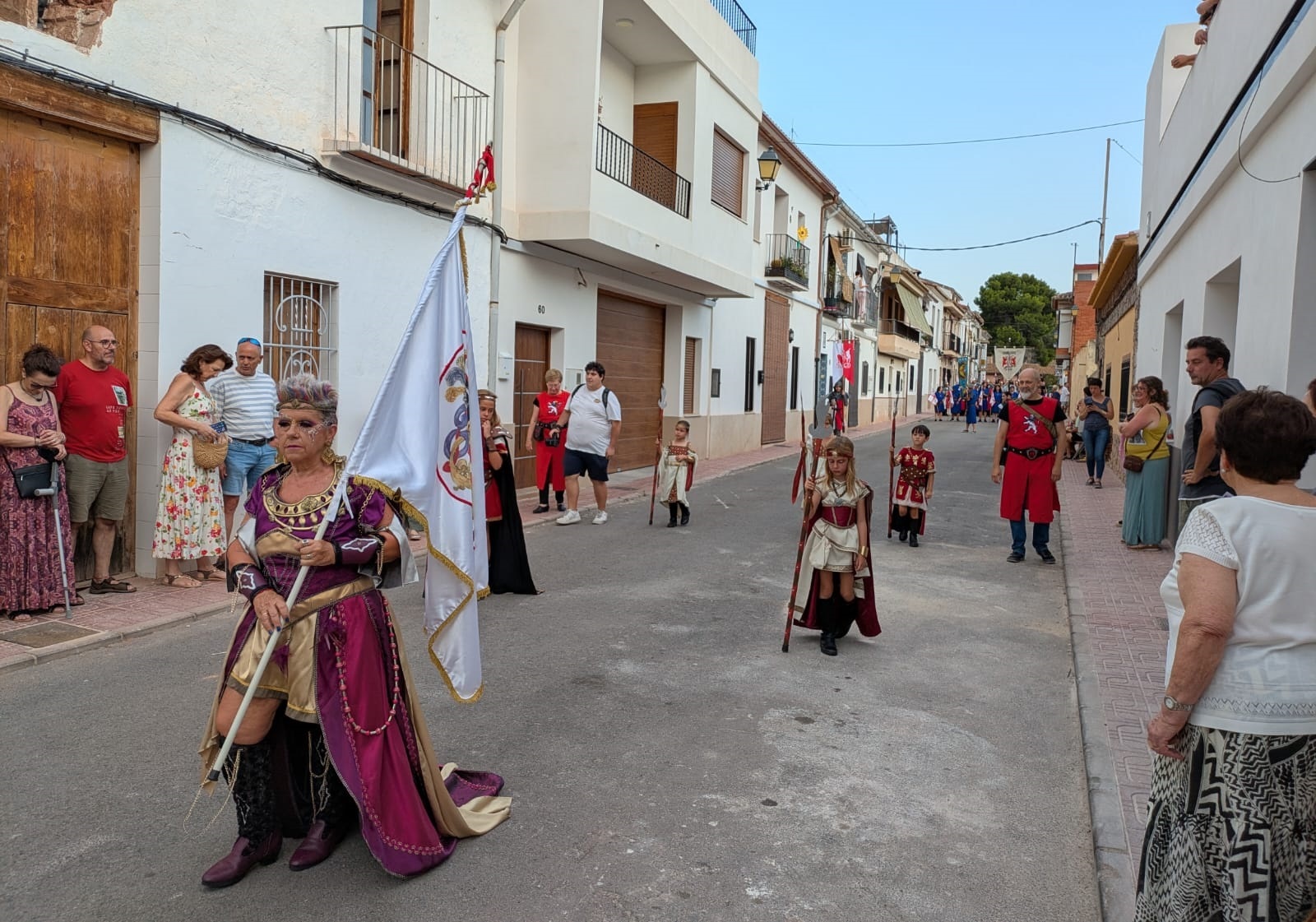 El acto (organizado por la Asociación ‘El Cid’ de Olocau con la financiación de la convocatoria de 2024 de los Presupuestos Participativos del Ayuntamiento y la colaboración de la Diputación de Valencia) arrancó desde la plaza Mayor con la entrada de banderas y estandartes por parte de los cabos de escuadra de las comparsas Almohades (Moncada) y Ben-Amires (Moncada), en representación del bando moro; y El Cid (Olocau), Mío Cid (Valencia) y Artal de Luna (Moncada), del bando cristiano. Además, todos ellos, estuvieron acompañados por la percusión del conjunto local Tambores Percuolo.