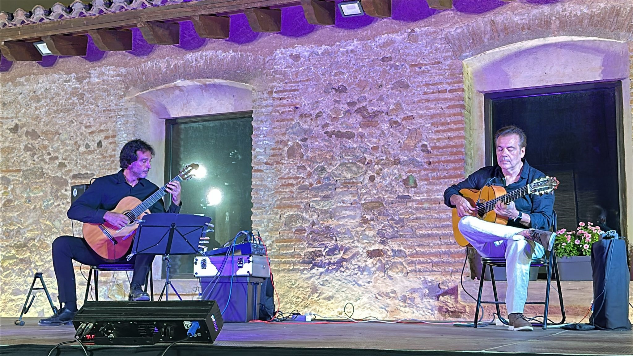 Compartimos fotografías de la actuación que ofrecieron anoche ‘Guitarras del Mediterráneo’ (Javier Zamora y Toni Cotolí, vecino de Pedralvilla) e Irene de la Rosa en el patio de la Casa de la Senyoria.