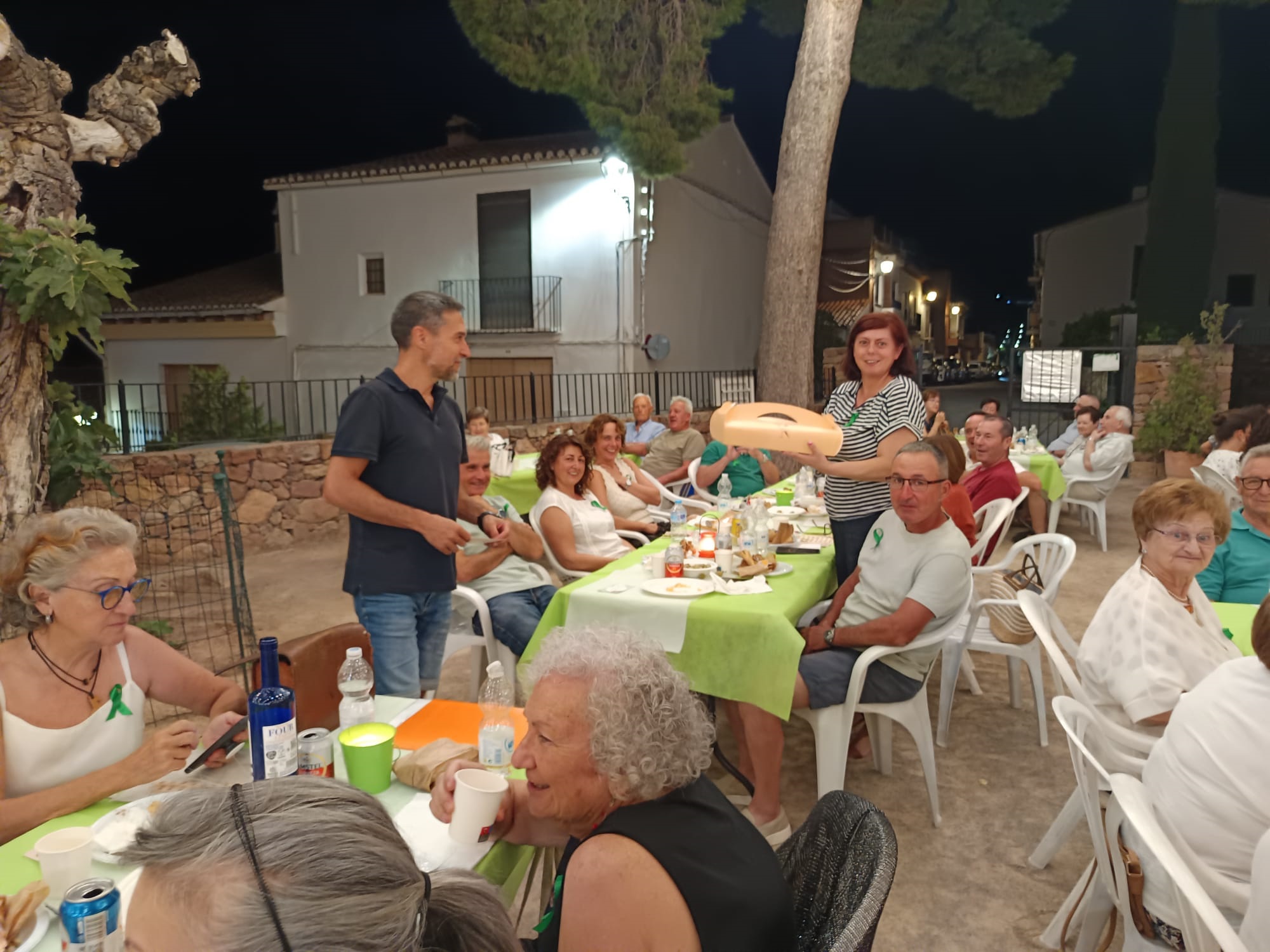 Anoche, el patio de la Casa de la Senyoria acogió una nueva edición de la cena benéfica a favor de la investigación contra el cáncer que organiza la Junta Local de la Asociación Española contra el Cáncer (AECC) en Olocau. El acto, enmarcado en las Fiestas en honor a San Roque, fue un gran éxito y volvió a demostrar el compromiso de la localidad con la lucha frente a dicha enfermedad. En este sentido, la contribución de vecinos y vecinas a lo largo de las últimas semanas ha sido muy importante, con una destacada acogida tanto de la venta de tiques como de las aportaciones a través de la fila cero.