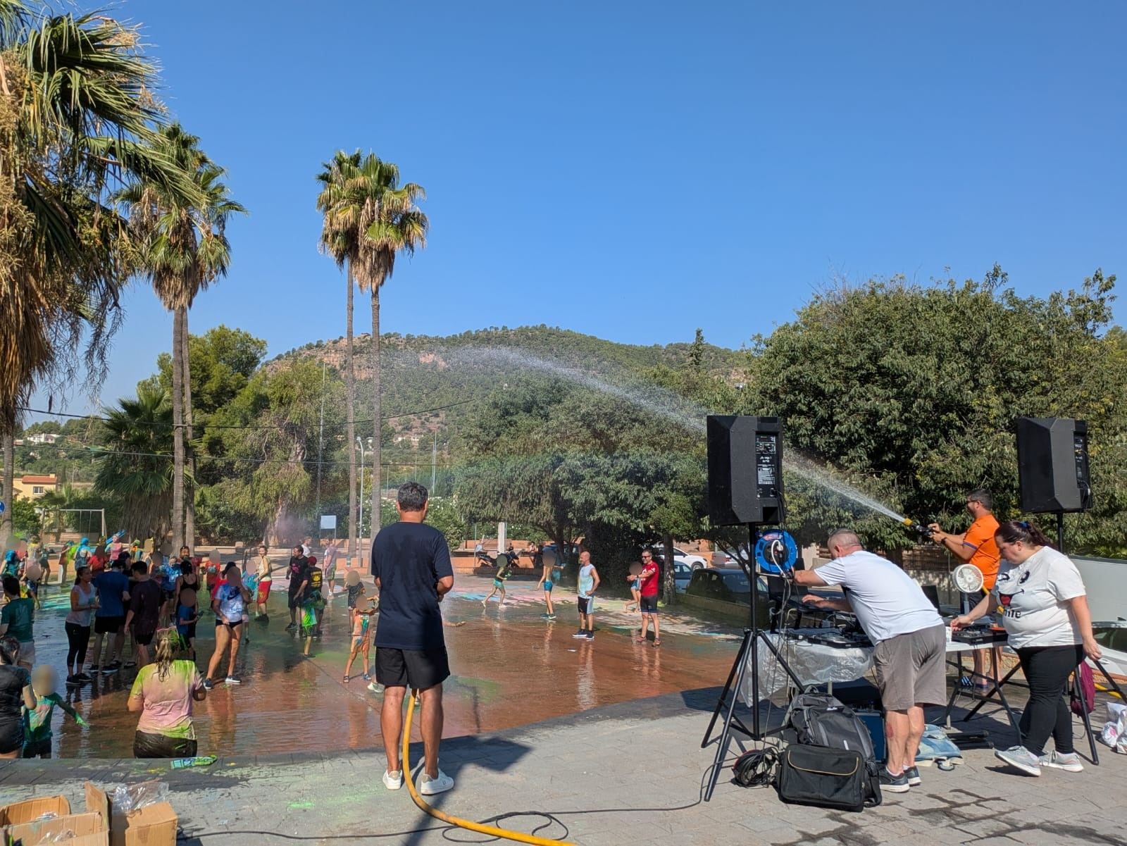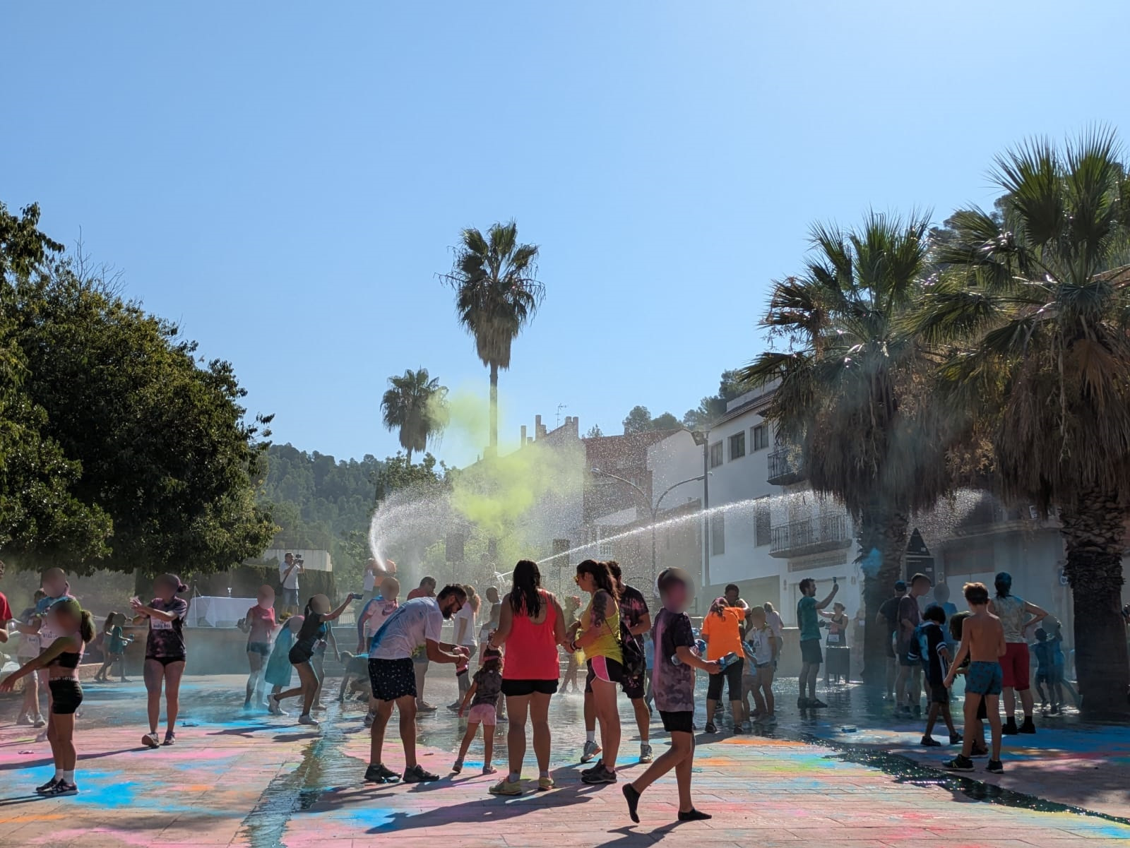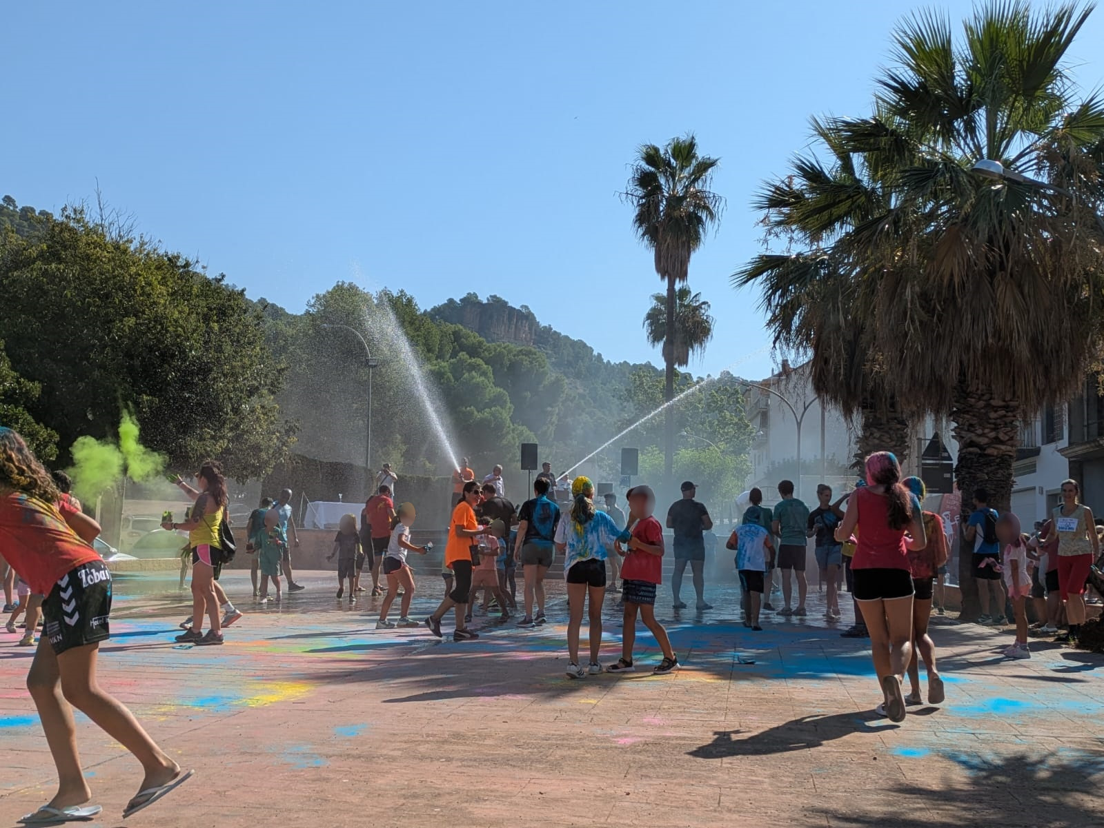 Tras ello, ha comenzado el acto más vistoso y refrescante con el ‘Holi Fest’. Esta celebración, originaria de la India y en la cual los participantes se lanzan polvo de colores entre ellos, ha creado una fantástica atmósfera en combinación con la música y el ambiente de alegría que ha reinado en todo momento. Una fantástica manera de combatir el calor y de continuar disfrutando de las Fiestas Patronales.