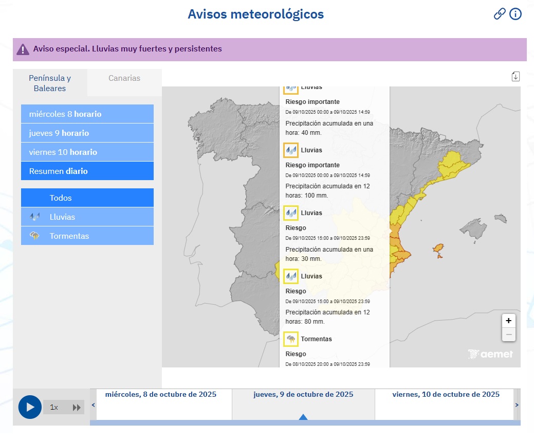 Desde el Ayuntamiento y su Concejalía de Fiestas, informamos de que, debido al episodio de lluvias y tormentas que está previsto que comience este miércoles y que continúe durante la jornada del jueves (clic aquí, aquí y aquí para ampliar las imágenes), se ha procedido a la suspensión del taller y la partida de pelota valenciana que iban a tener lugar en nuestro municipio con motivo del 9 d’Octubre.
