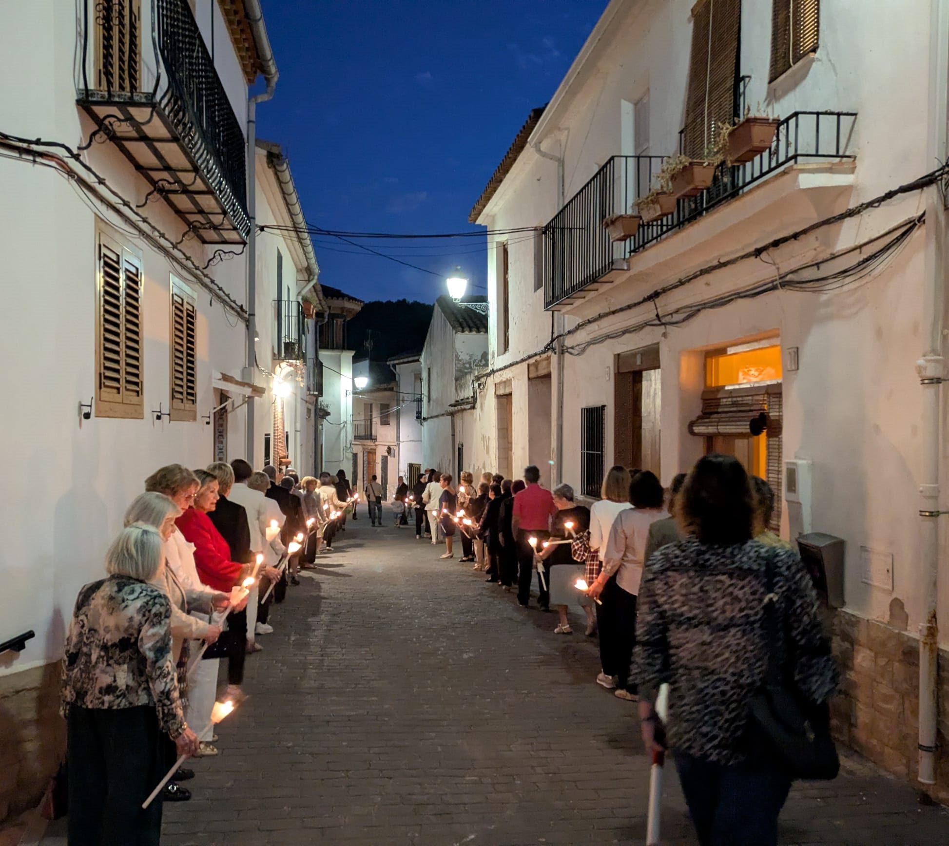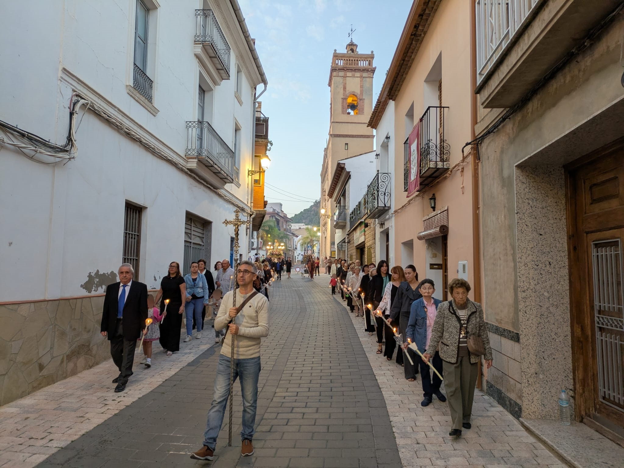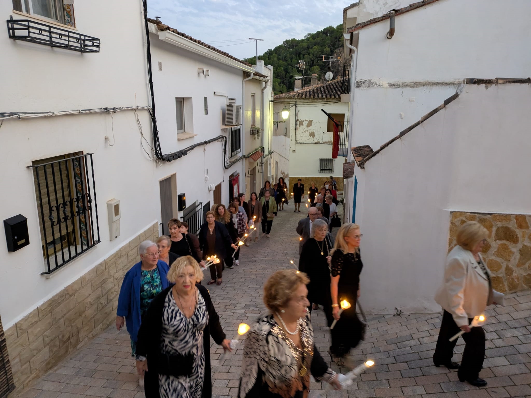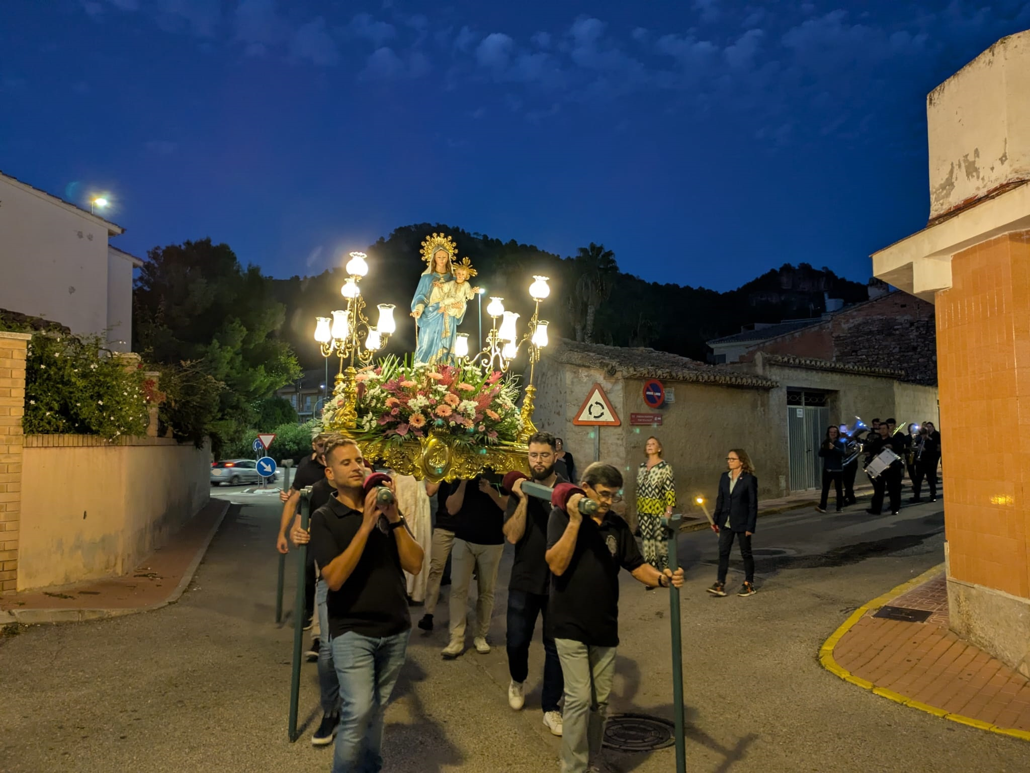 El recorrido por las calles de la localidad estuvo marcado por el respeto y la solemnidad que siempre caracterizan al acto central de las Fiestas de la Virgen del Rosario. En este sentido, la iluminación de los cirios y la música interpretada por la banda de la Agrupació Musical 'La Melodia' crearon un marco incomparable. Además, a medida que avanzaba el cortejo, se fueron sumando más personas que también deseaban acompañar a la patrona de Olocau y mostrarle el afecto y el aprecio que sienten hacia ella.