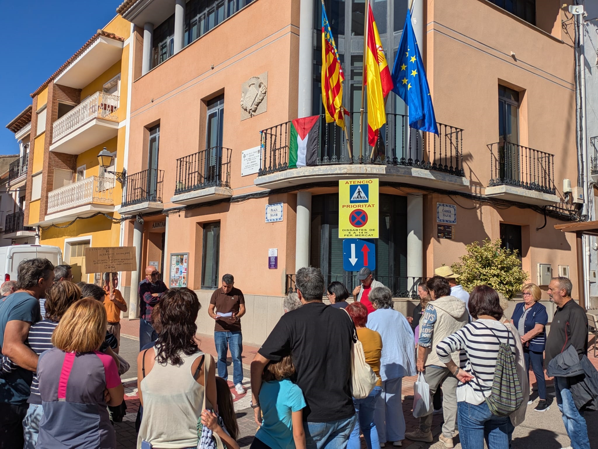 Vecinos, vecinas y, por parte de la Corporación Municipal, el concejal de Servicios, Parques, Jardines y Deportes, Salvador Navarret, y el alcalde, Antonio Ropero, han estado presentes para mostrar el apoyo de Olocau a Palestina ante el genocidio sufrido allí y el inicio del plan de paz recientemente acordado.