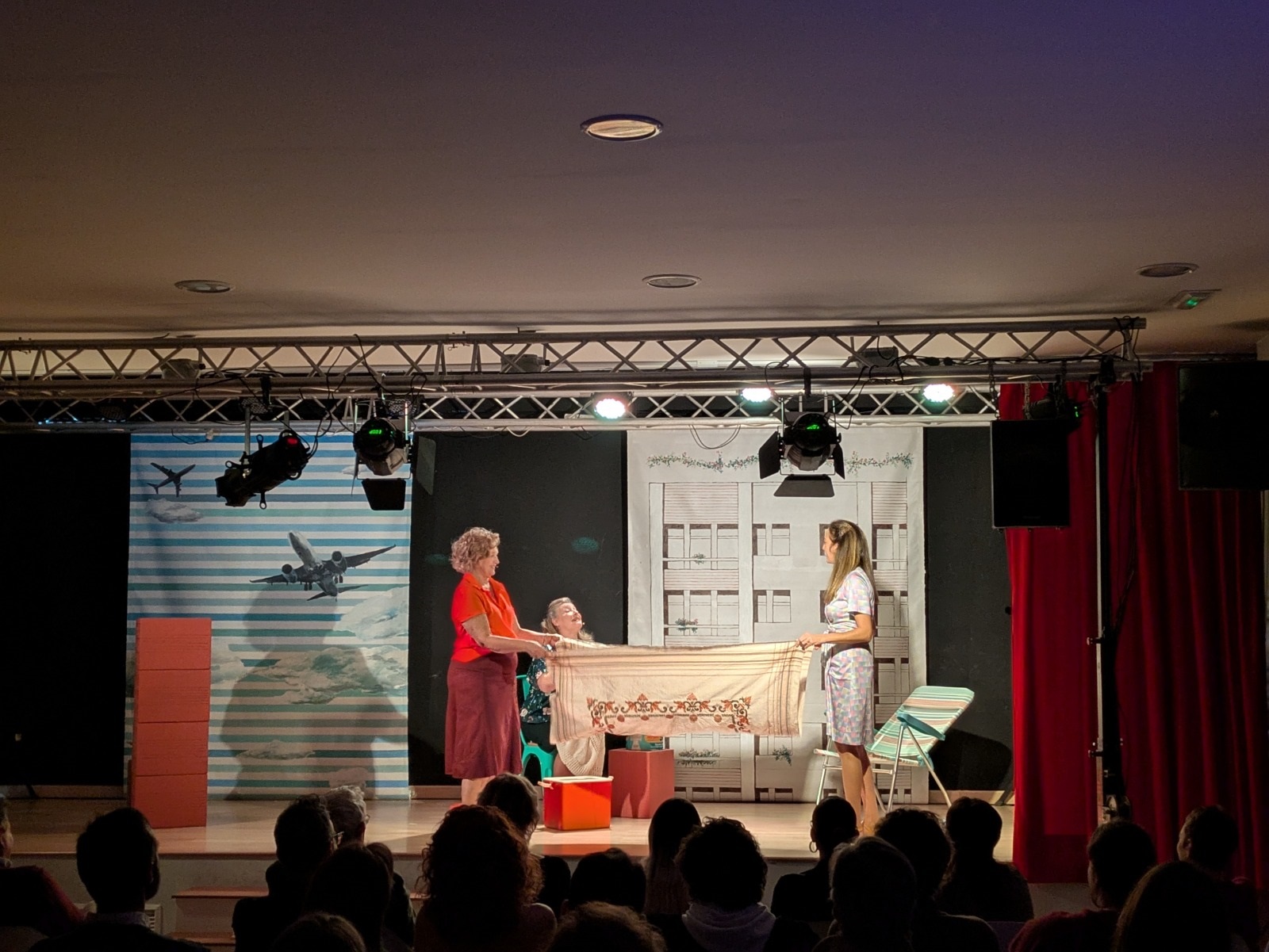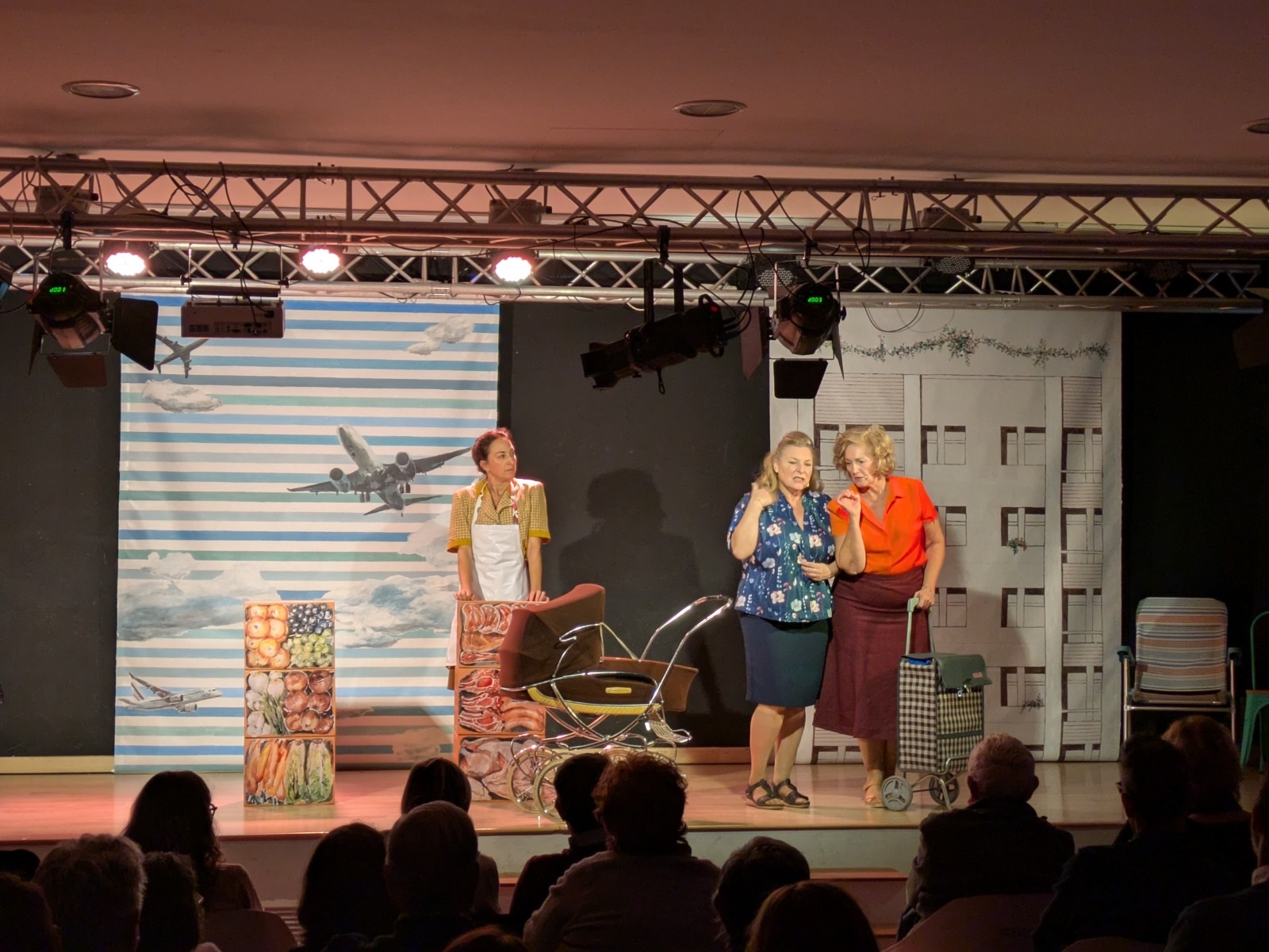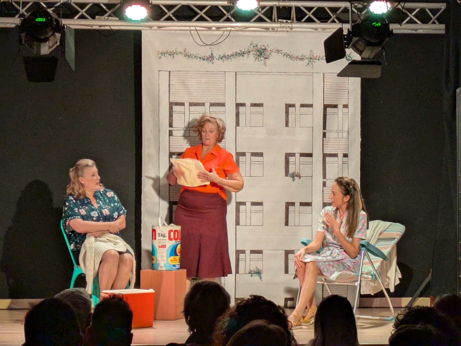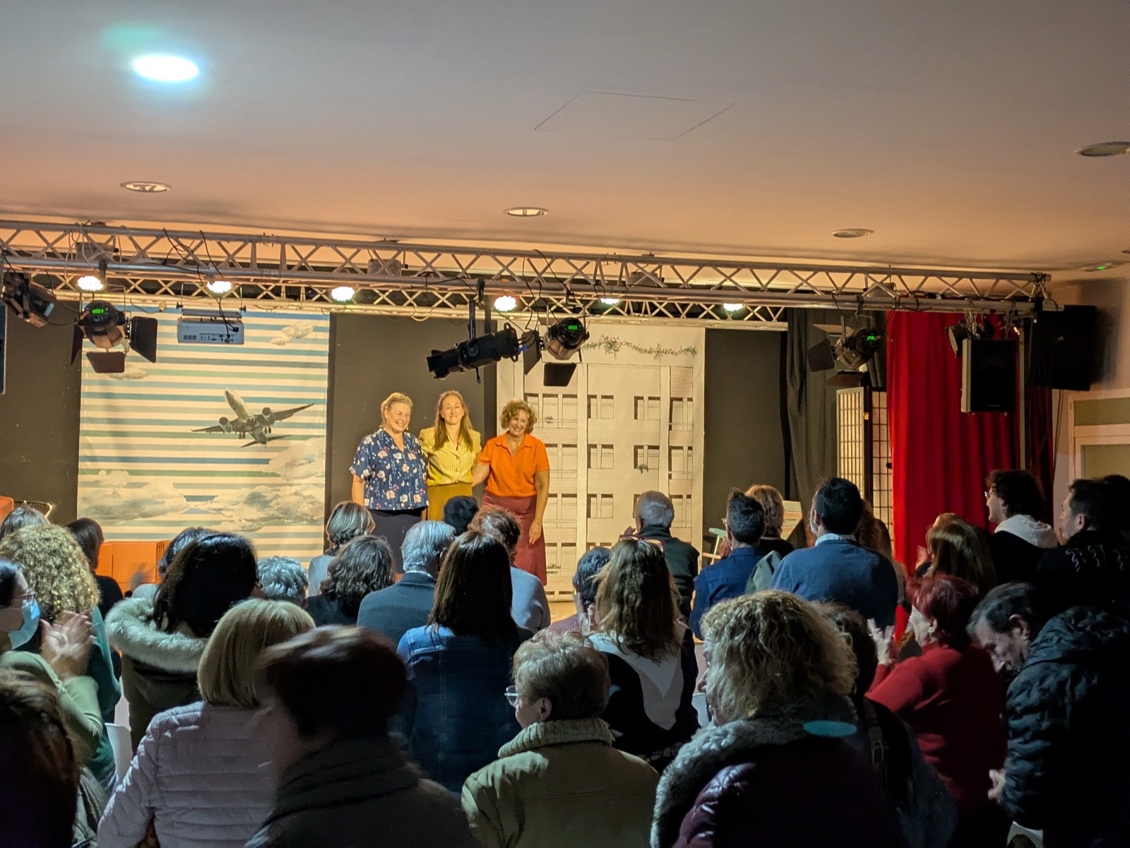 Seguidamente, comenzó una obra protagonizada por tres entrañables amigas —interpretadas por las actrices María José Peris, Silvia Rico y María Minaya— que, tras emigrar del campo a la ciudad, llevan a cabo diferentes acciones para exigir cambios en su barrio enfrentándose a la represión, los valores y las costumbres de la época. A partir de esta premisa, las protagonistas abordaron temas como la mejora de la educación, la defensa de la sanidad, la demanda de un servicio de transporte de calidad o el avance en materia de derechos de las mujeres con humor, números musicales, participación del público y momentos que emocionaron a los y las asistentes.