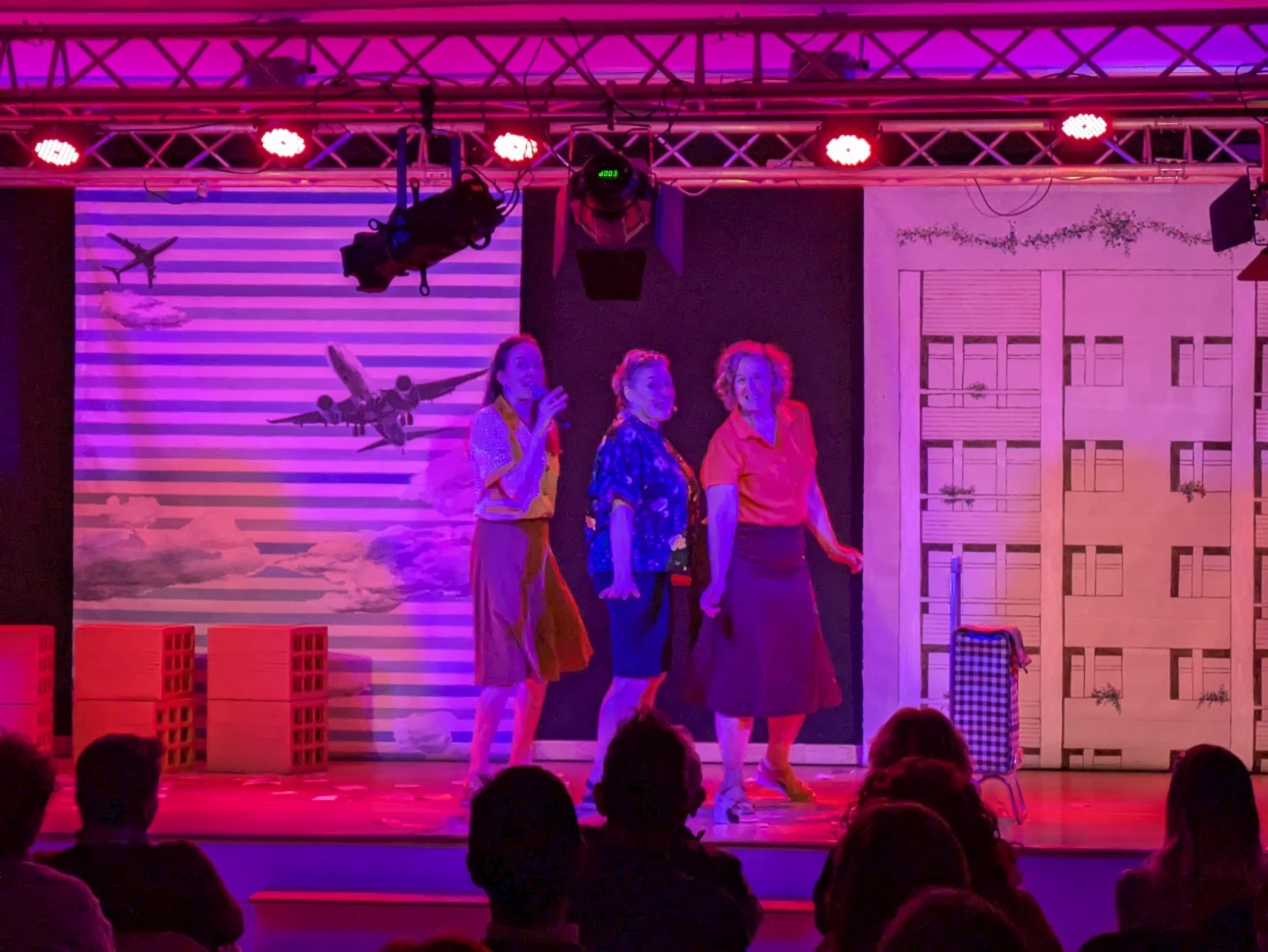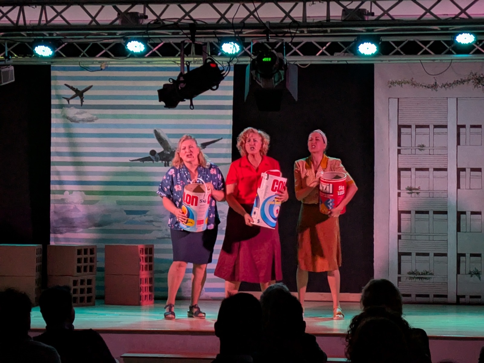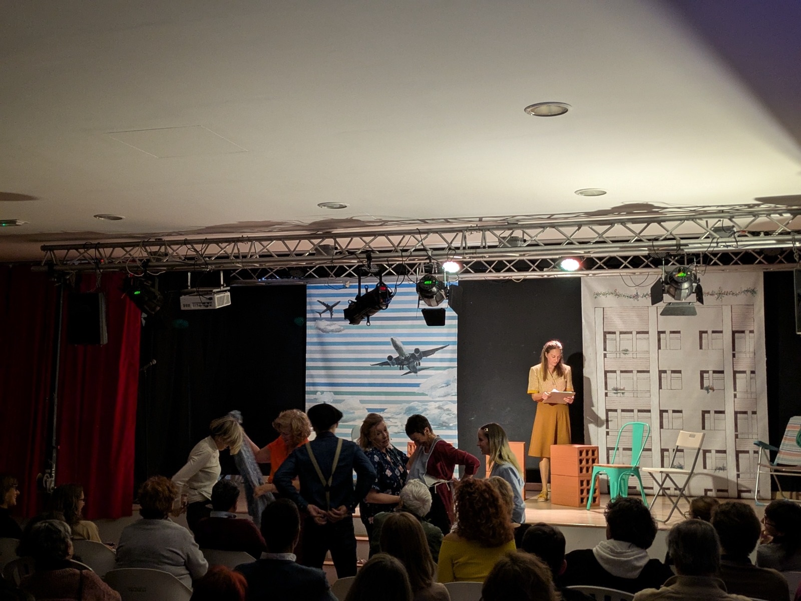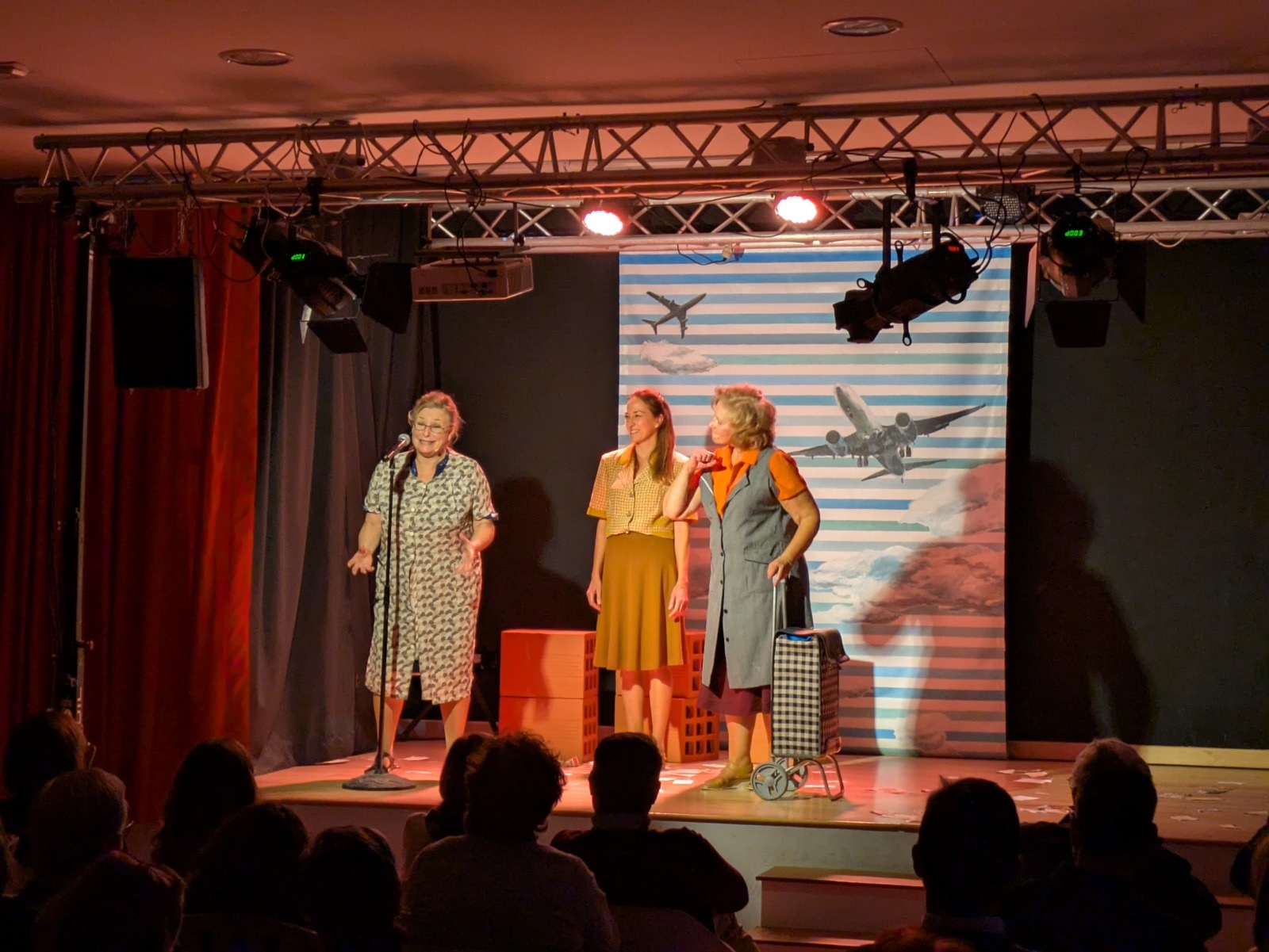 Seguidamente, comenzó una obra protagonizada por tres entrañables amigas —interpretadas por las actrices María José Peris, Silvia Rico y María Minaya— que, tras emigrar del campo a la ciudad, llevan a cabo diferentes acciones para exigir cambios en su barrio enfrentándose a la represión, los valores y las costumbres de la época. A partir de esta premisa, las protagonistas abordaron temas como la mejora de la educación, la defensa de la sanidad, la demanda de un servicio de transporte de calidad o el avance en materia de derechos de las mujeres con humor, números musicales, participación del público y momentos que emocionaron a los y las asistentes.