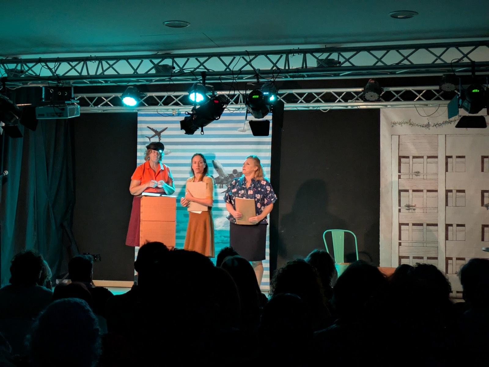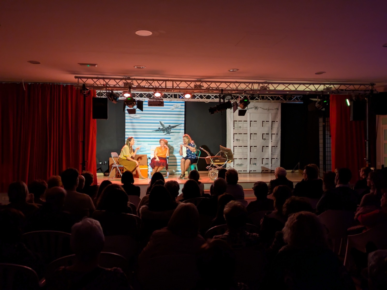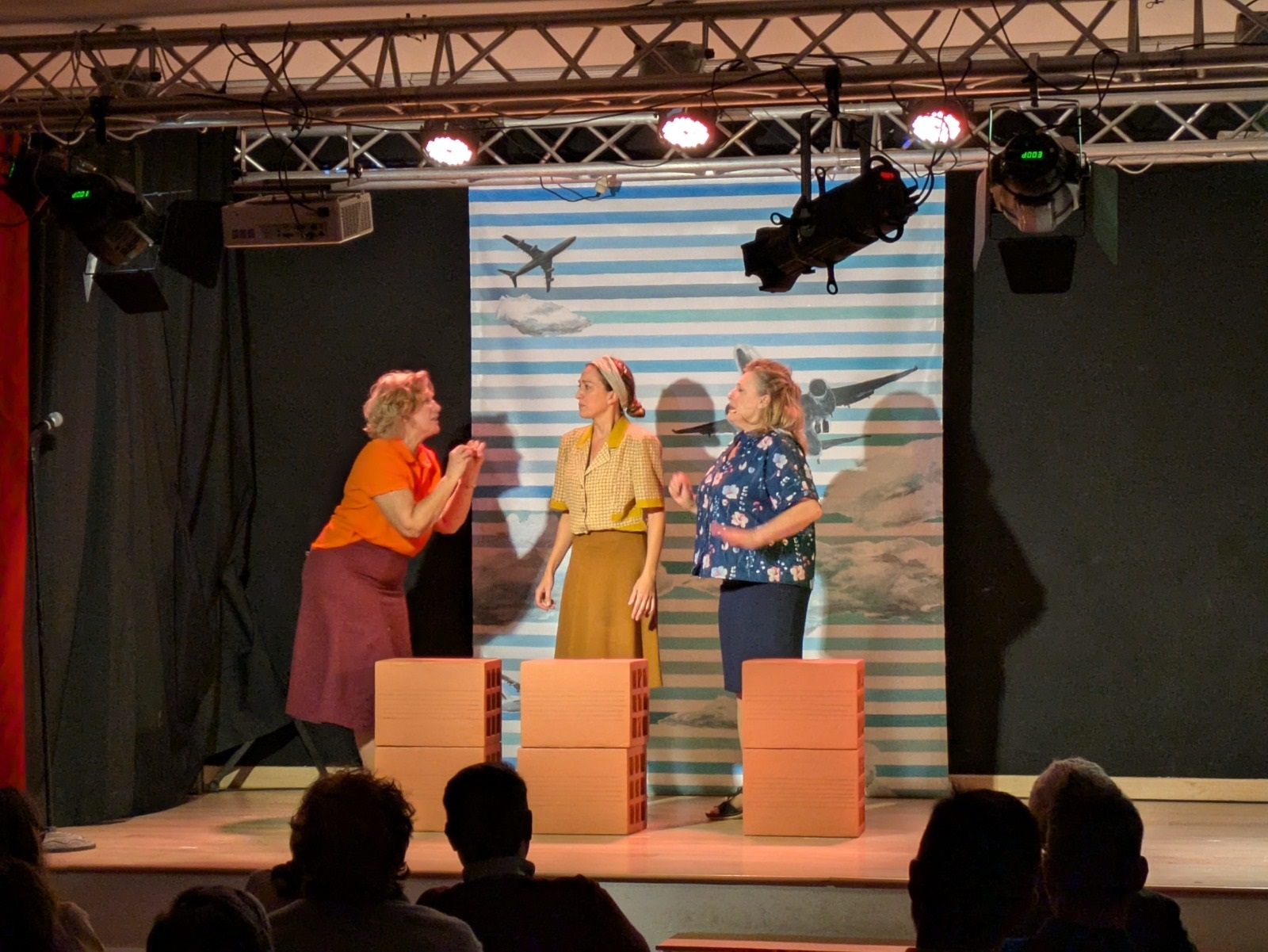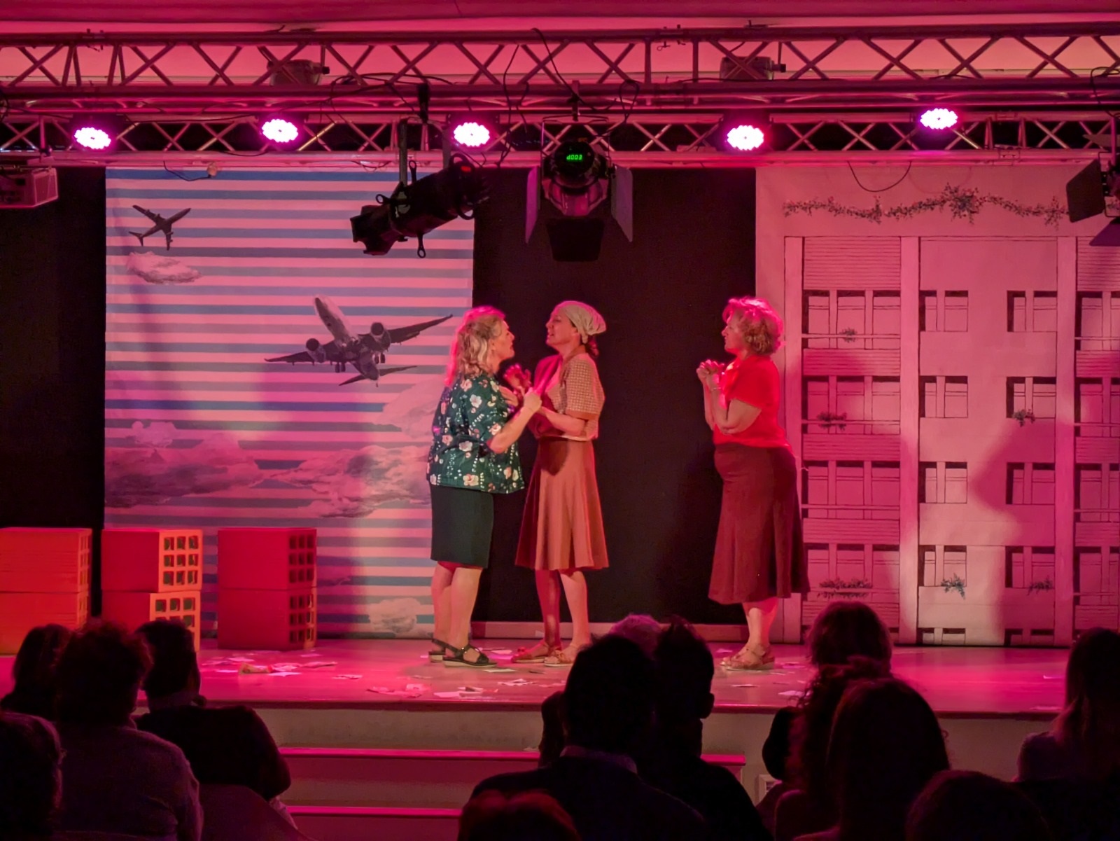 Seguidamente, comenzó una obra protagonizada por tres entrañables amigas —interpretadas por las actrices María José Peris, Silvia Rico y María Minaya— que, tras emigrar del campo a la ciudad, llevan a cabo diferentes acciones para exigir cambios en su barrio enfrentándose a la represión, los valores y las costumbres de la época. A partir de esta premisa, las protagonistas abordaron temas como la mejora de la educación, la defensa de la sanidad, la demanda de un servicio de transporte de calidad o el avance en materia de derechos de las mujeres con humor, números musicales, participación del público y momentos que emocionaron a los y las asistentes.