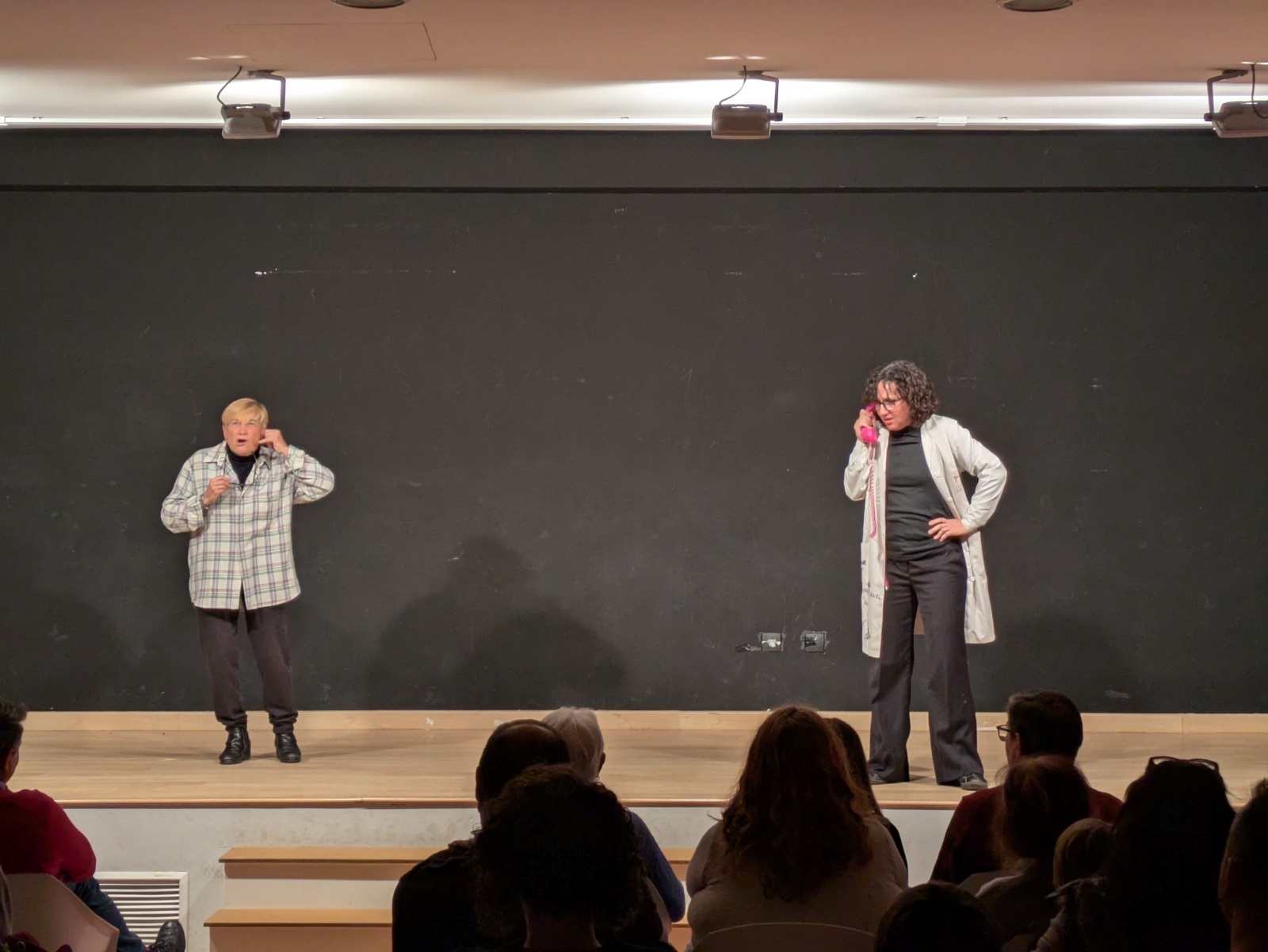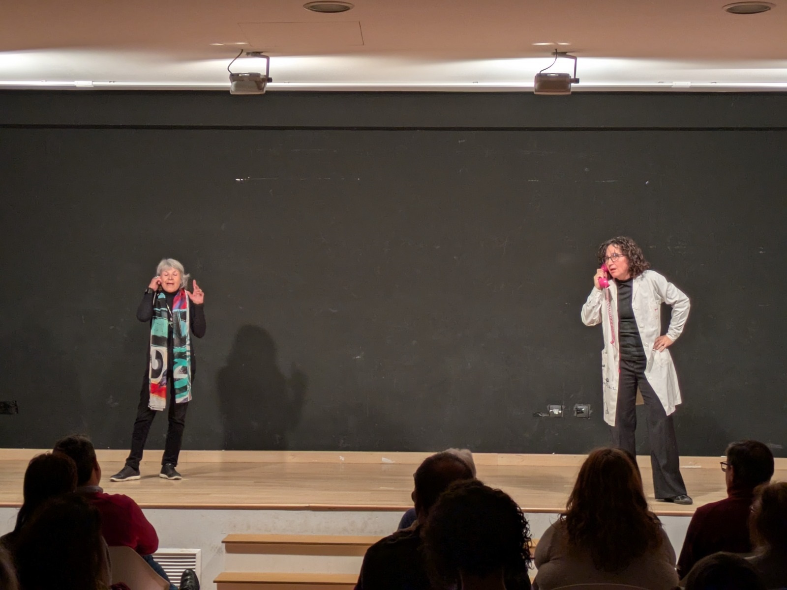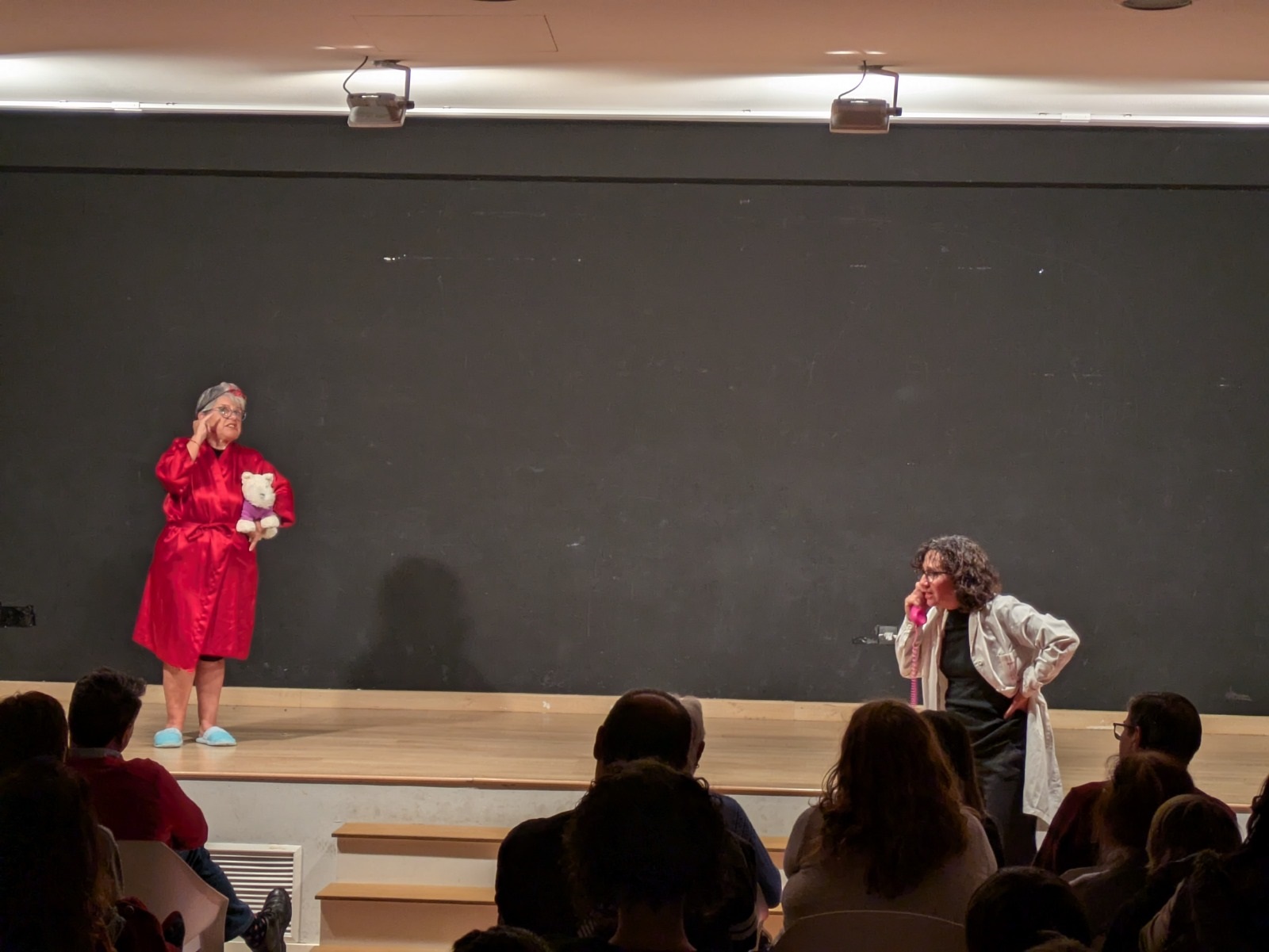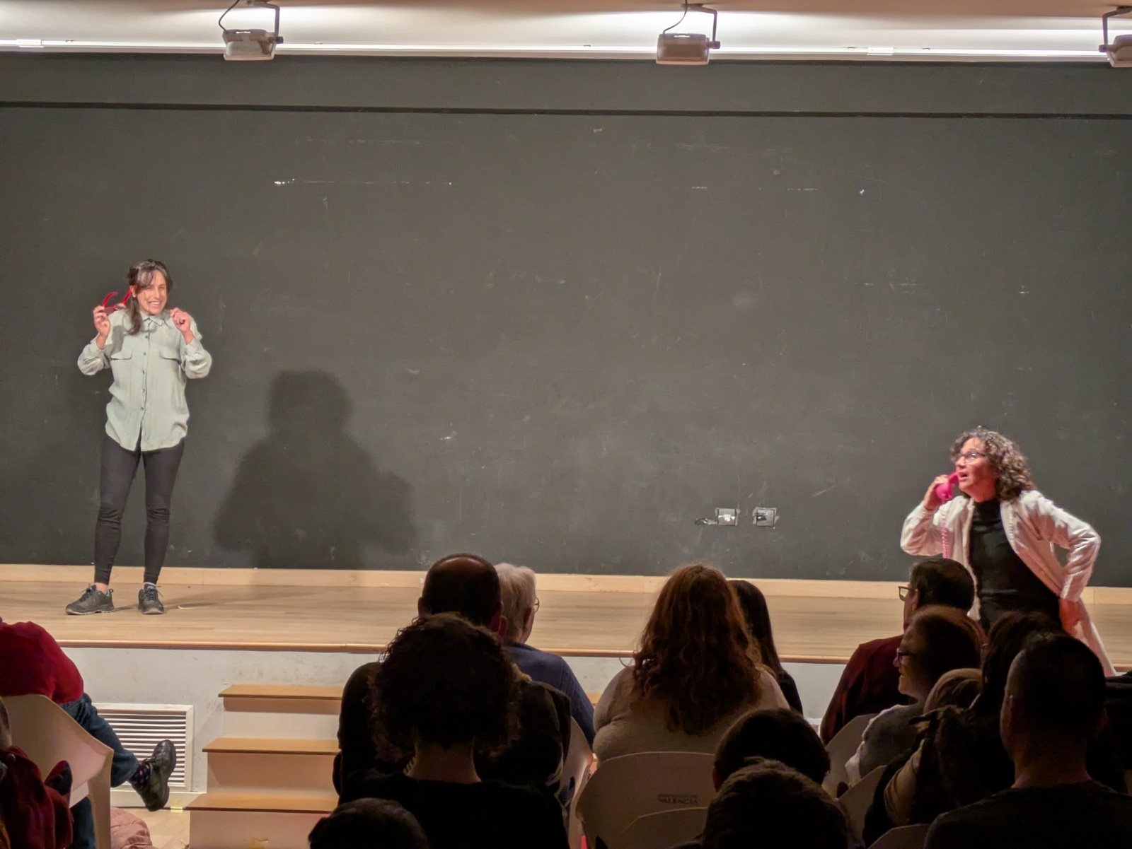 A continuación, arrancó una función con la que el público pudo disfrutar de las excelentes actuaciones de los y las intérpretes a través de escenas protagonizadas, entre otros, por un cartero, una encuadernadora, o una profesora y su alumnado. Unas escenas en las que la poesía, el humor y la creatividad estuvieron muy presentes, y que sirvieron para poner, de nuevo, de manifiesto el talento, la creatividad, la pasión por las artes escénicas y el estilo desenfadado que forman parte intrínseca de los tres talleres de teatro.