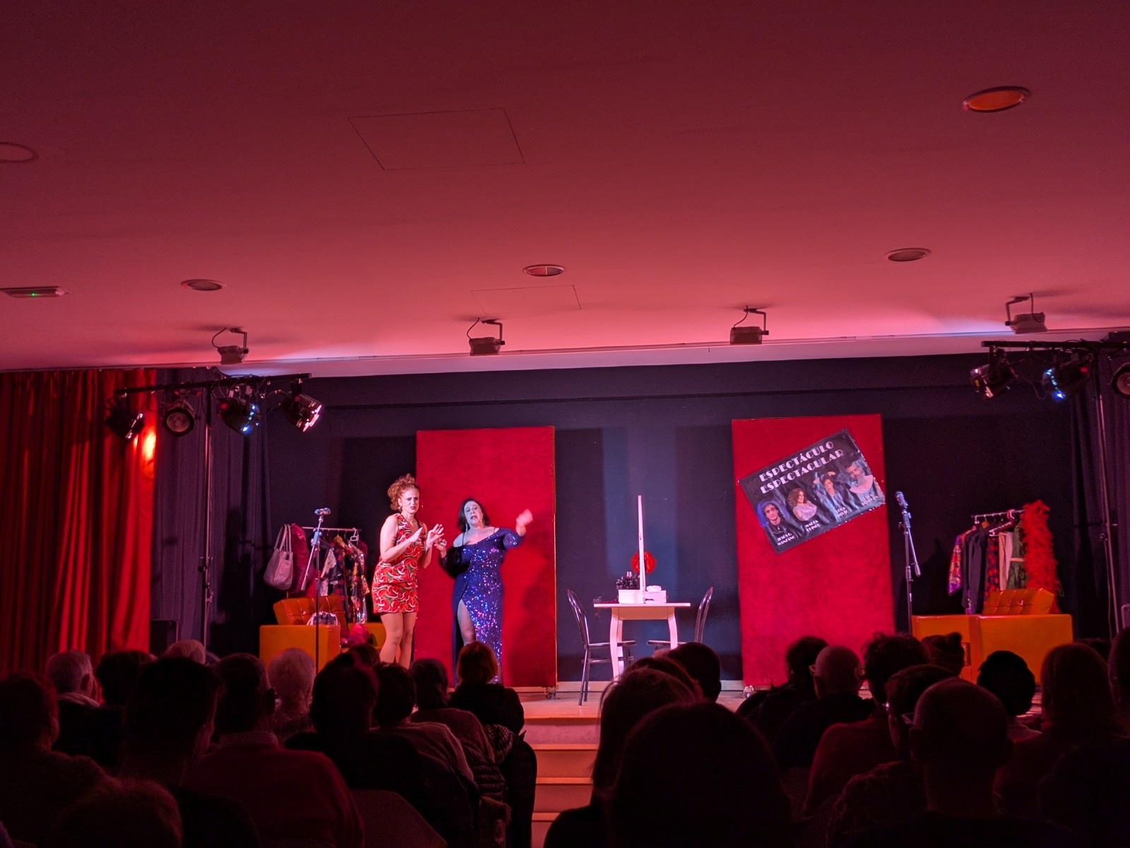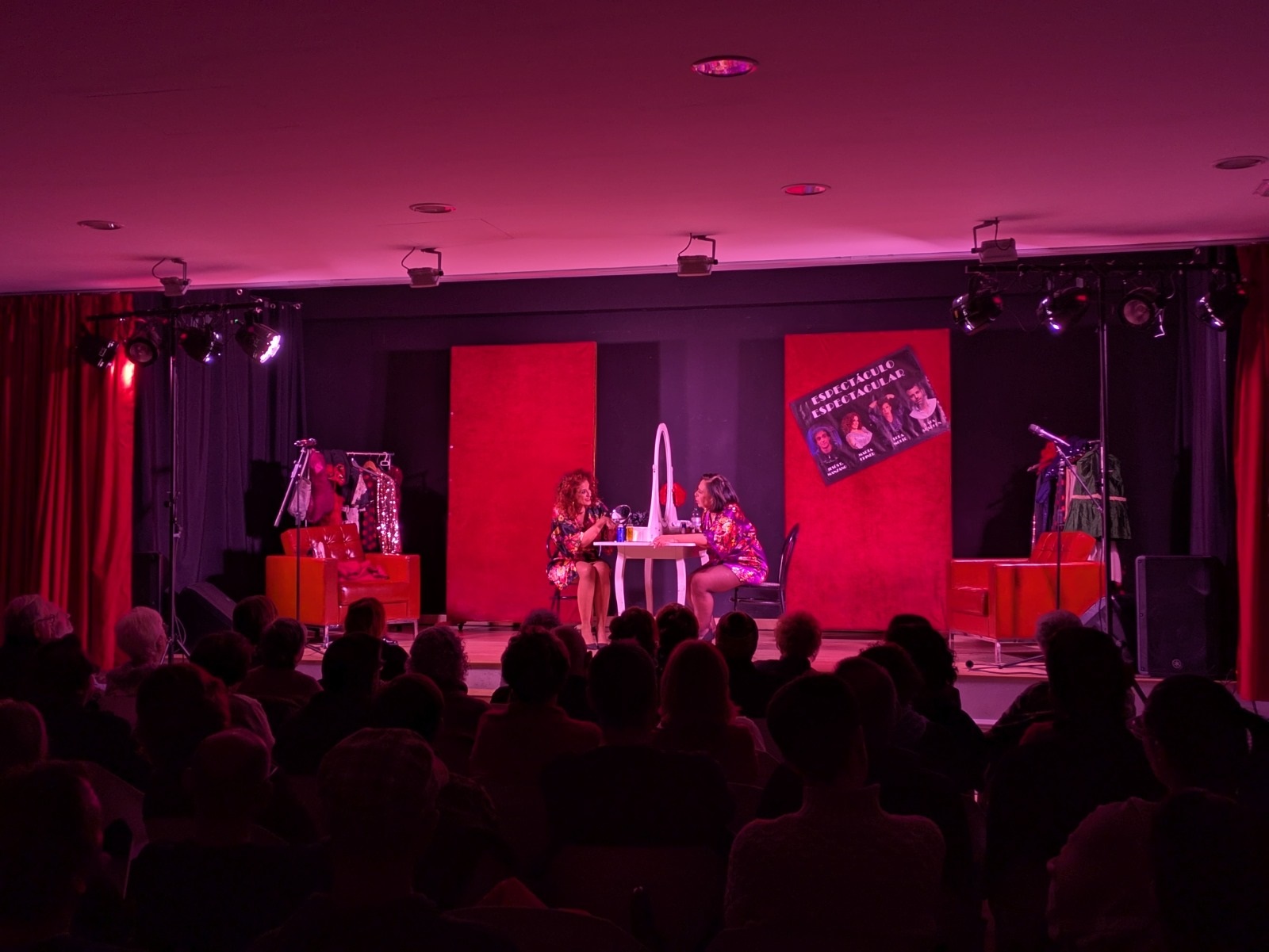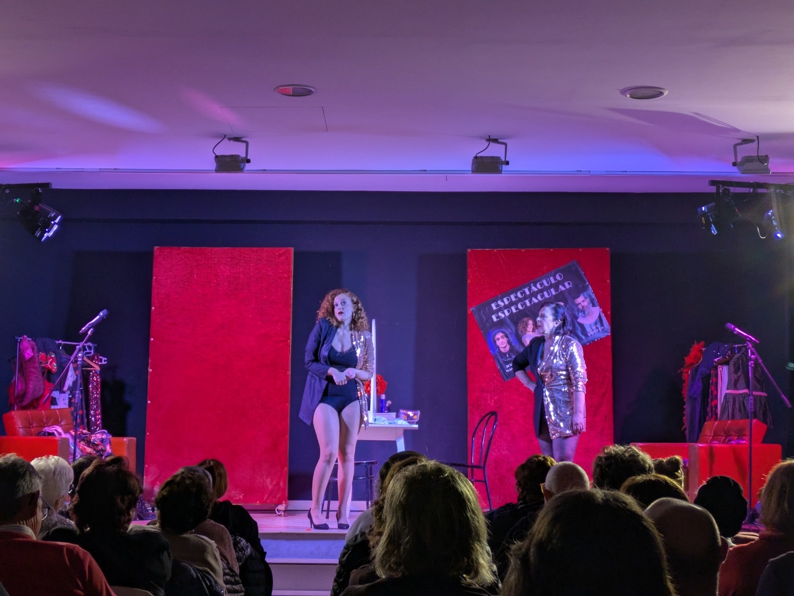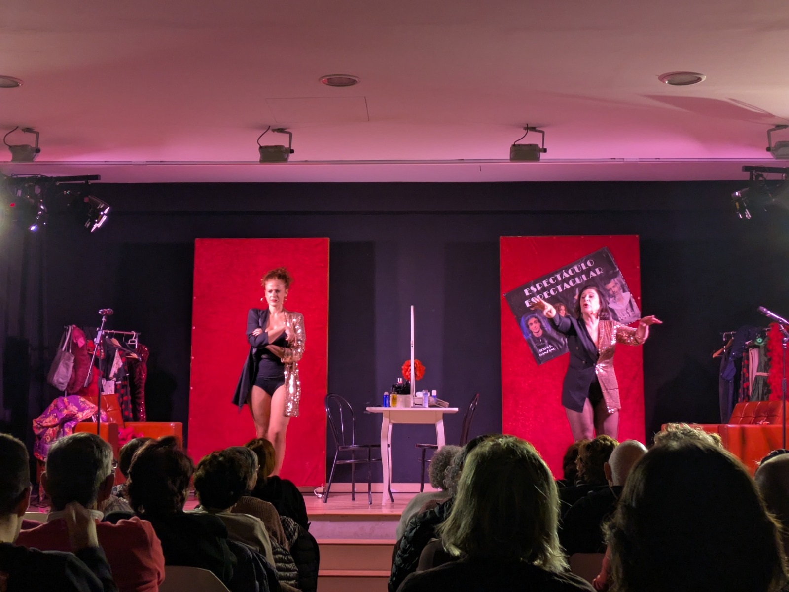 Después, comenzó una función que entusiasmó a los y las asistentes con la historia de dos amigas artistas —magníficamente interpretadas por Lola Moltó y Marta Chiner— que conversan sobre su vida personal y profesional, la manera en la que muchas veces ambas se entrelazan, y sus proyectos en la industria del espectáculo. Todo ello, combinando monólogos, actuaciones musicales, comedia de situación e interacción con un público que siempre mostró una total complicidad con Moltó y Chiner.