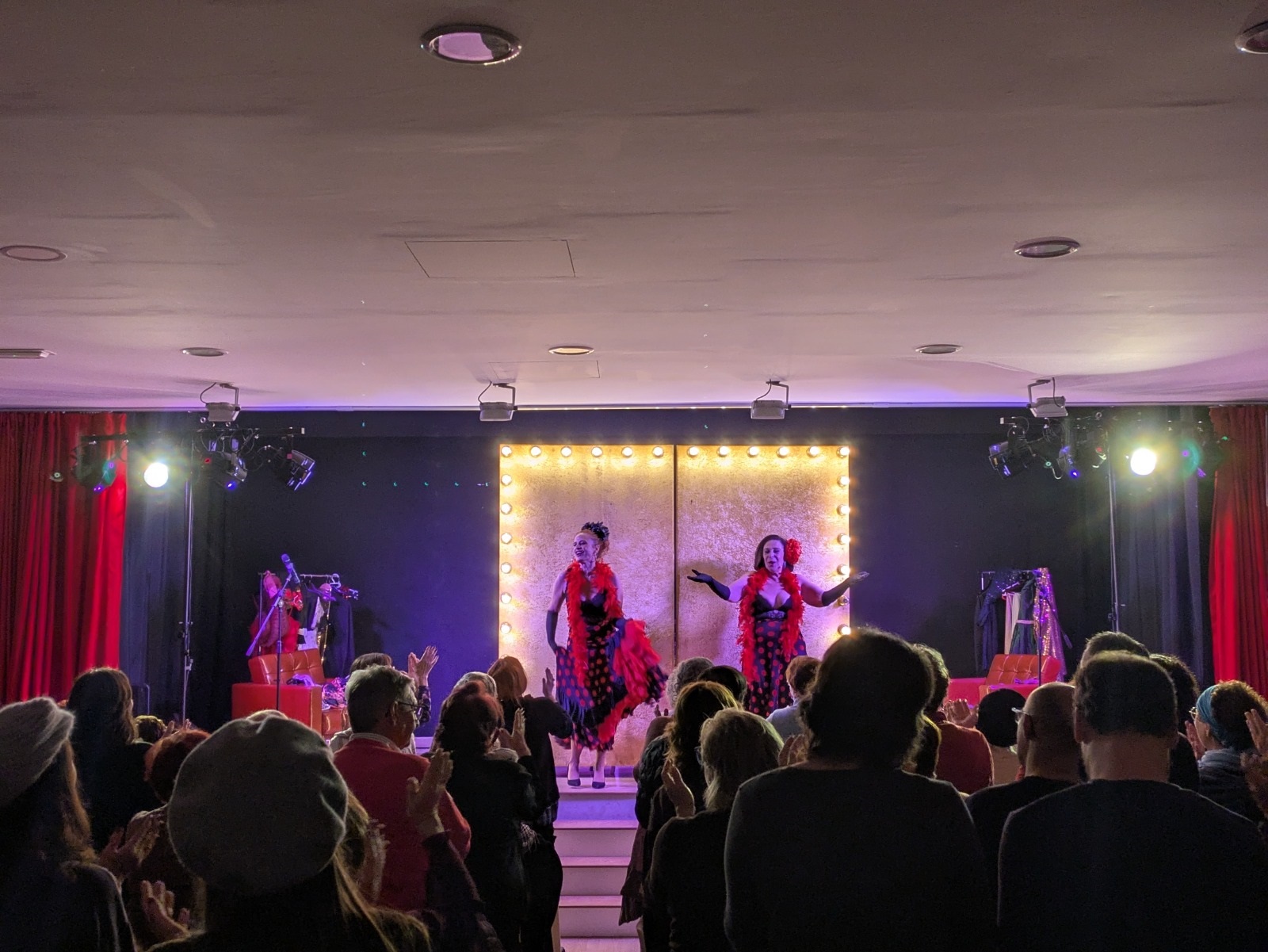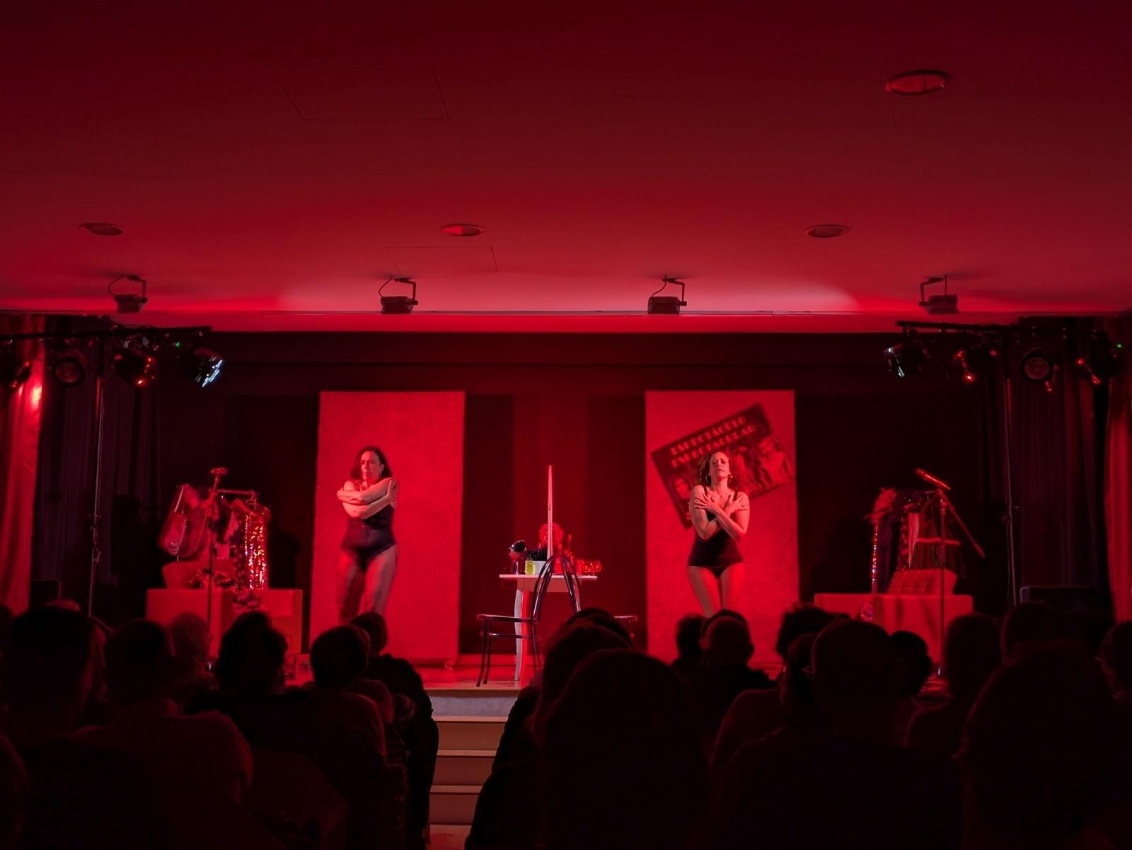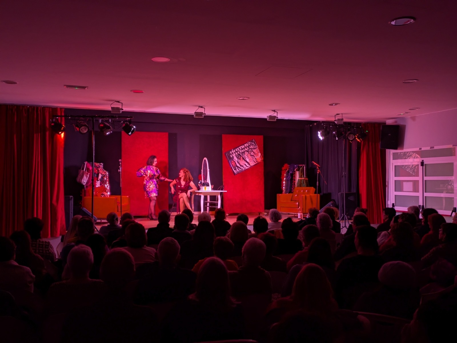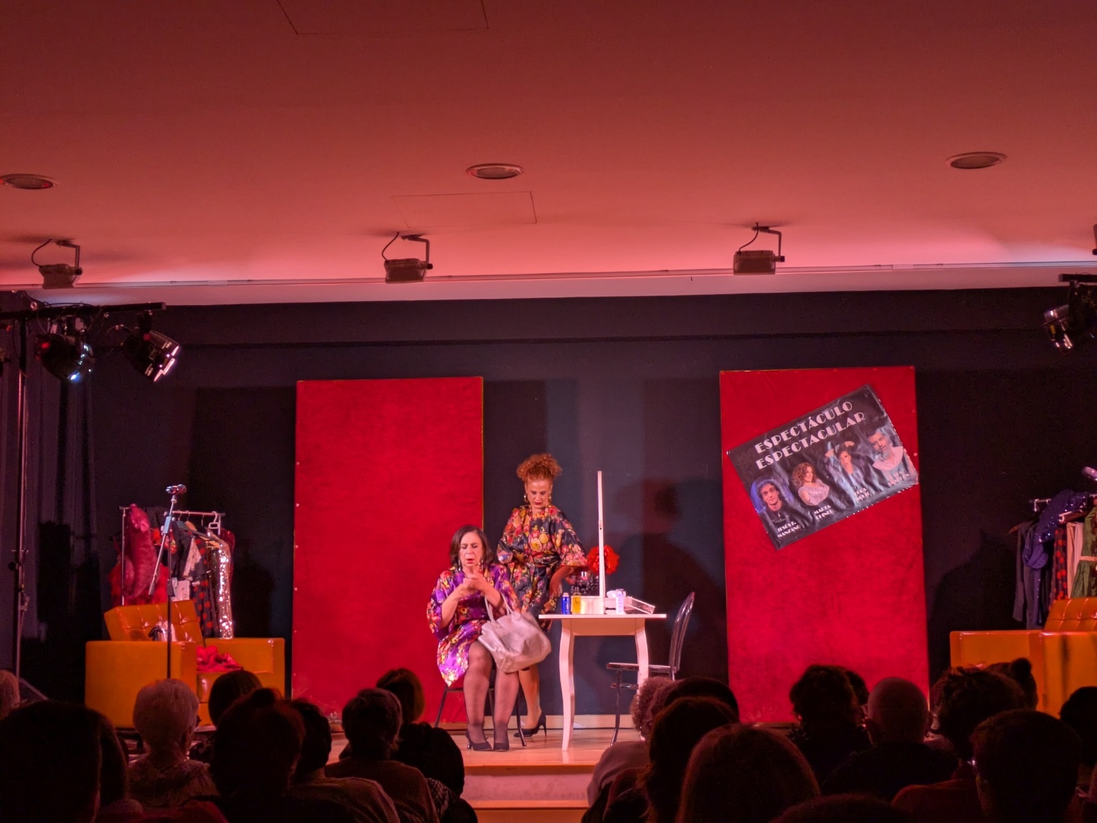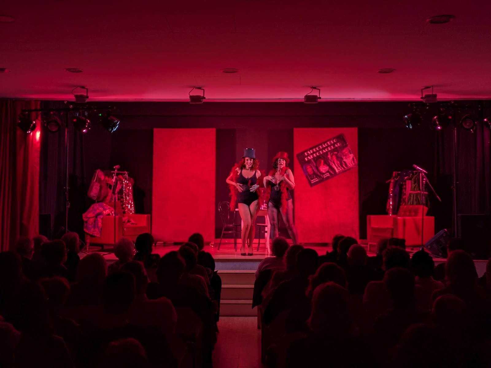 Después, comenzó una función que entusiasmó a los y las asistentes con la historia de dos amigas artistas —magníficamente interpretadas por Lola Moltó y Marta Chiner— que conversan sobre su vida personal y profesional, la manera en la que muchas veces ambas se entrelazan, y sus proyectos en la industria del espectáculo. Todo ello, combinando monólogos, actuaciones musicales, comedia de situación e interacción con un público que siempre mostró una total complicidad con Moltó y Chiner.