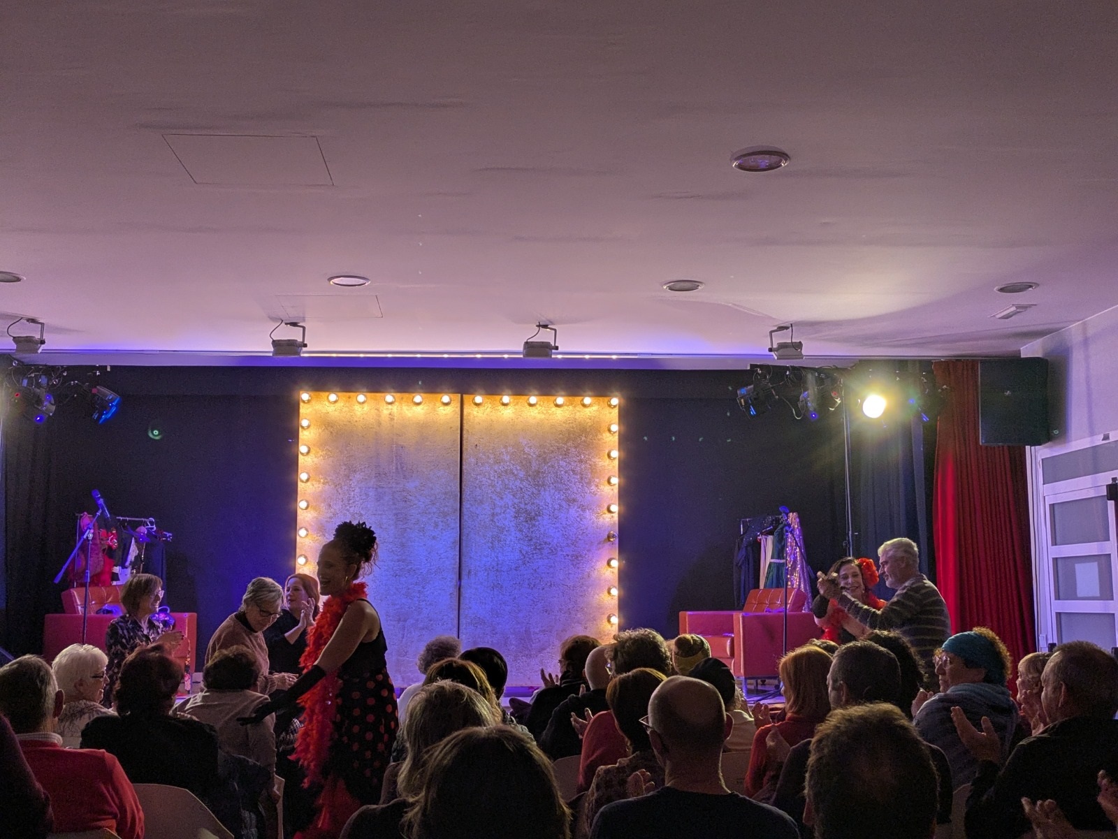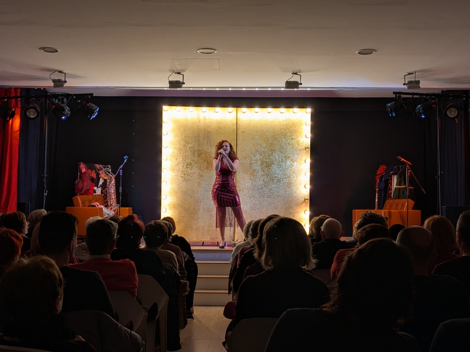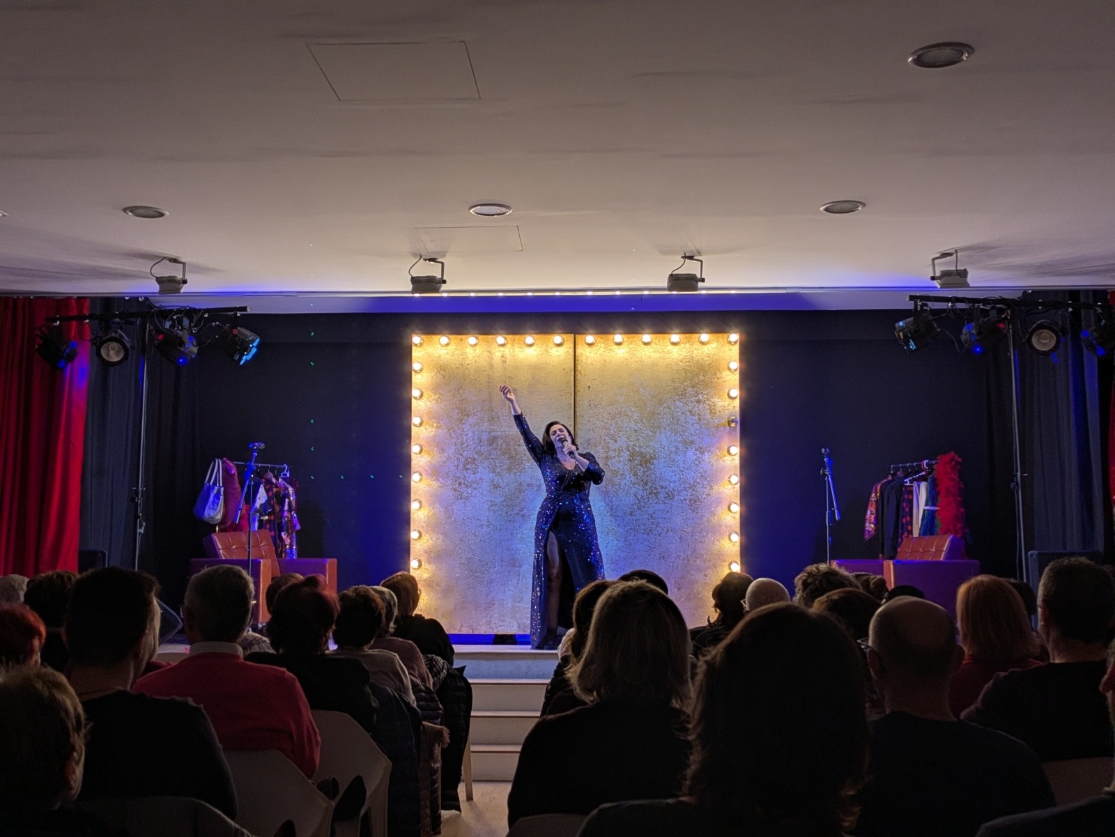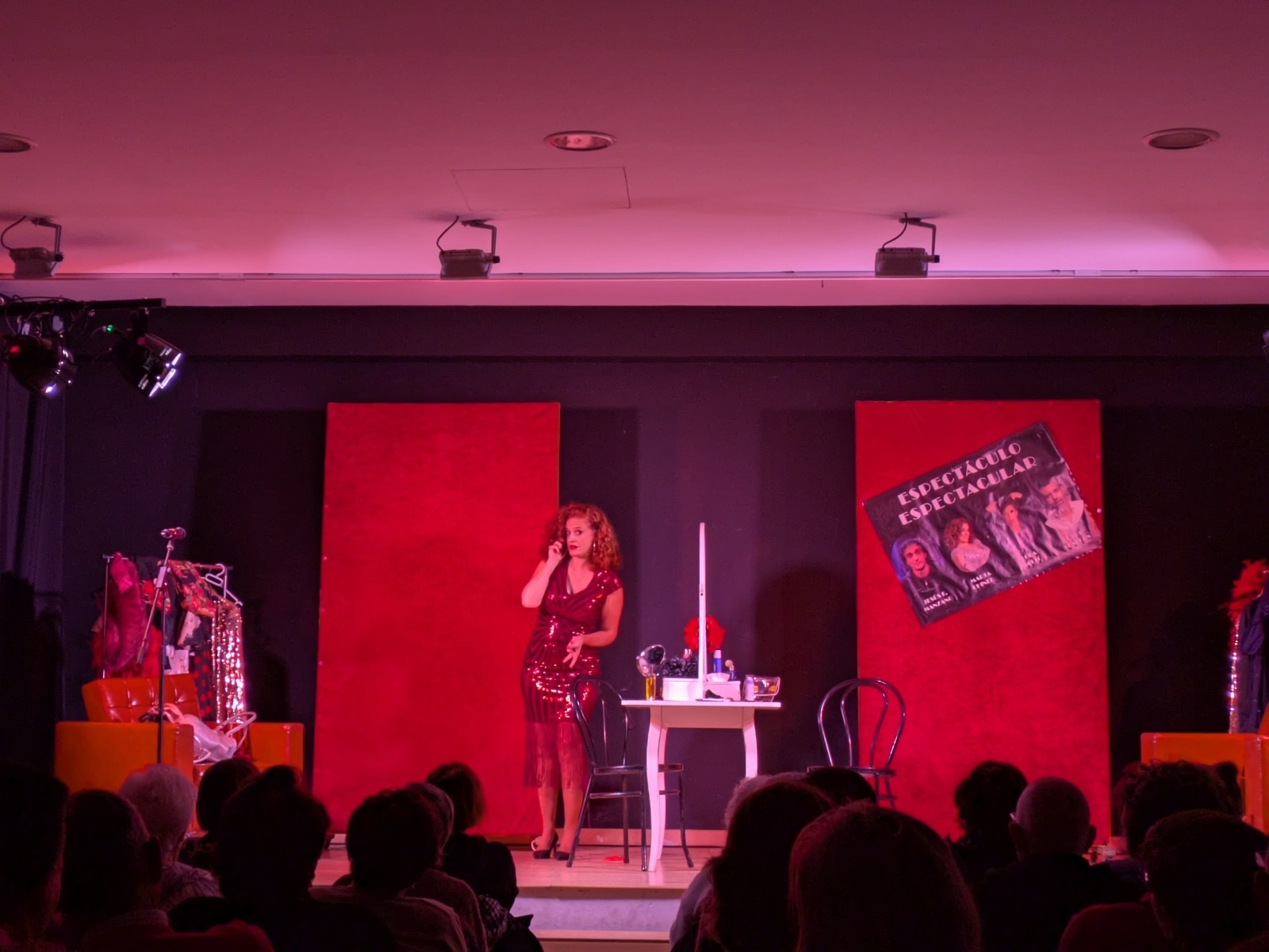 Después, comenzó una función que entusiasmó a los y las asistentes con la historia de dos amigas artistas —magníficamente interpretadas por Lola Moltó y Marta Chiner— que conversan sobre su vida personal y profesional, la manera en la que muchas veces ambas se entrelazan, y sus proyectos en la industria del espectáculo. Todo ello, combinando monólogos, actuaciones musicales, comedia de situación e interacción con un público que siempre mostró una total complicidad con Moltó y Chiner.