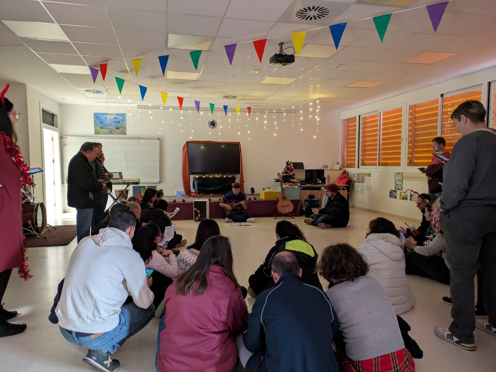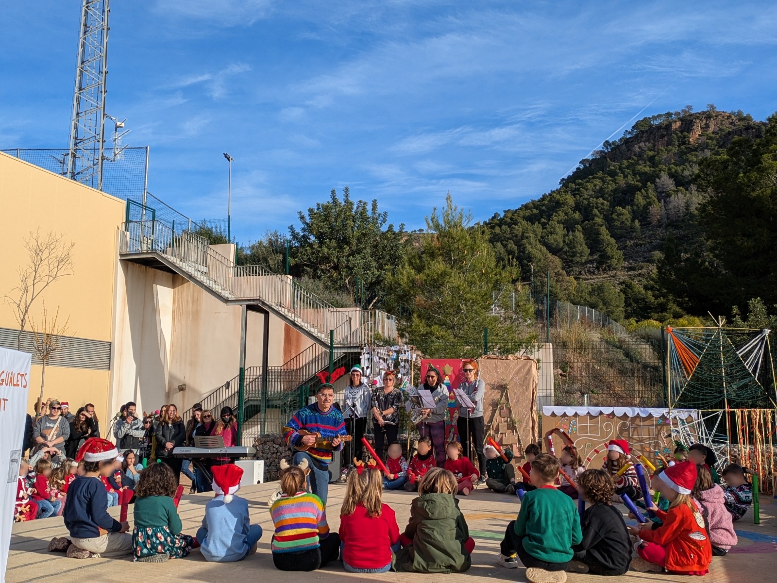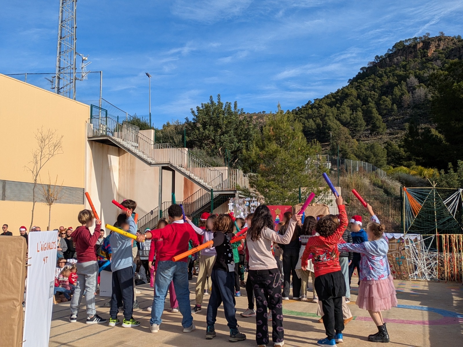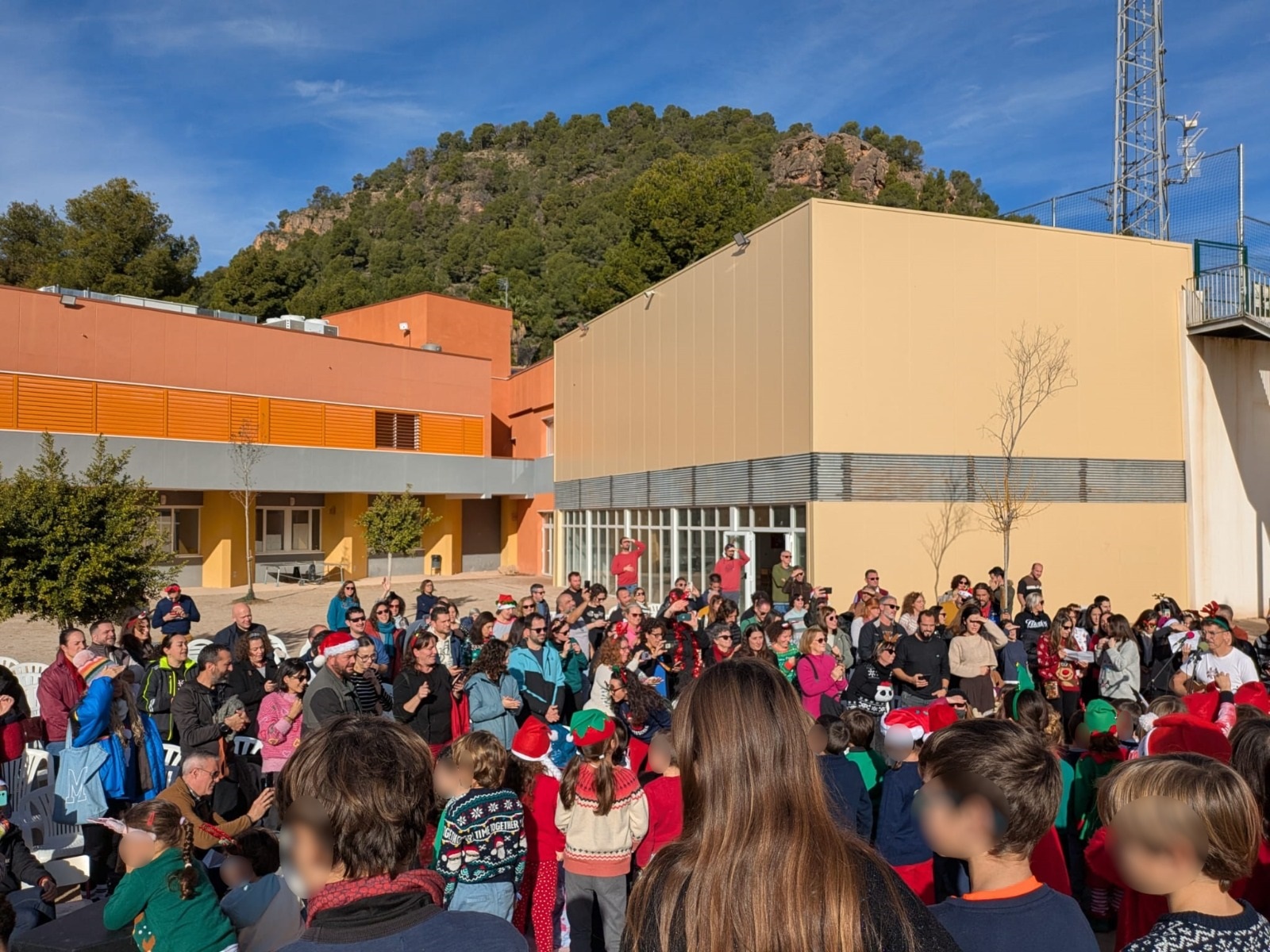 En este sentido, se han interpretado los temas ‘Pinya, pinya, fum, fum’ (cantada primero por el ciclo de Infantil y, después, con los seis cursos de Primaria, en la que se habla sobre las costumbres navideñas, así como sobre disfrutar de las fiestas en compañía de los seres queridos y ayudándose los unos a los otros), ‘Carrolivamet’ (cuya letra pone en valor los cultivos de la calabaza, la granada, la algarroba y la oliva como elementos principales del proyecto de este año, ‘Som natura, som escola, som rurals’, y del II APLEC A cau de lluna, titulado ‘La veu de la terra’) y ‘Obri la porta’ (cantada por todos los allí presentes, elaborada por el alumnado, las familias y el profesorado, y que trata sobre la importancia de acoger, hacer comunidad y compartir momentos juntos).
