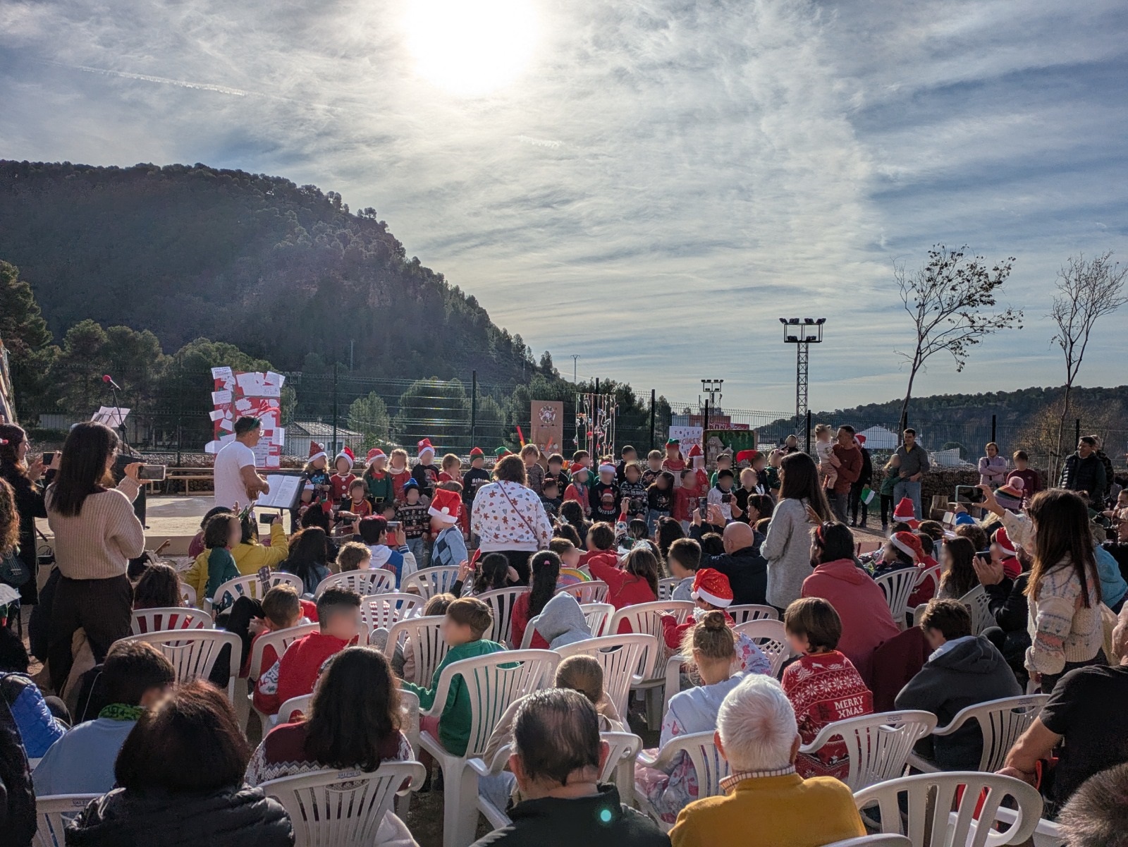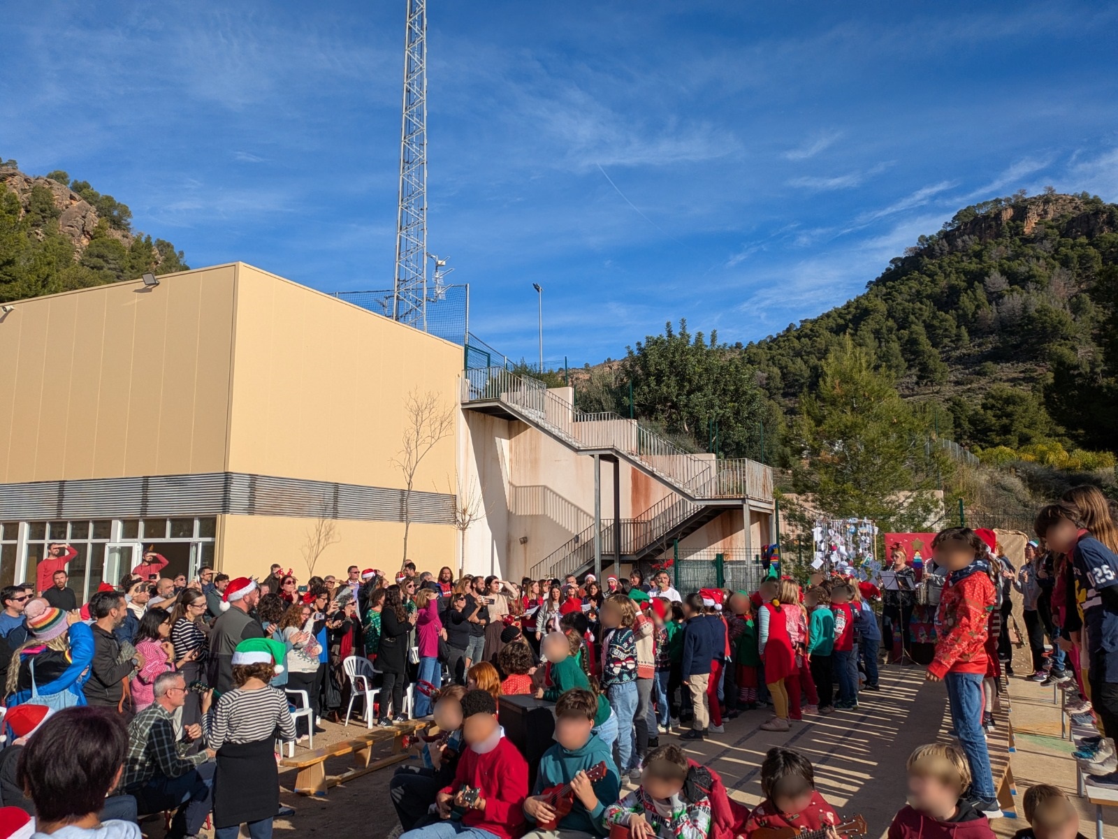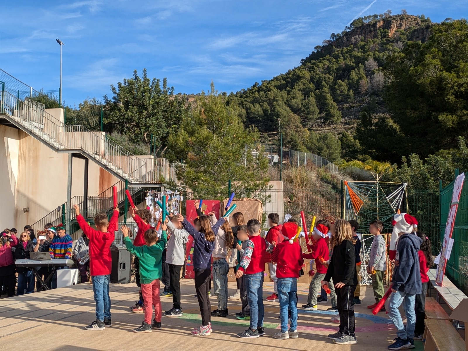 Así, a continuación, en el patio de la escuela, la comunidad educativa en su conjunto (Infantil y Primaria) se ha unido para participar en el Concierto de Navidad. Una preciosa actuación en la que se han presentado de nuevo las tres anteriores canciones y las tres composiciones originales preparadas por el centro para el día de hoy.