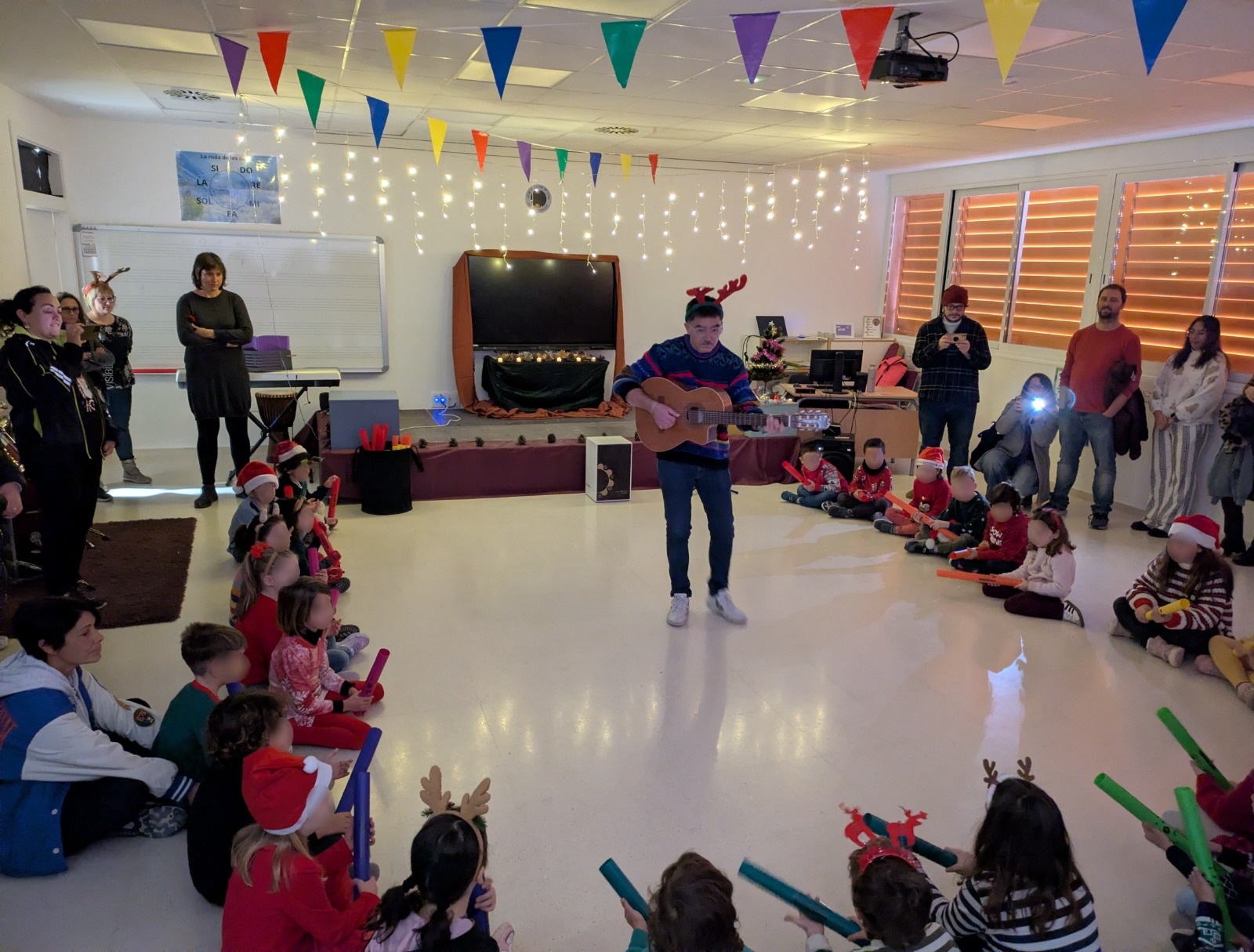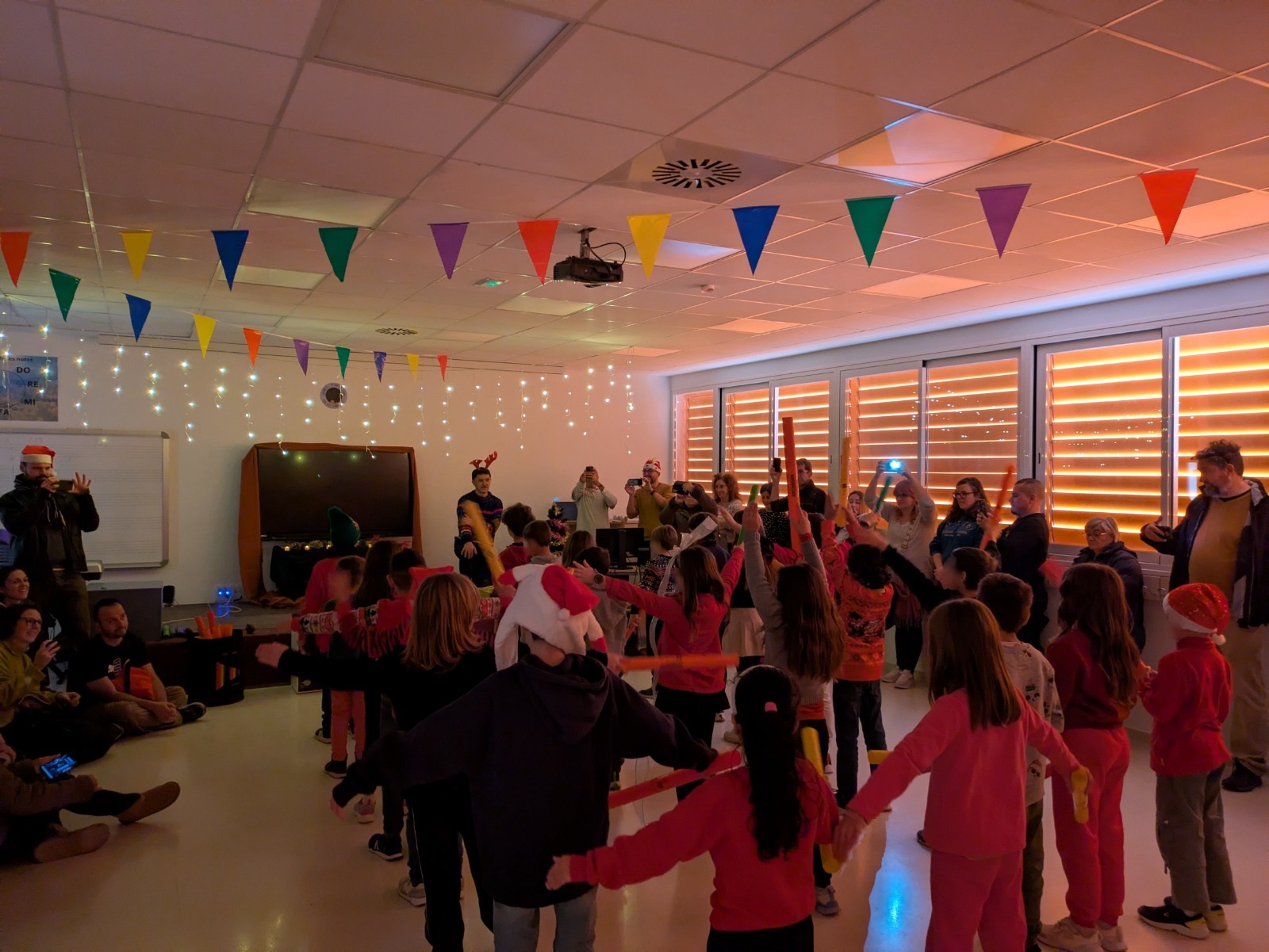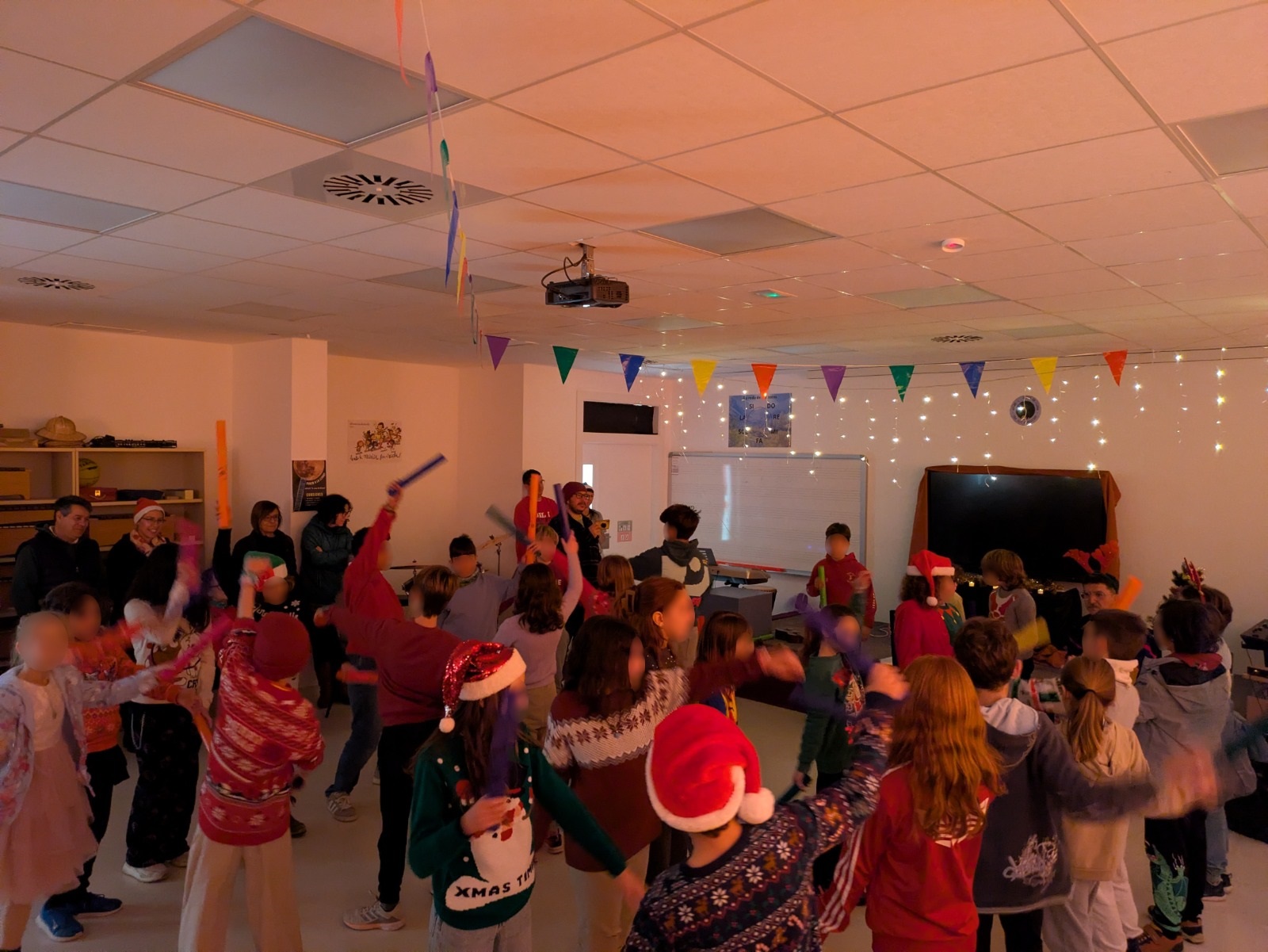 Así, a continuación, en el patio de la escuela, la comunidad educativa en su conjunto (Infantil y Primaria) se ha unido para participar en el Concierto de Navidad. Una preciosa actuación en la que se han presentado de nuevo las tres anteriores canciones y las tres composiciones originales preparadas por el centro para el día de hoy.