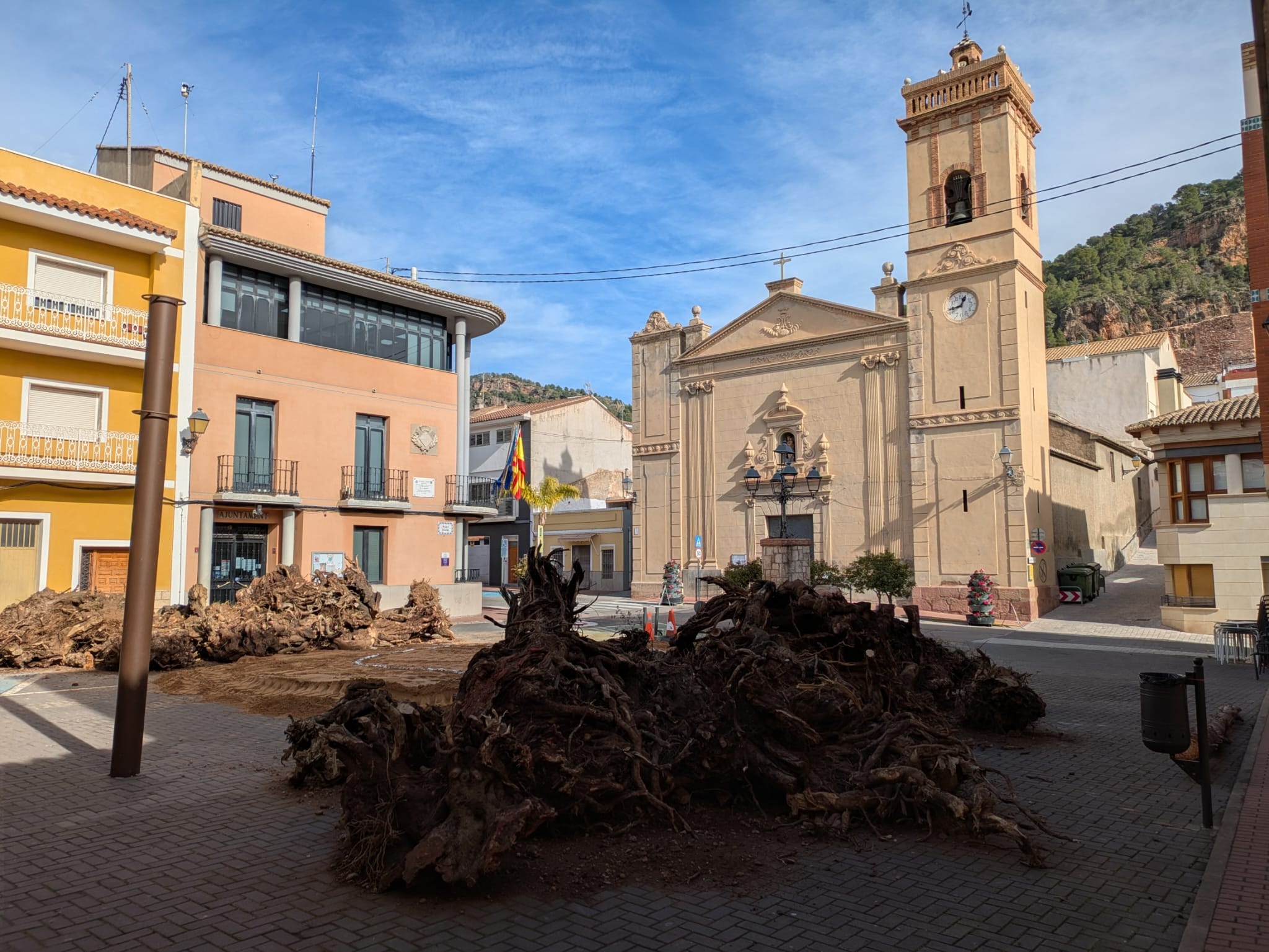 Unos trabajos que anuncian la cercanía del inicio de las fiestas en honor al Santo y que darán forma al elemento central de las celebraciones, que estará compuesto por ramas y troncos de olivo y de algarrobo.