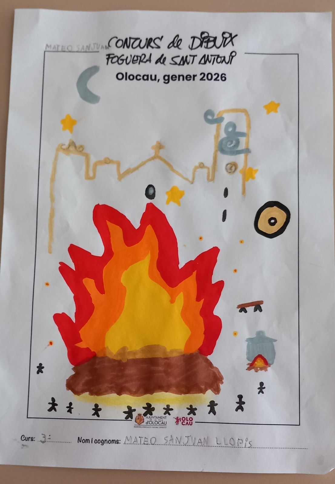 Tras el anuncio del inicio oficial de los festejos el pasado viernes por la noche con el volteo de campanas y el lanzamiento de petardos, el sábado por la mañana tuvo lugar el primero de los actos: el concurso de dibujo infantil de la Hoguera organizado por la Biblioteca Municipal. Una propuesta lúdica que en su quinta edición tuvo como ganadores a Izhan Castillo Durá (categoría de Infantil), Mateo Sanjuan Llopis (categoría de 1º, 2º y 3º de Primaria), y Vera Bernad Tarrazó (categoría de 4º, 5º y 6º de Primaria). El alcalde, Antonio Ropero, y los concejales Eddy Pérez y Desa Vilaplana fueron los encargados de hacerles entrega de los premios.