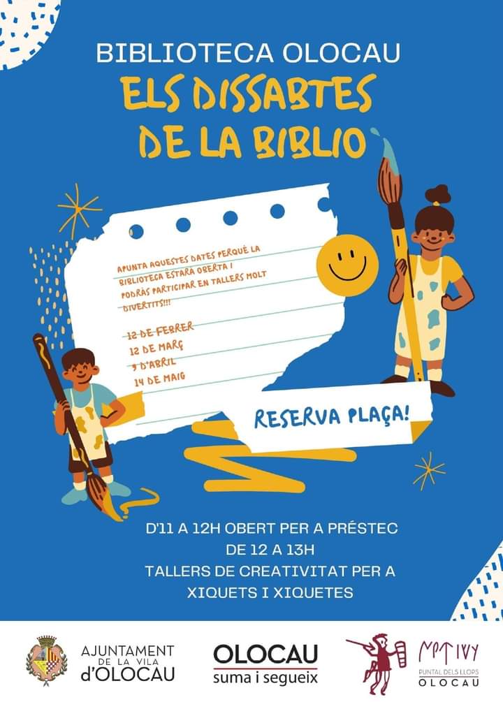 Desde el Ayuntamiento de la Villa de Olocau y su Concejalía de Educación, Cultura y Juventud, informamos de que el próximo sábado, 9 de abril, la Biblioteca Municipal abrirá sus puertas entre las 11 y las 13 horas dentro de la iniciativa ‘Els dissabtes de la Biblio’.